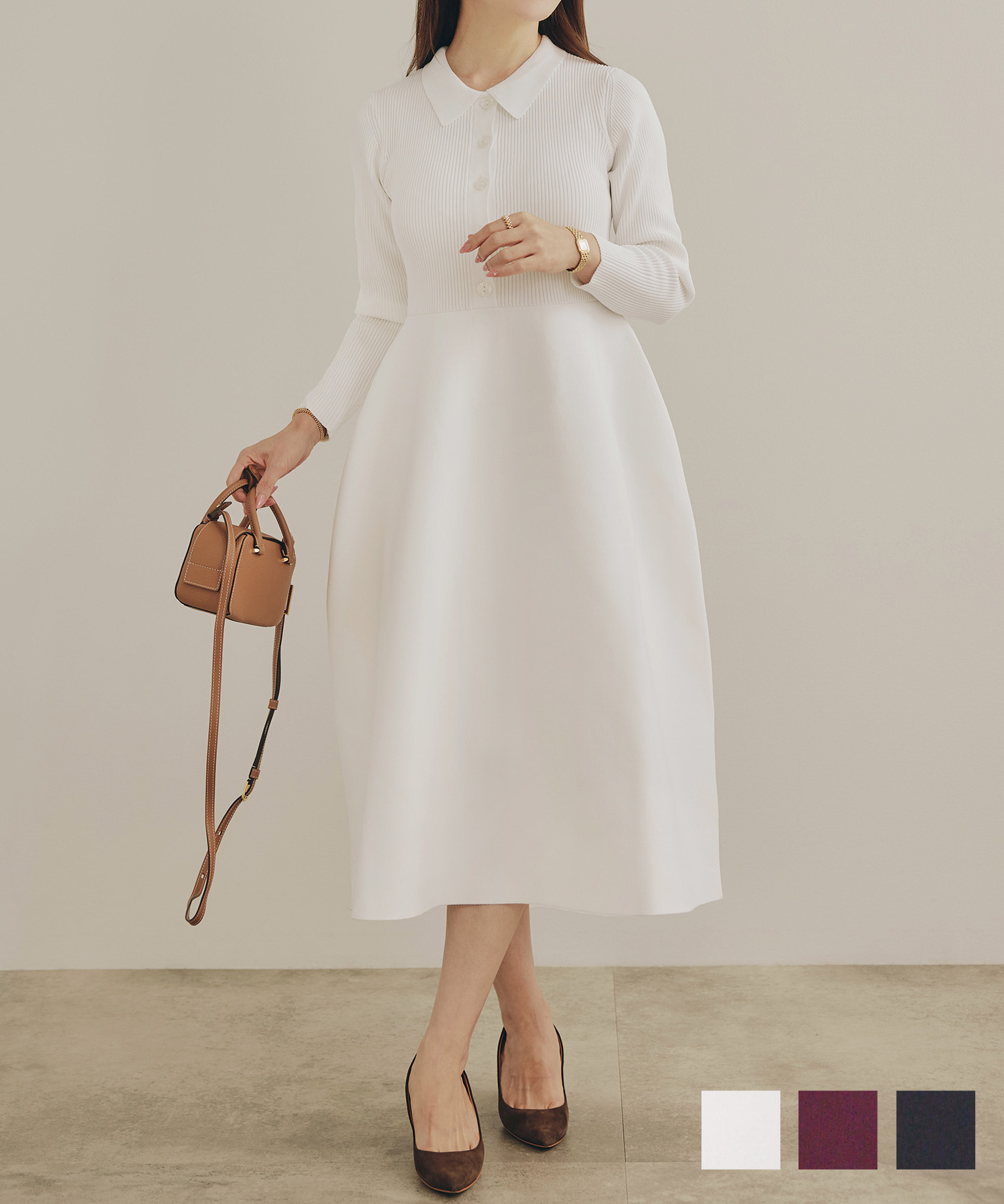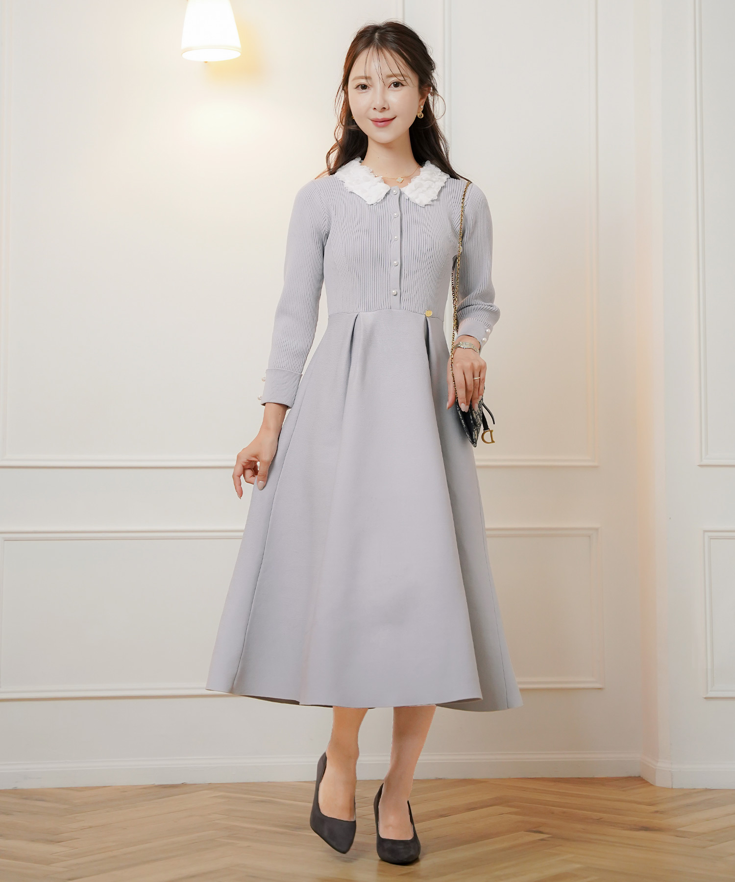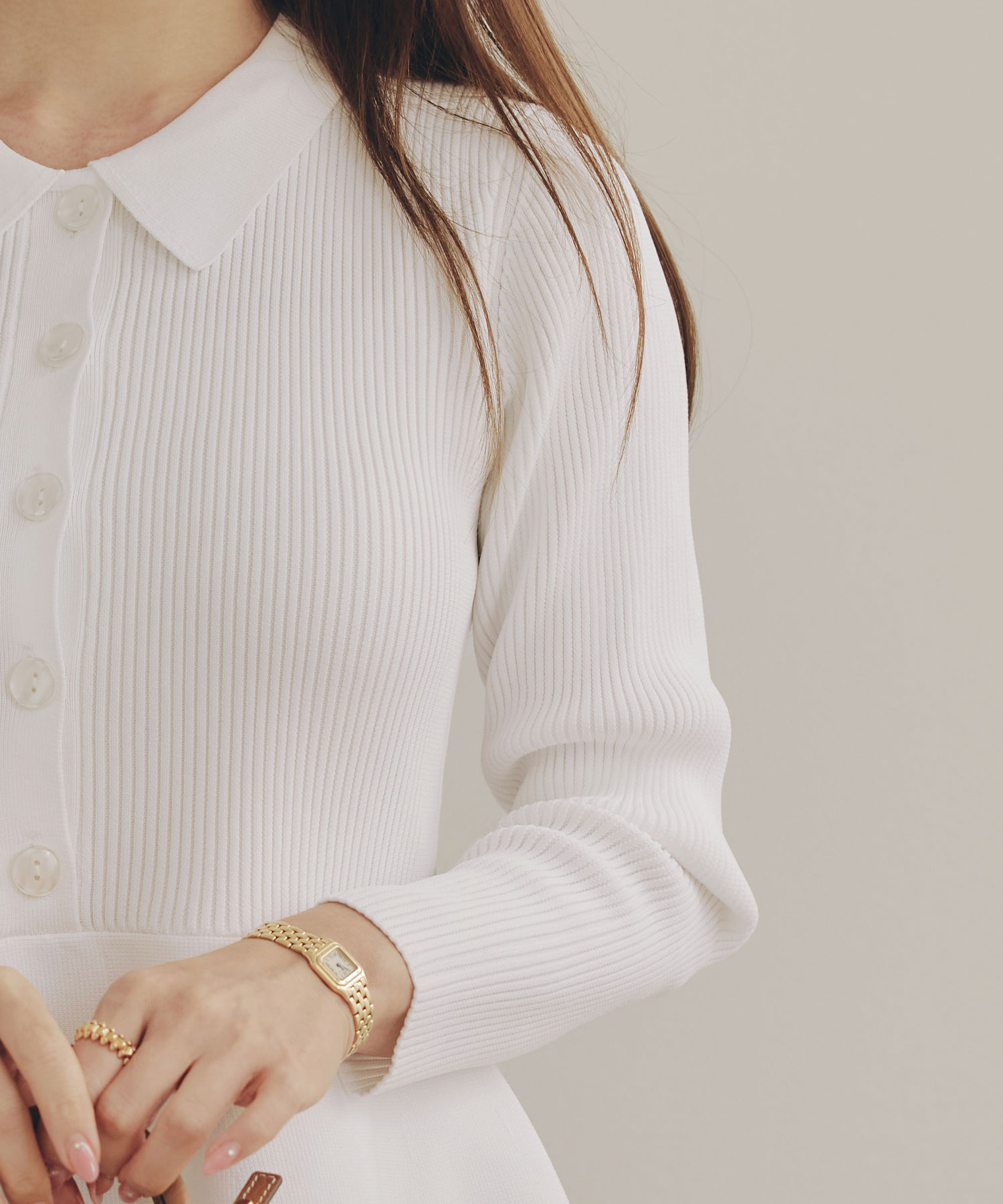 ミラノリブ 襟付き ニット ワンピース(Liala×PG)