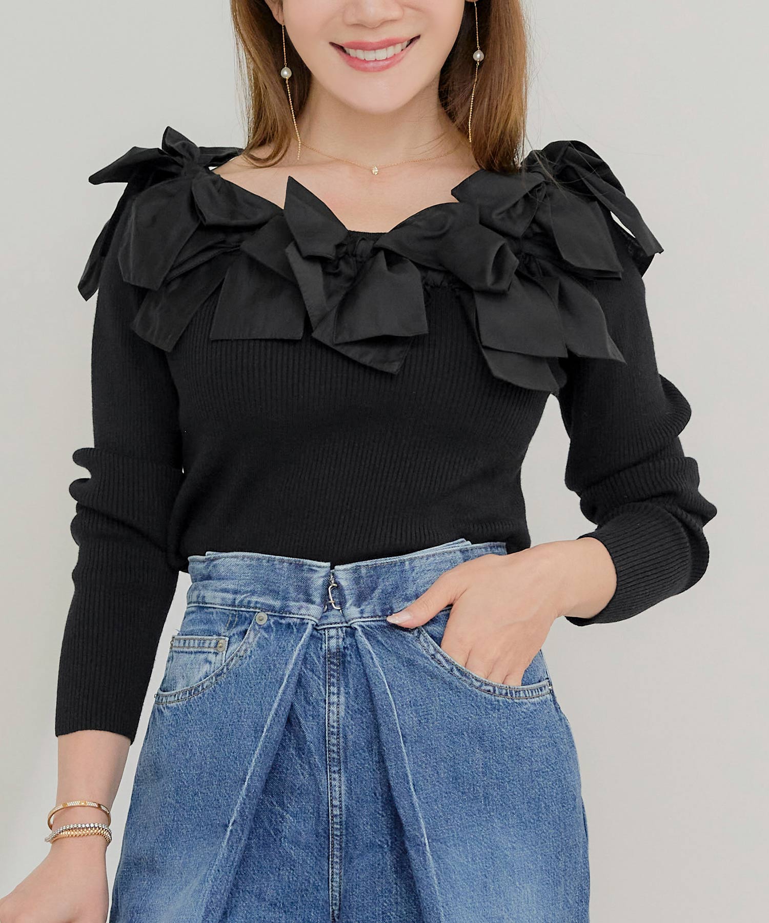 ワイドネック リボン付き リブニット (Liala×PG)¥11,000(税込)