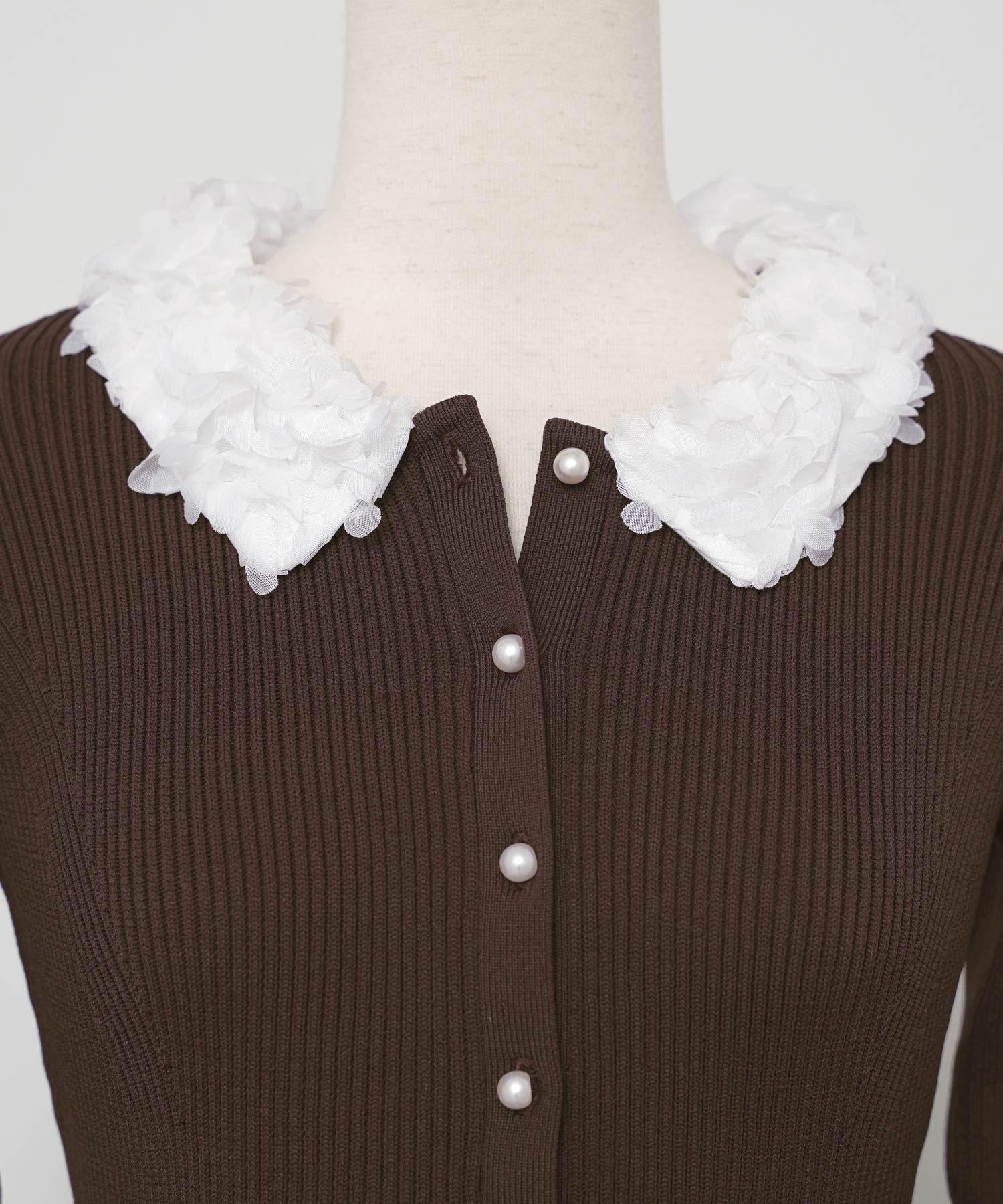 レース衿 取り外し可 ニット カーディガン 長袖(Liala×PG)