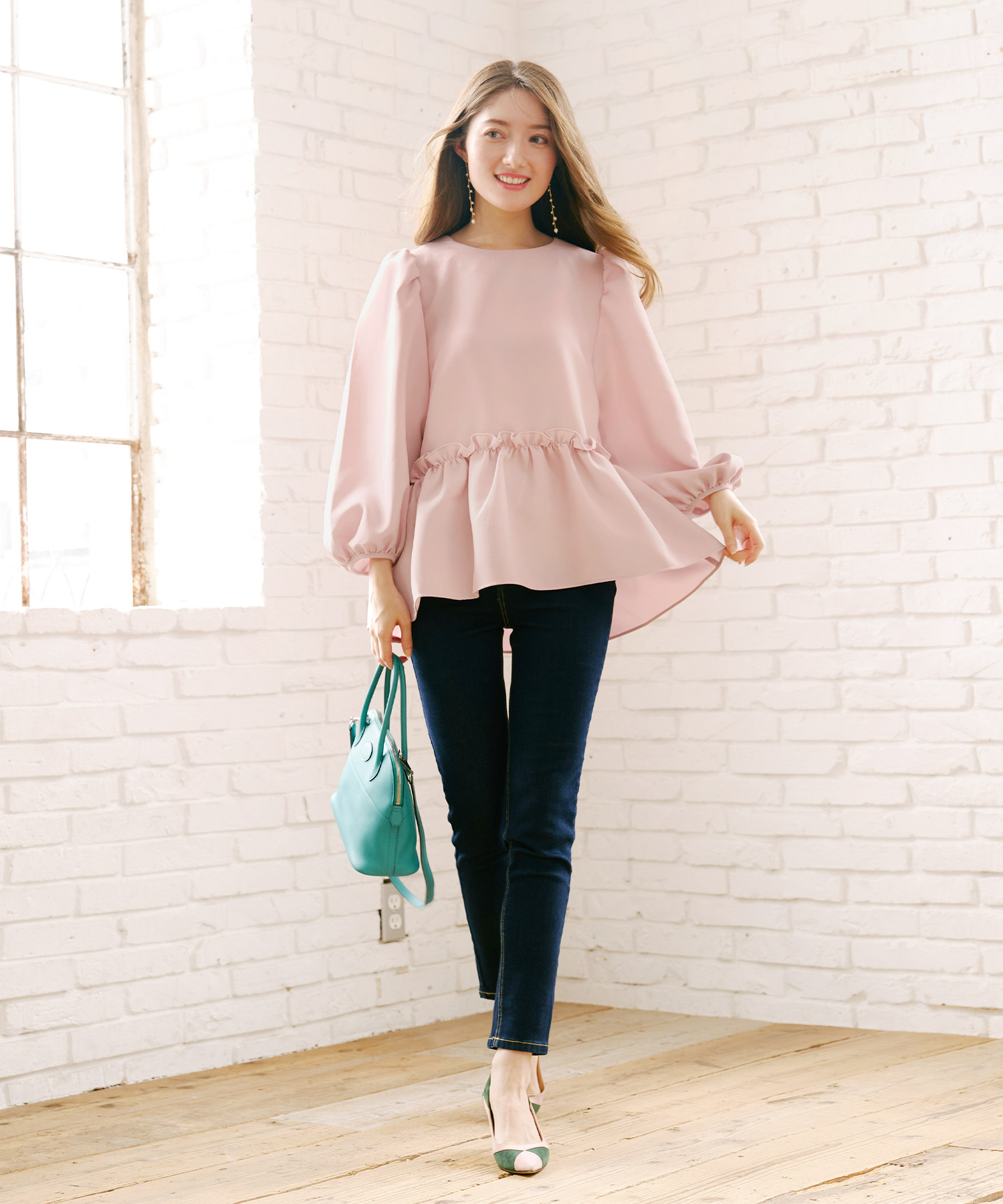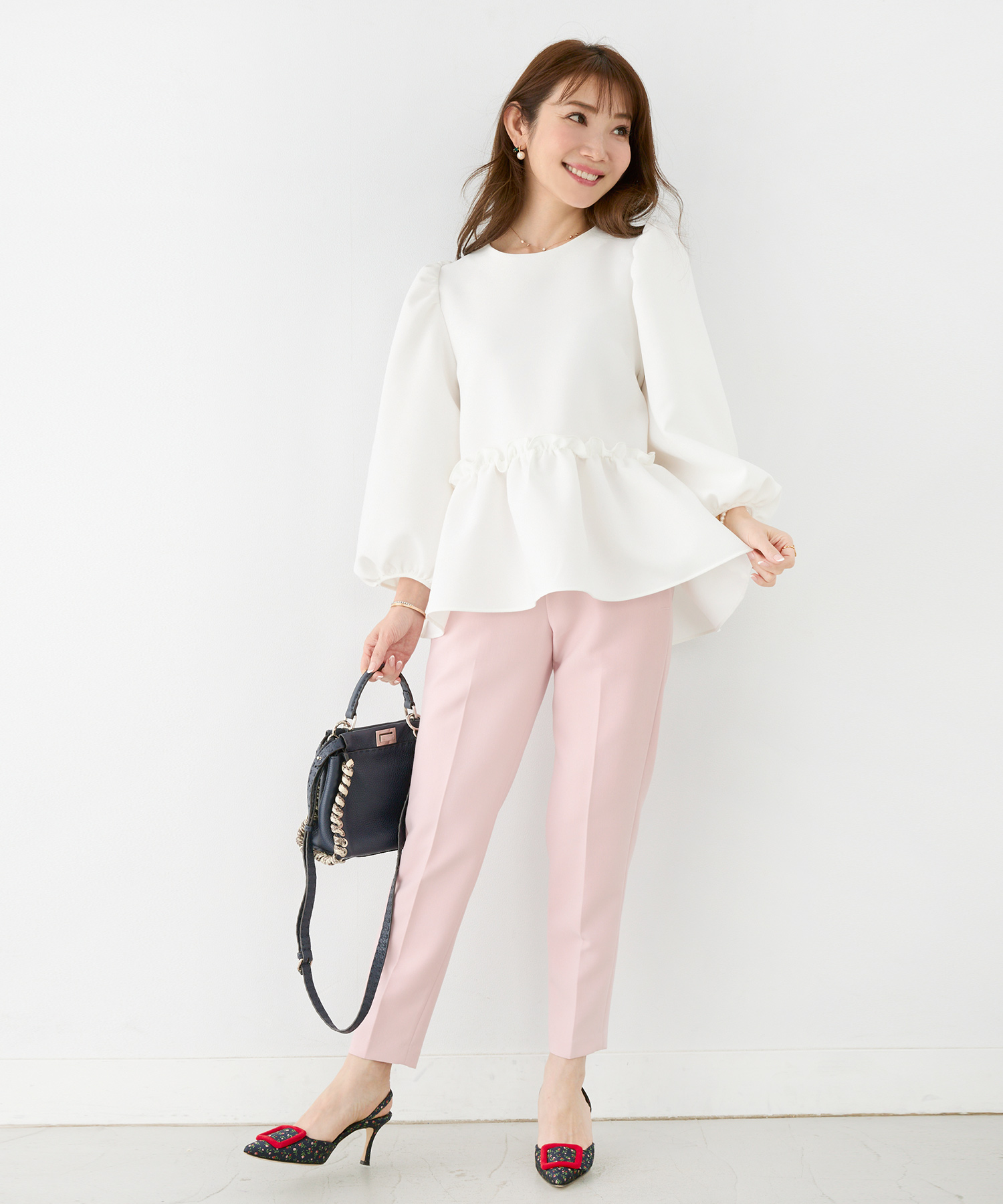 パフスリーブ 8分袖 ペプラム ブラウス(Liala×PG)¥6,490(税込)