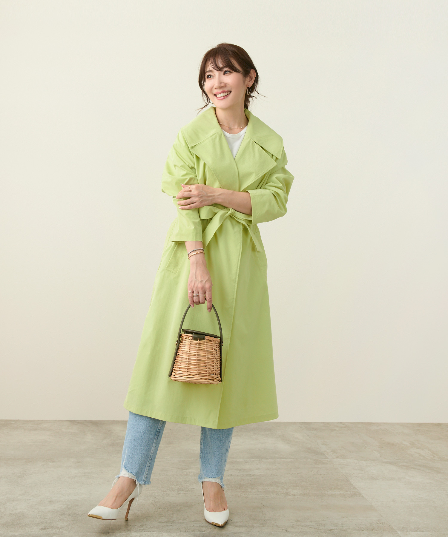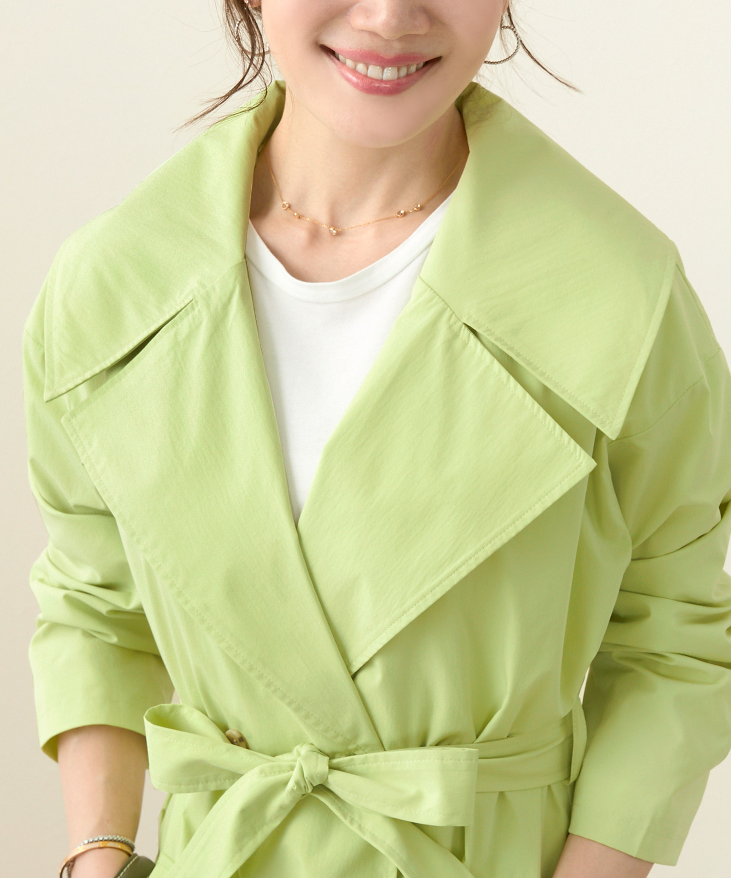 イエベ春にぴったりなライムイエローのスプリングコートで春を彩る