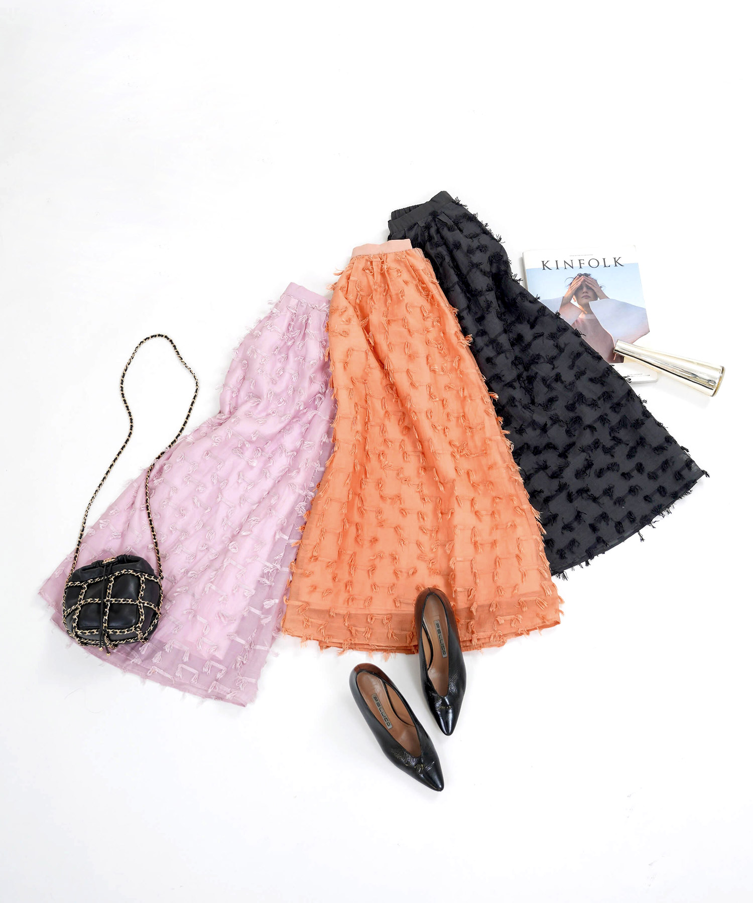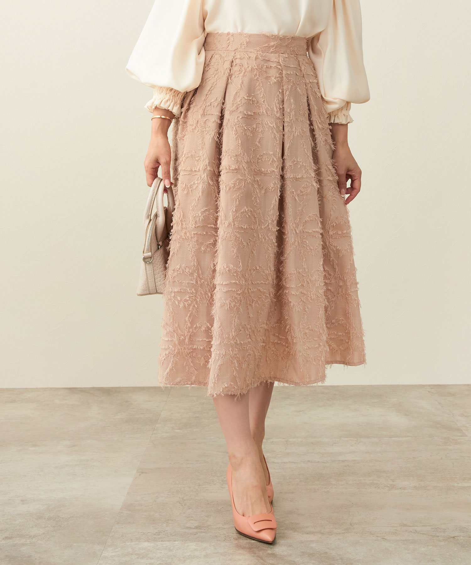 フリンジジャガード オーガンジー スカート(Liala×PG)¥11,990(税込)