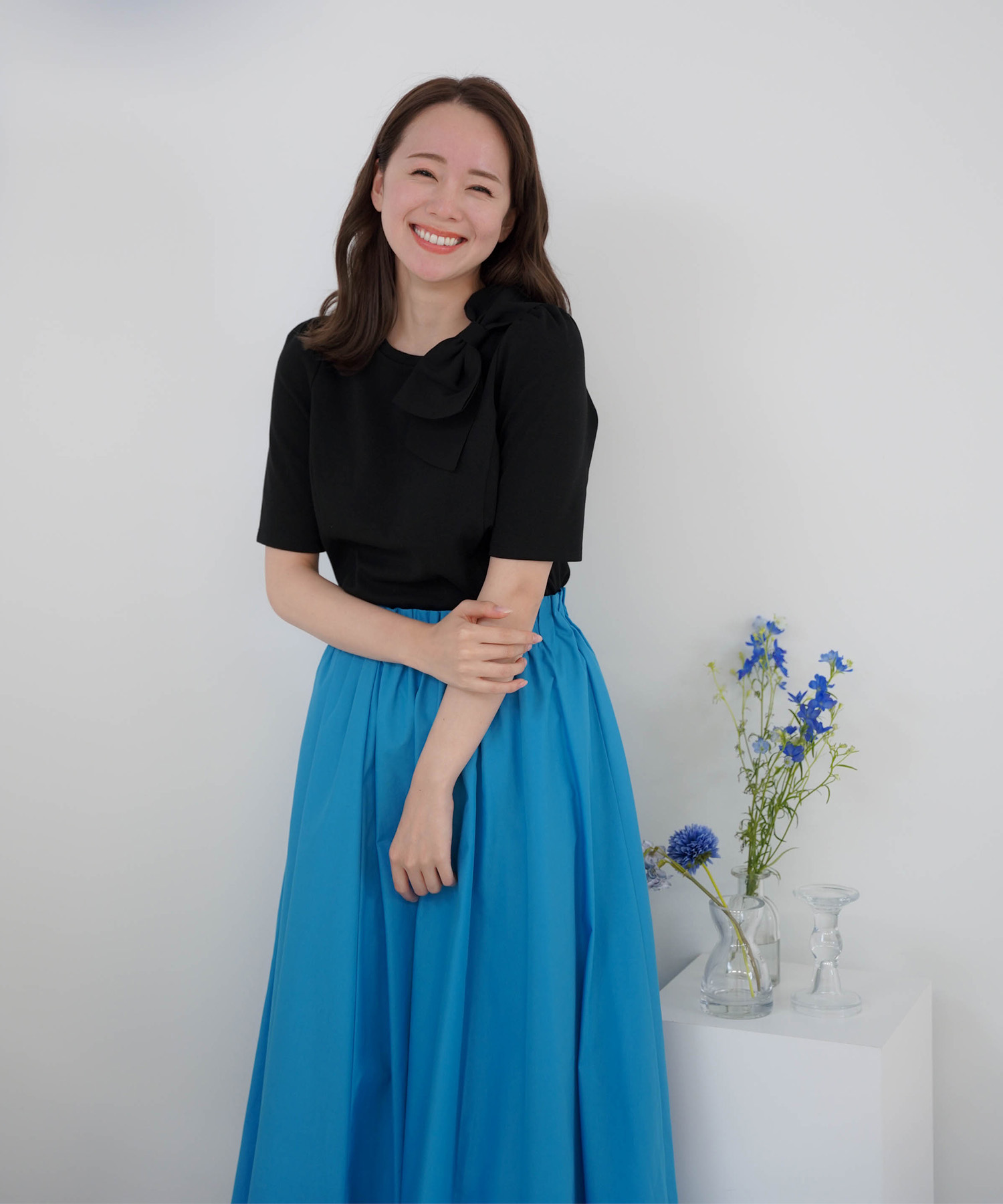 イエベ春にぴったり!夏を彩るターコイズブルーのスカートで爽やかコーデ