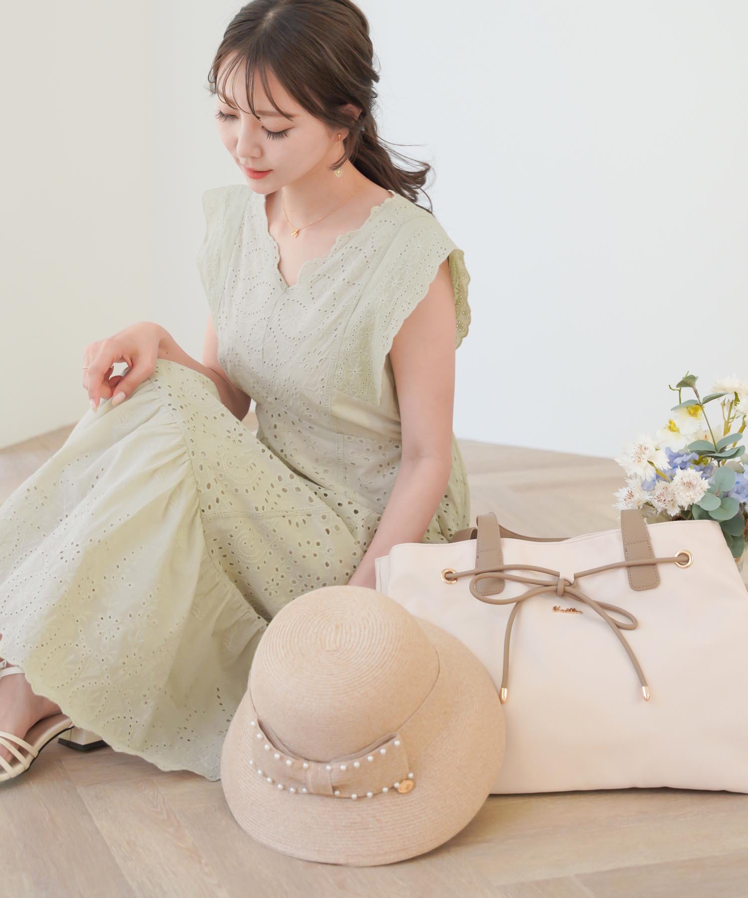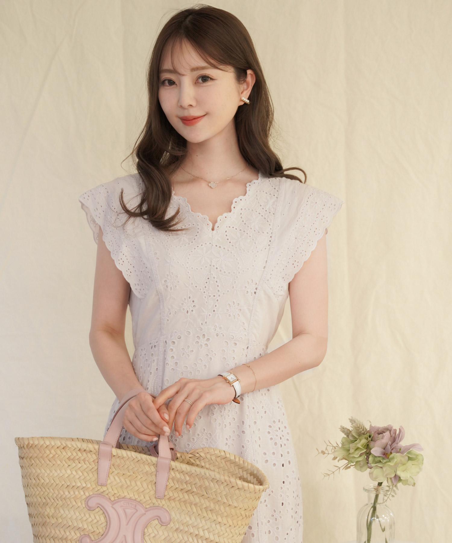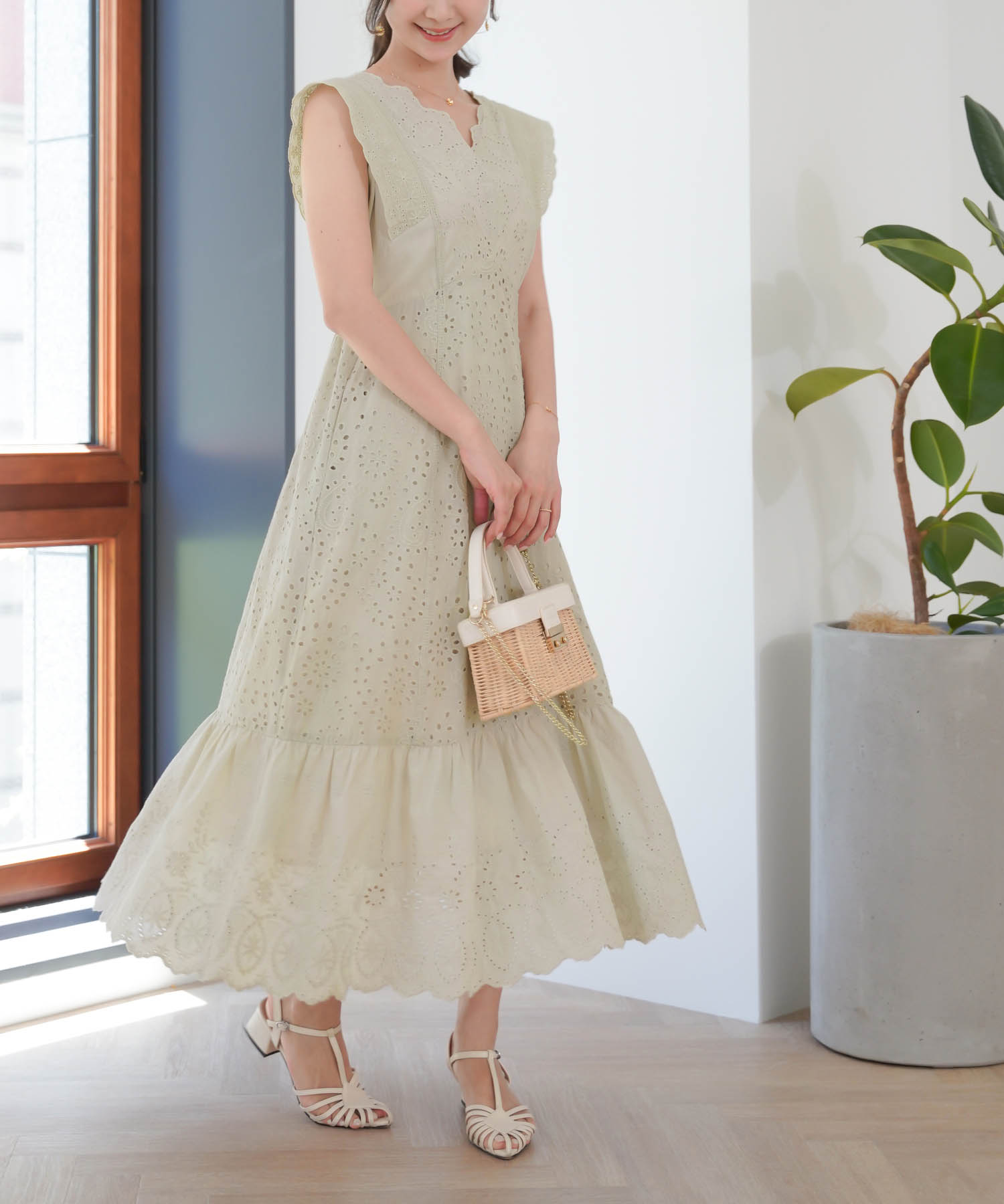 イエベ春にぴったりのレモンクリームカラー!コットンレースワンピースで夏を爽やかに