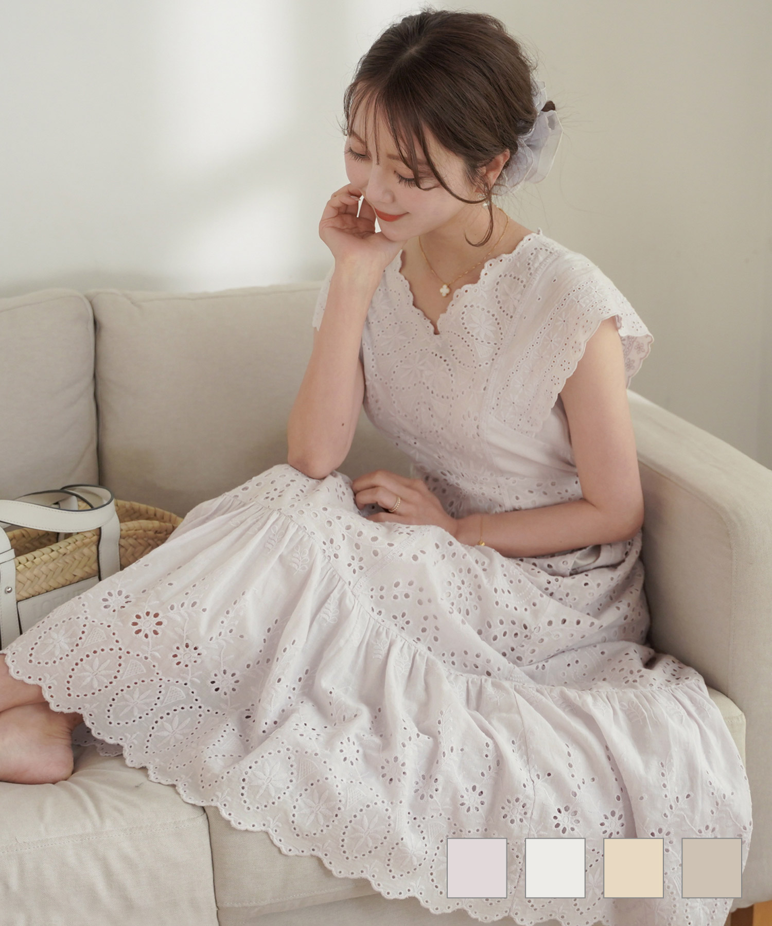 コットン レース スカラップ ワンピース(le reve vaniller)¥14,190(税込)
