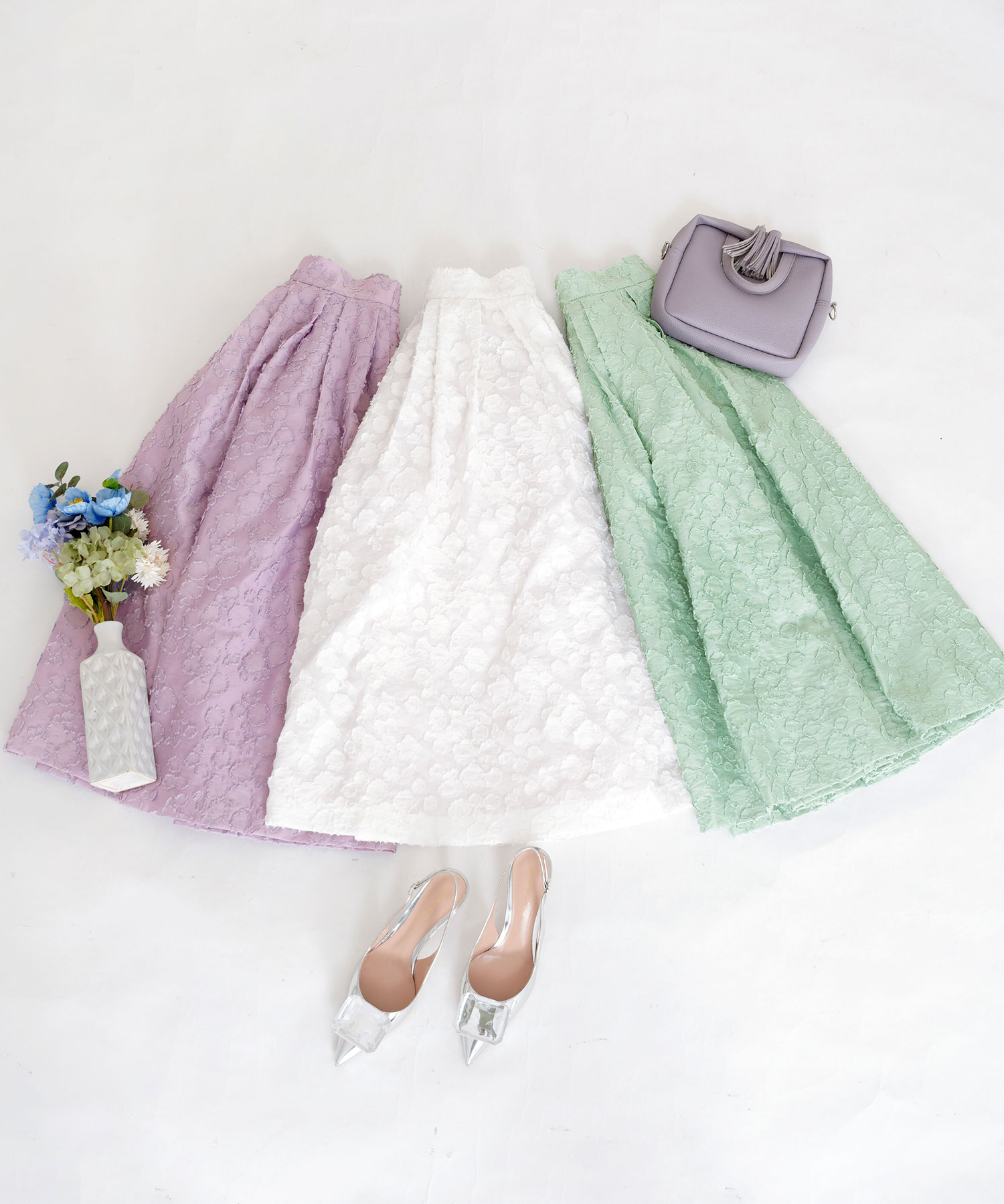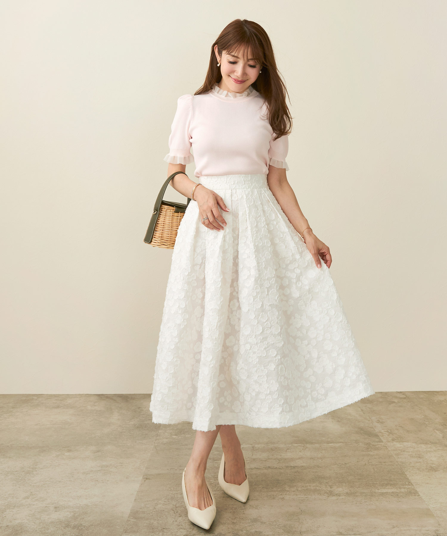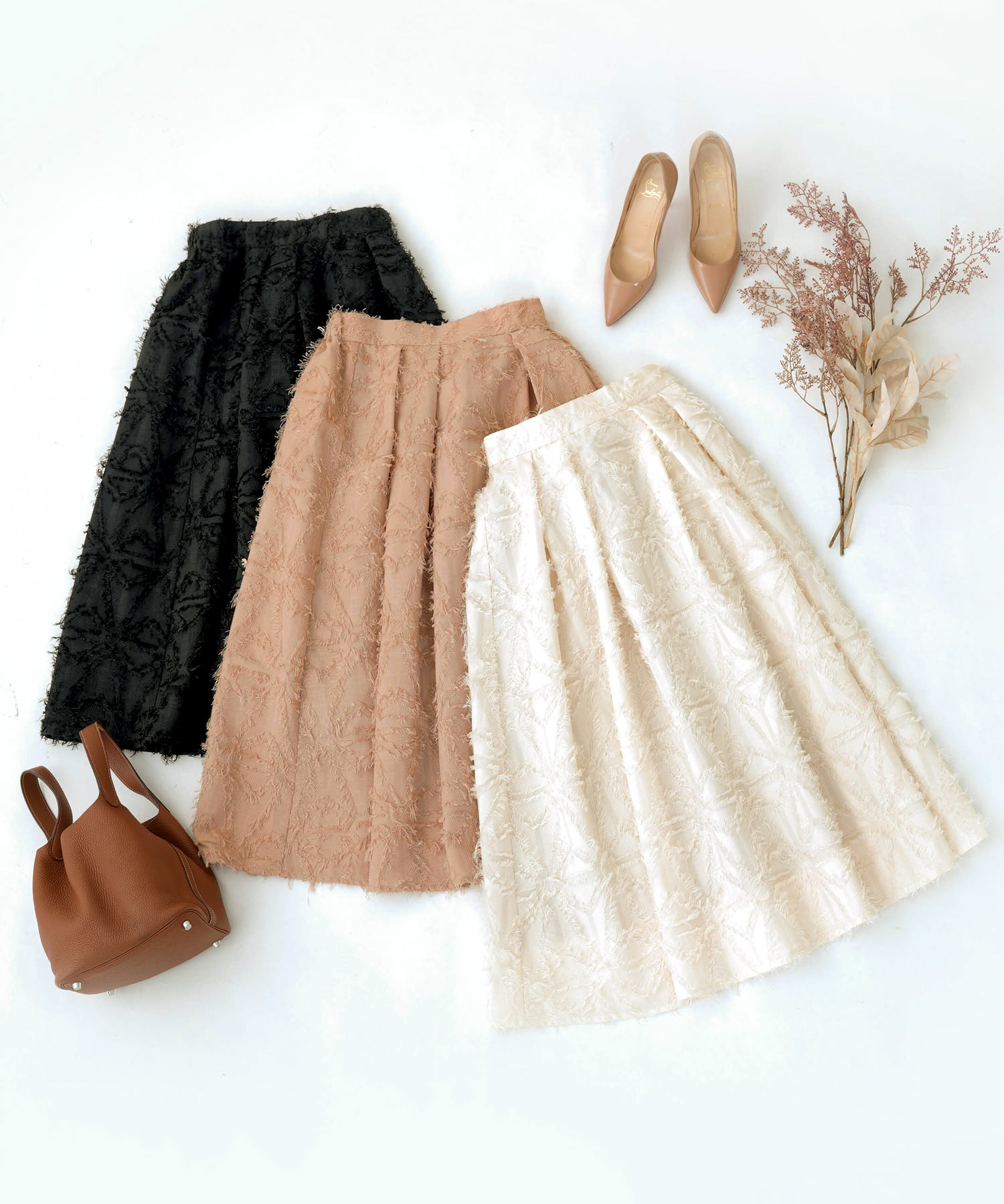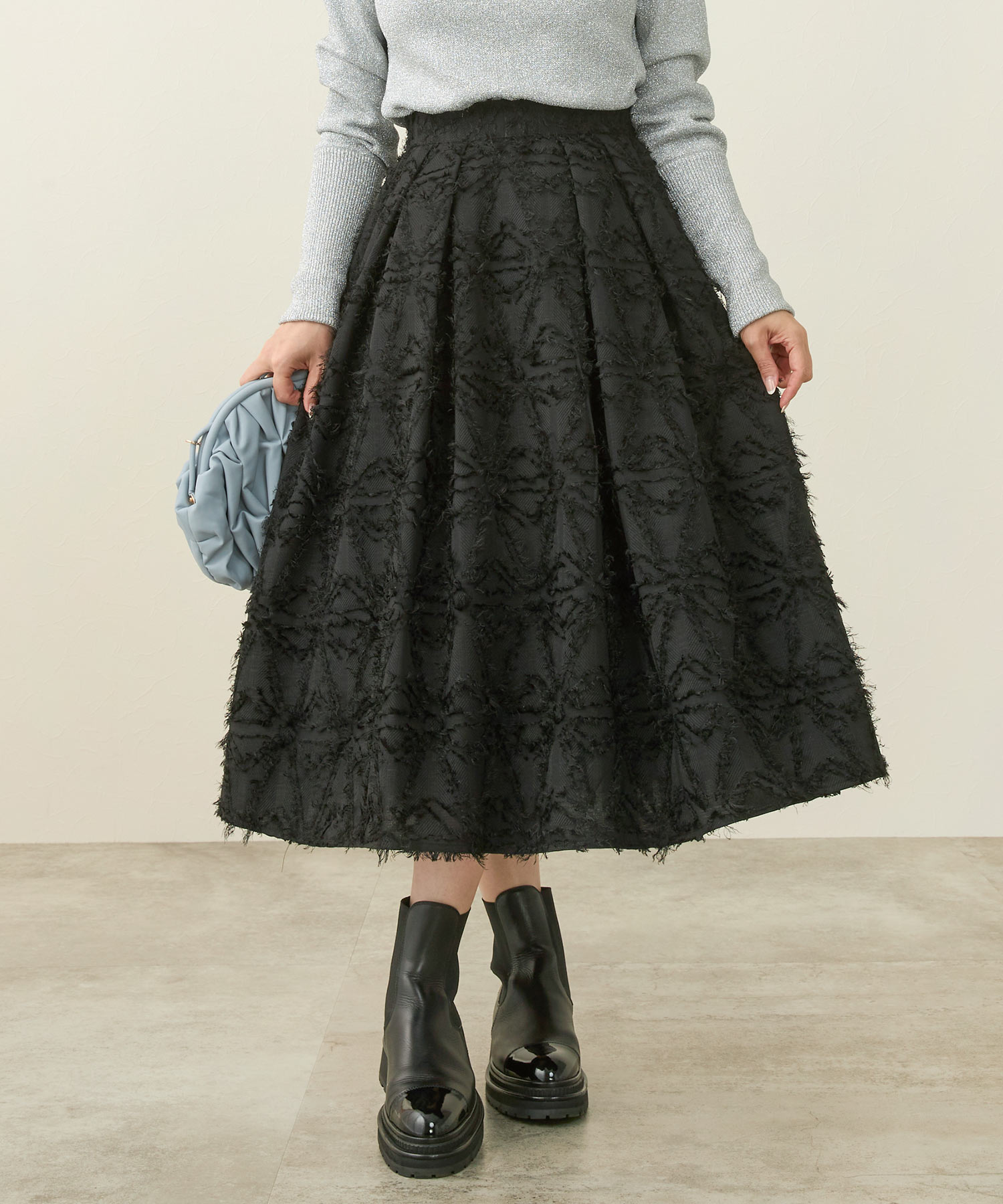 ジャガード ふんわり フレア スカート(Liala×PG)¥12,100(税込)