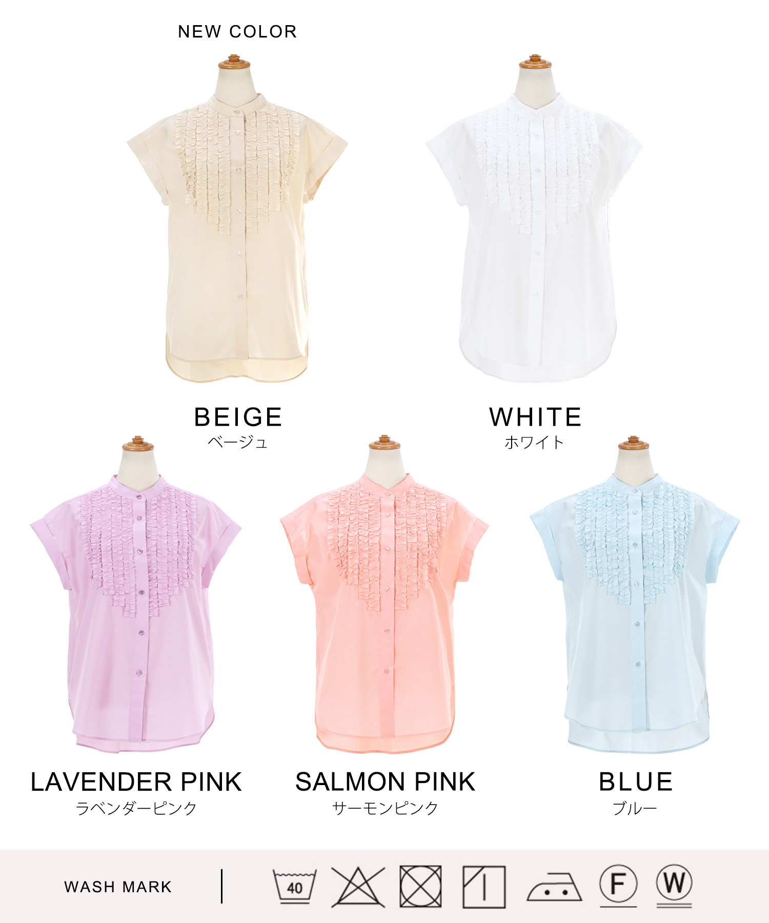 夏の通勤ブラウスを探すなら「ライトベージュ」のフロントフリルブラウスがおすすめです。胸元のフリルが顔周りを華やかに見せてくれ、シンプルスタイルにアクセントを加えてくれます。テーパードパンツやスカートにもぴったり合うデザインで、夏の通勤スタイルに最適なアイテム。綿ポリエステル素材でさらっとした肌触りが心地よく夏でも快適に過ごせます。また、マシーンウォッシュ対応なので、忙しい女性でも気軽に着用できるのが嬉しいポイントです。