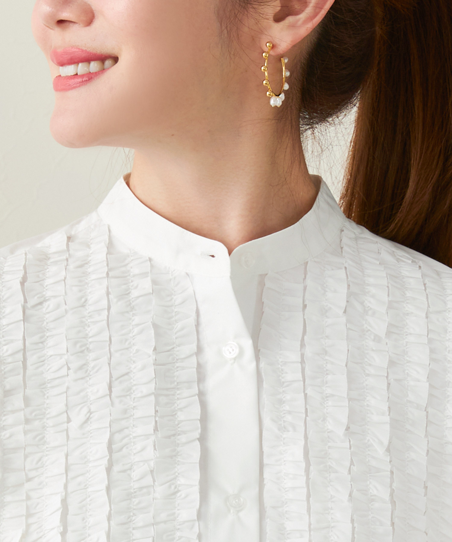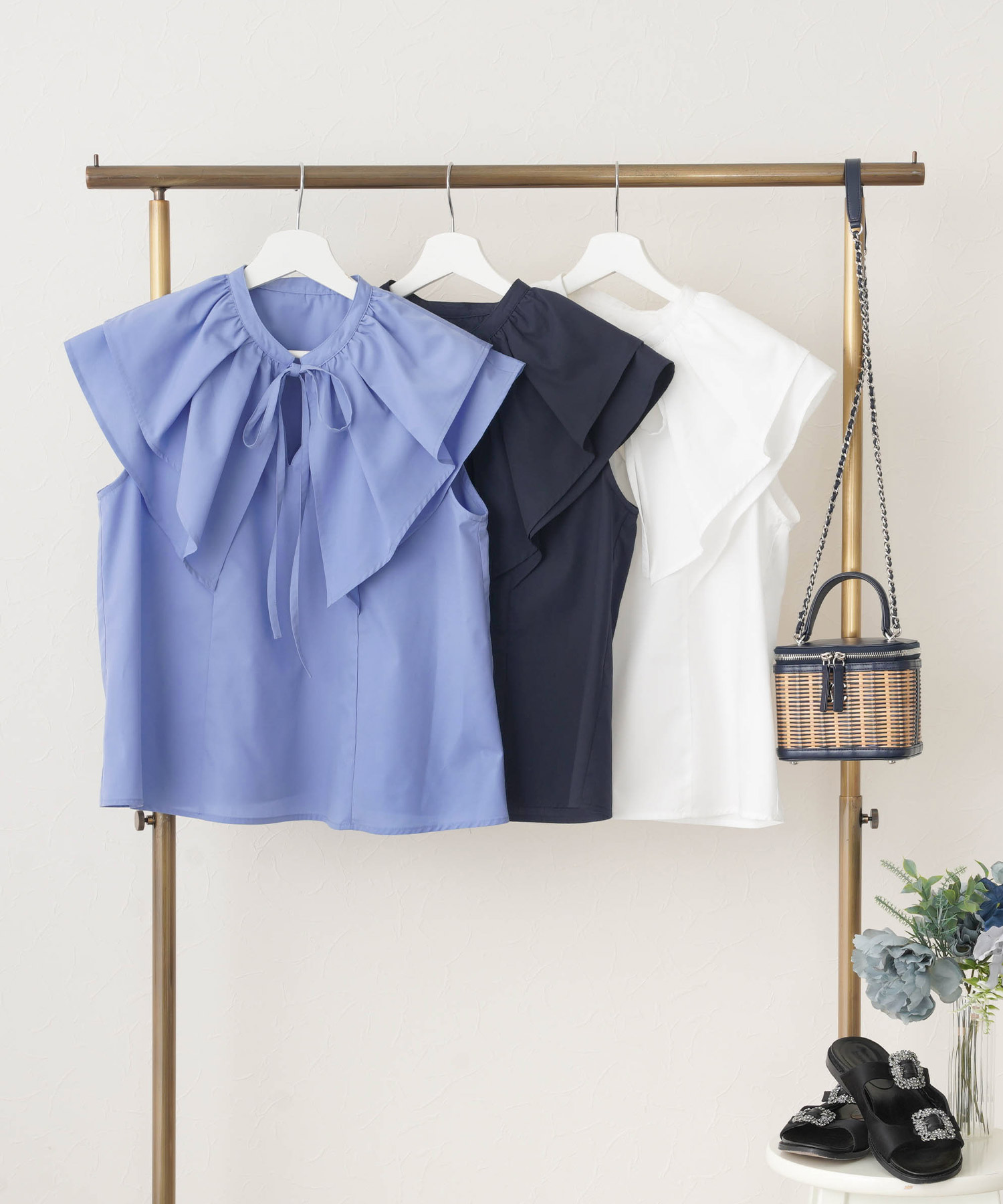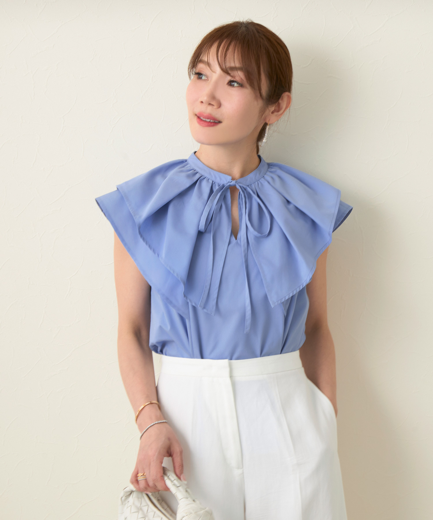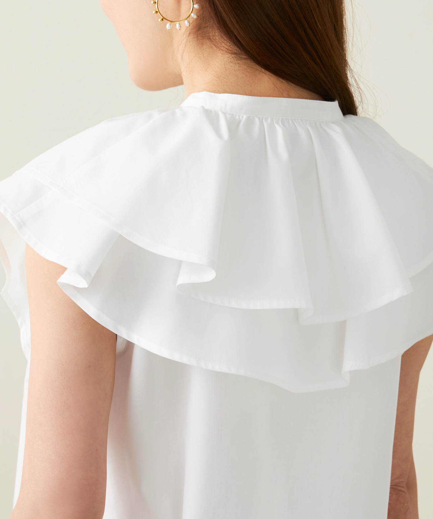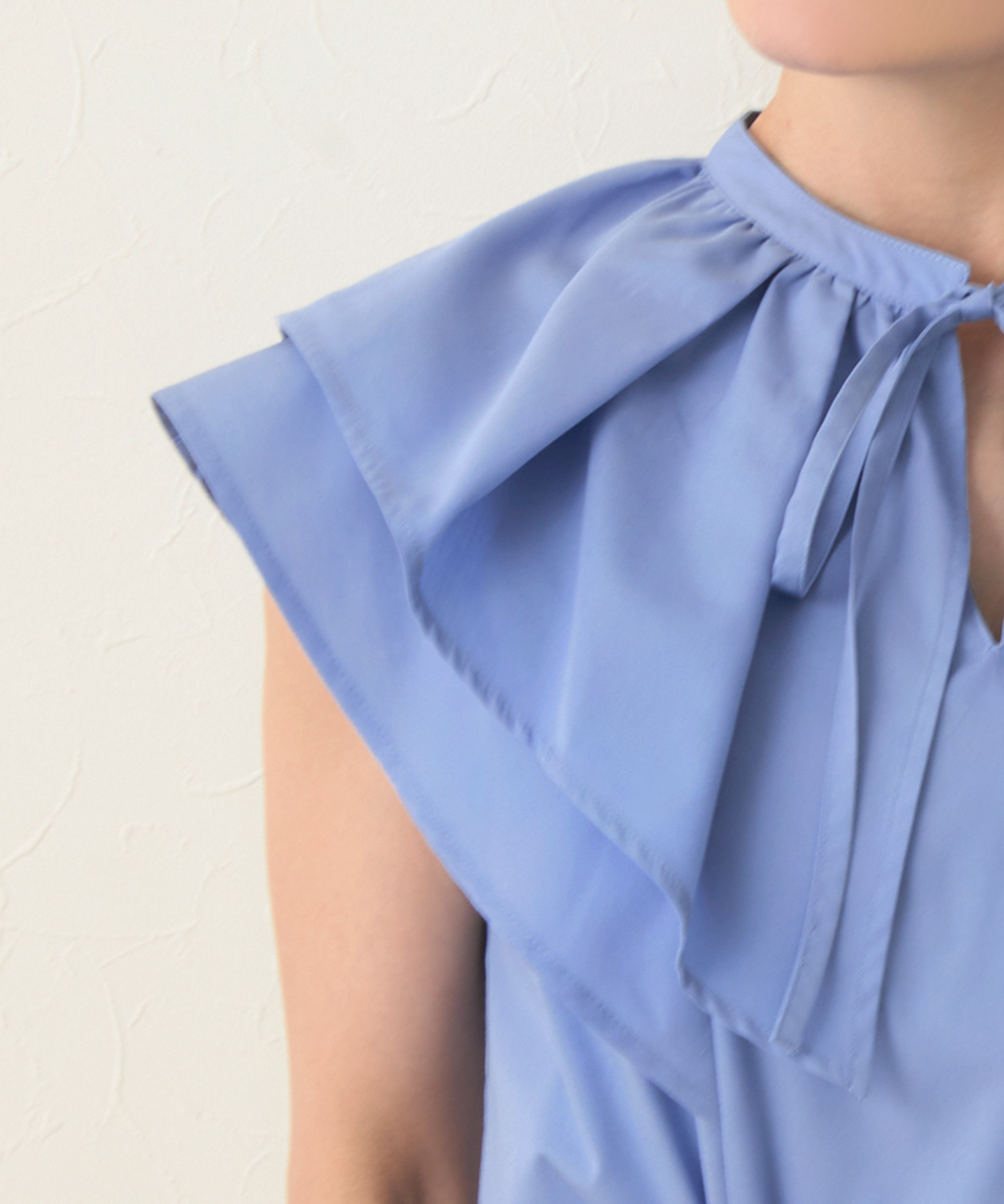 バンドカラー フリル フレンチスリーブ ブラウス(Liala×PG)¥7,590(税込)