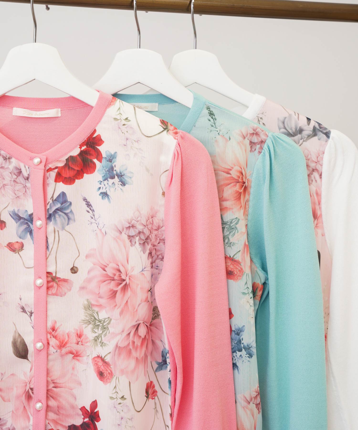 サマーニット プリントシフォンコンビ 7分袖 カーディガン(Prima Scherrer)¥9,900(税込)