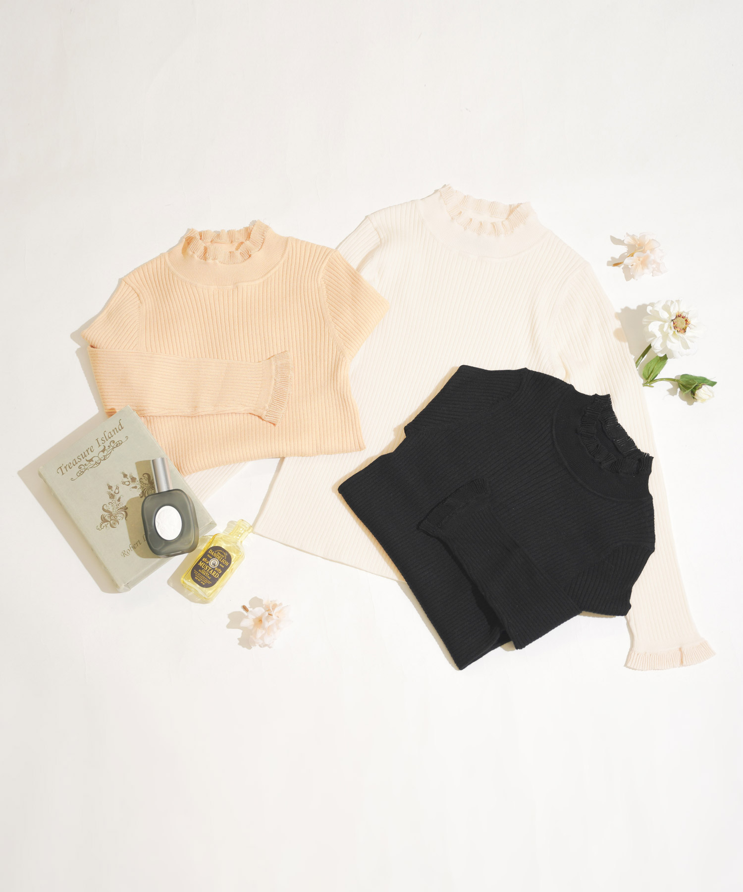 フリルネック & スリーブ リブ ニット(Prima Scherrer)¥7,480(税込)