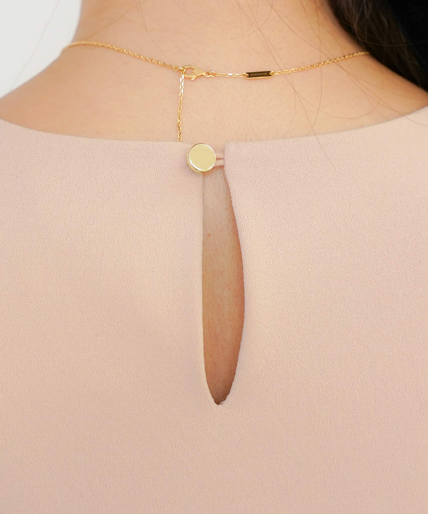 コーラルピンクが、イエベ春さんの肌を明るくきれいに見せてくれる一枚。カシュクール部分はスナップボタンで開閉でき、着脱もスムーズです。授乳中のママにも扱いやすく、お出かけの日にも頼れます。