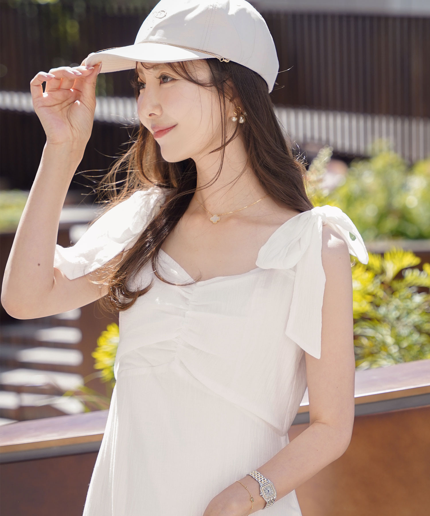 肩リボン コットンレース コンビ キャミワンピース(le reve vaniller)¥12,980(税込)
