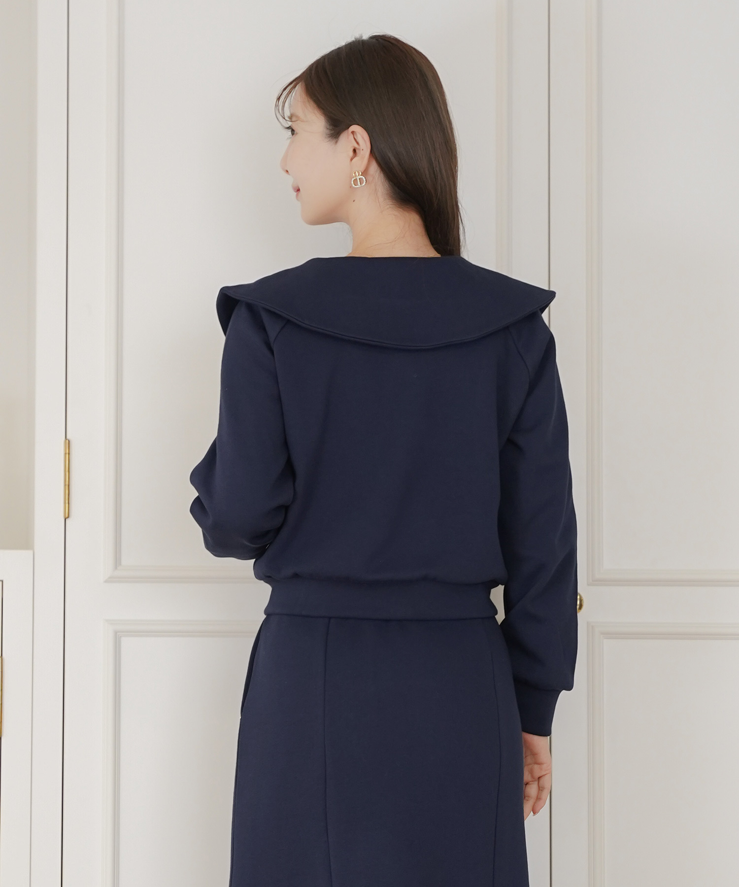 襟付き ボンディング フレア トップス 長袖(HUIT bouquet)¥9,900(税込)