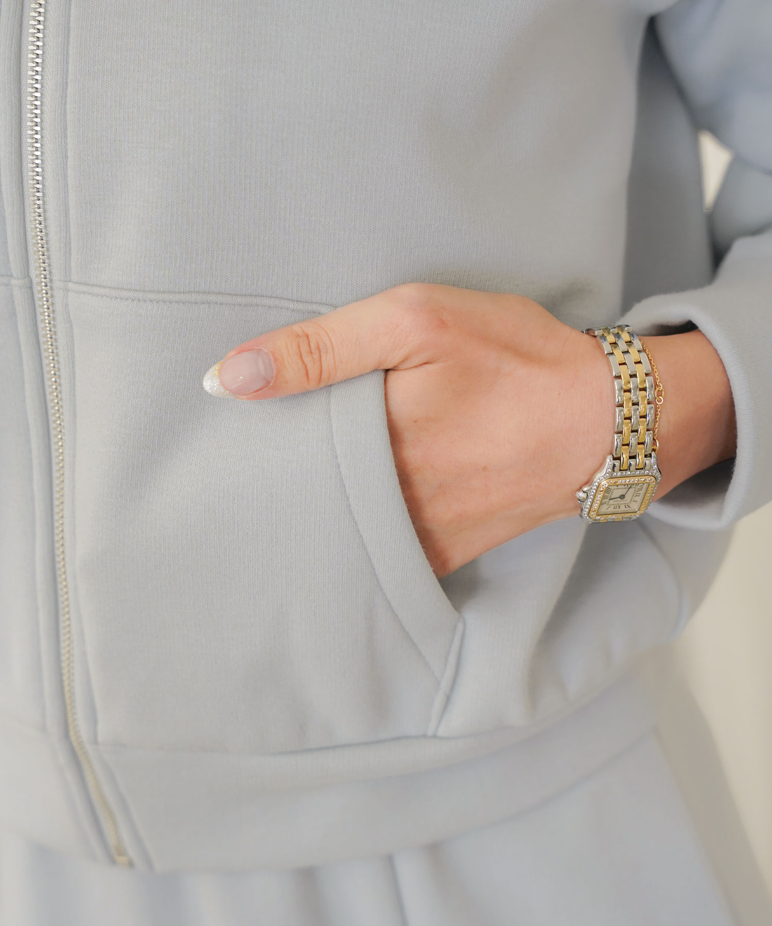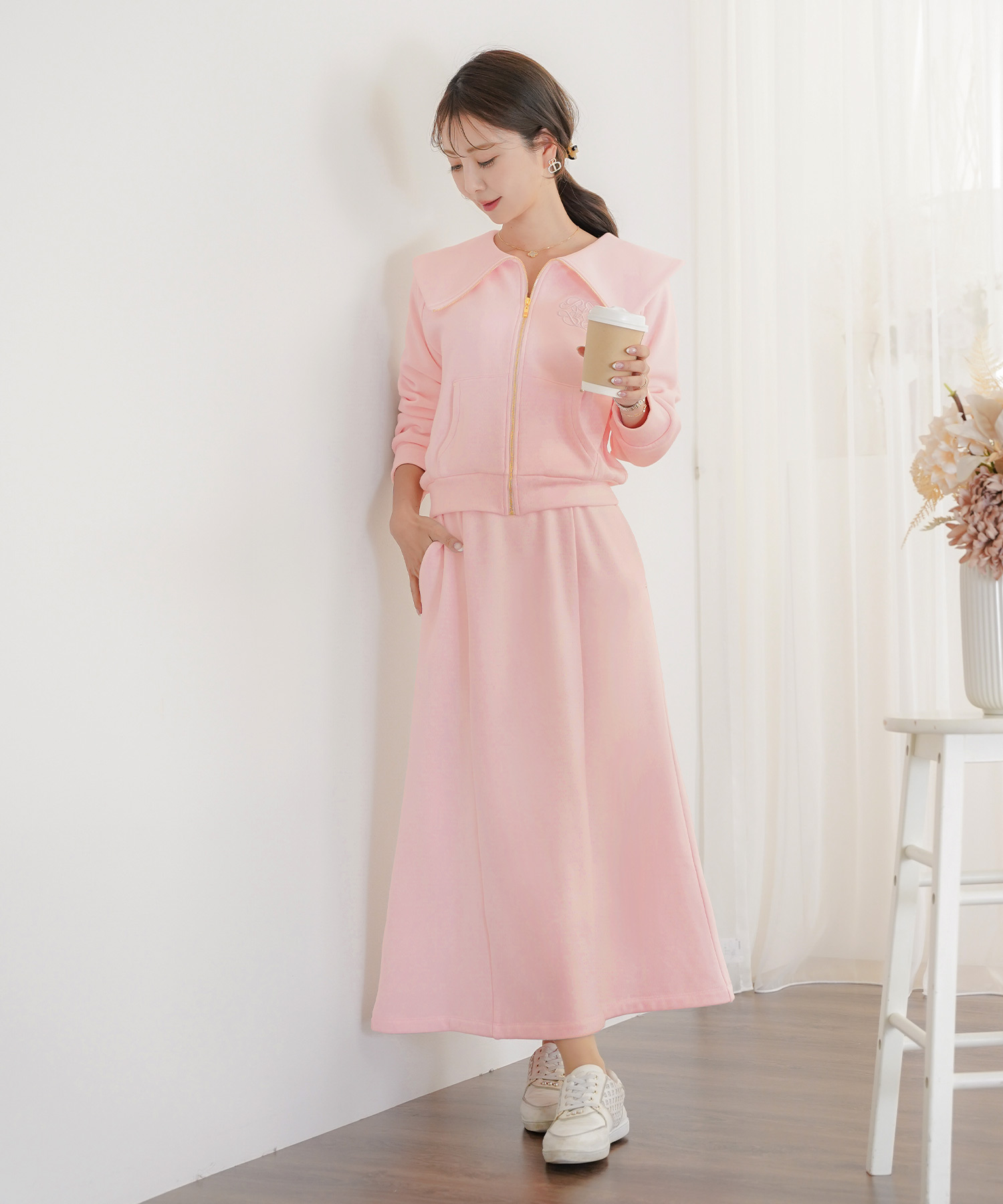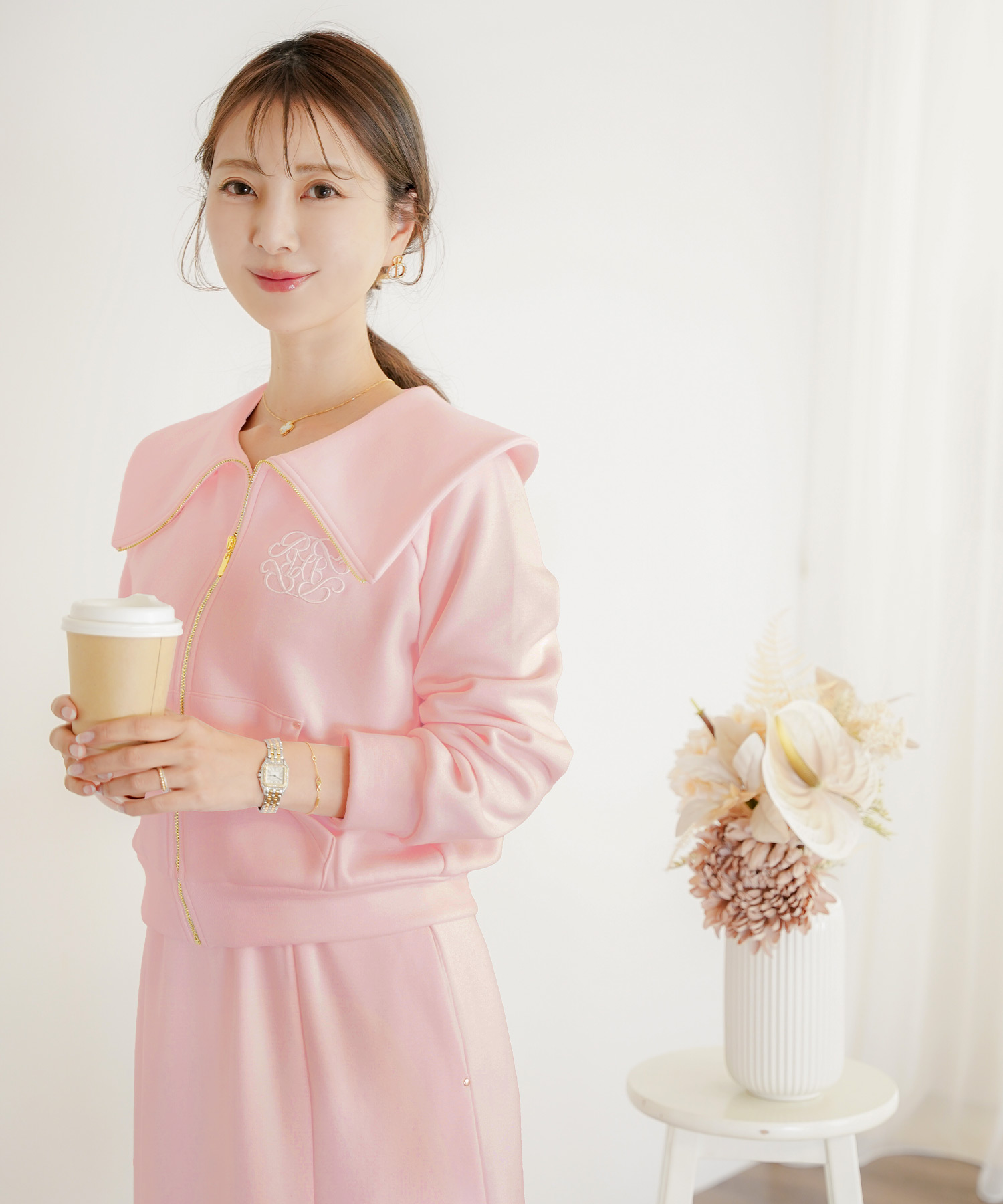 砂糖菓子のようにやさしいピンクが映えるジップアップスウェット。カジュアルでもラフになりすぎず、スウェットが苦手な方にも取り入れやすい一枚です。暖かい裏起毛素材で、冬のワンマイルウェアにも活躍。セットアップのスカートやパンツと合わせれば、きちんと感のある洗練カジュアルに仕上がります。