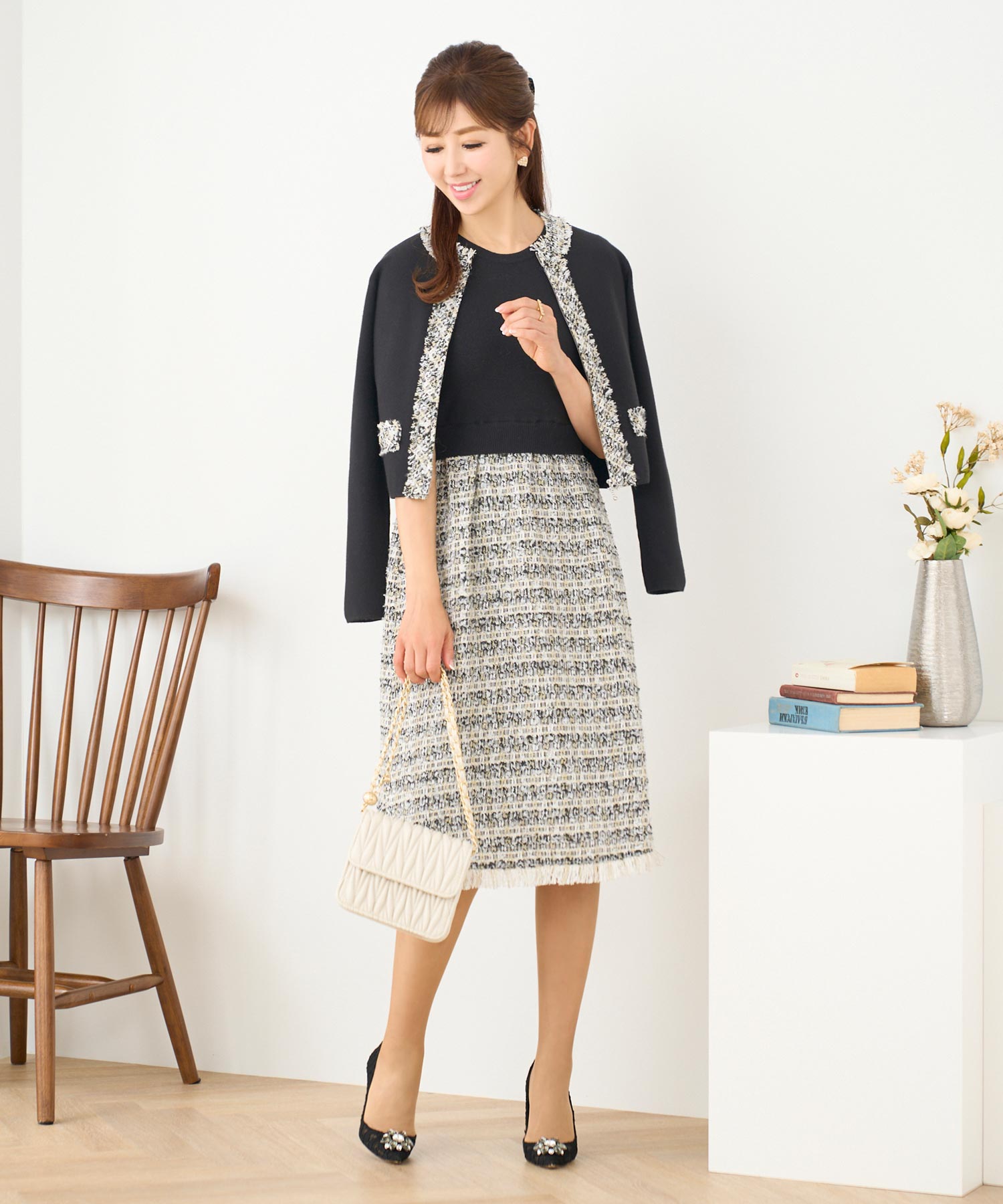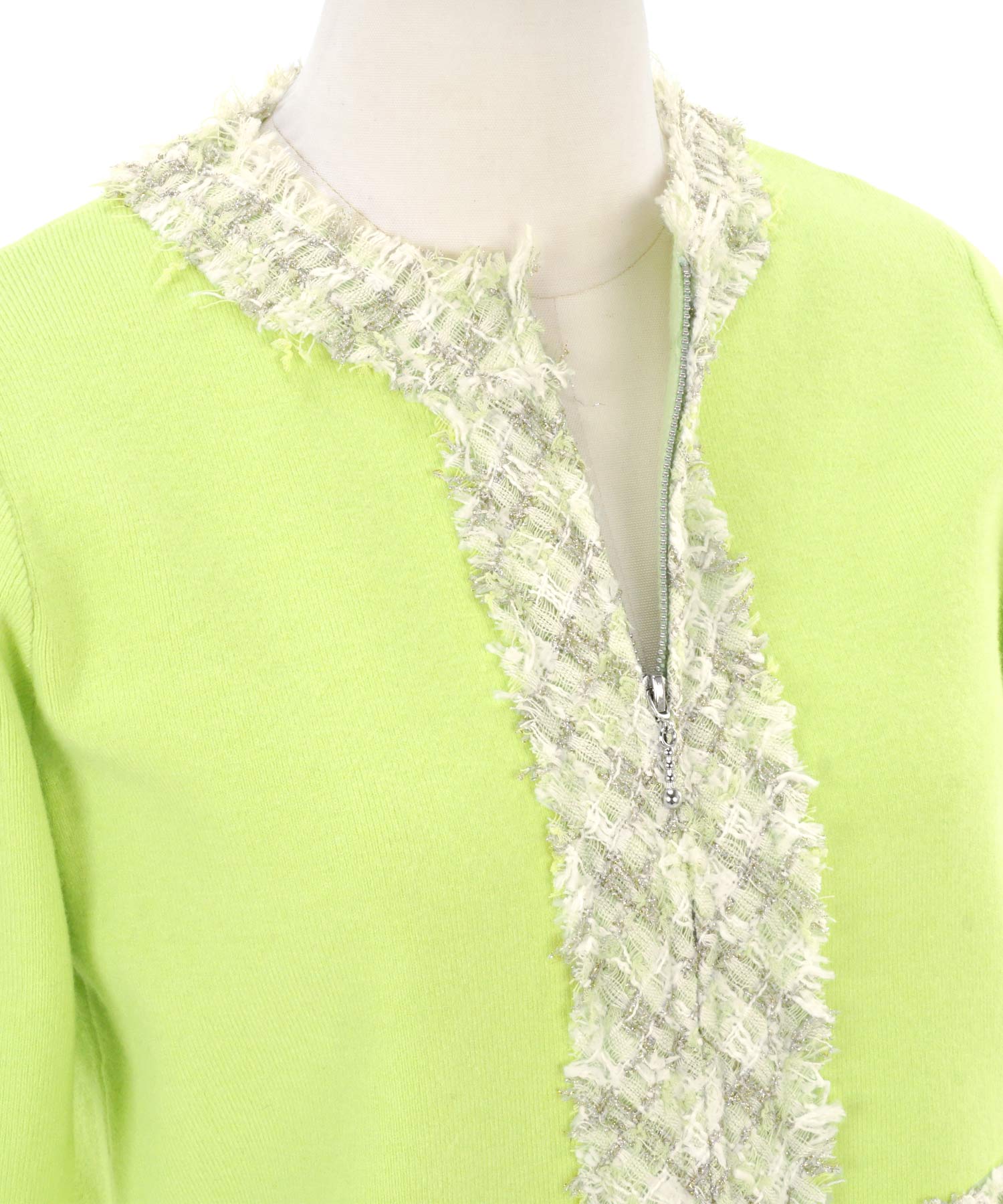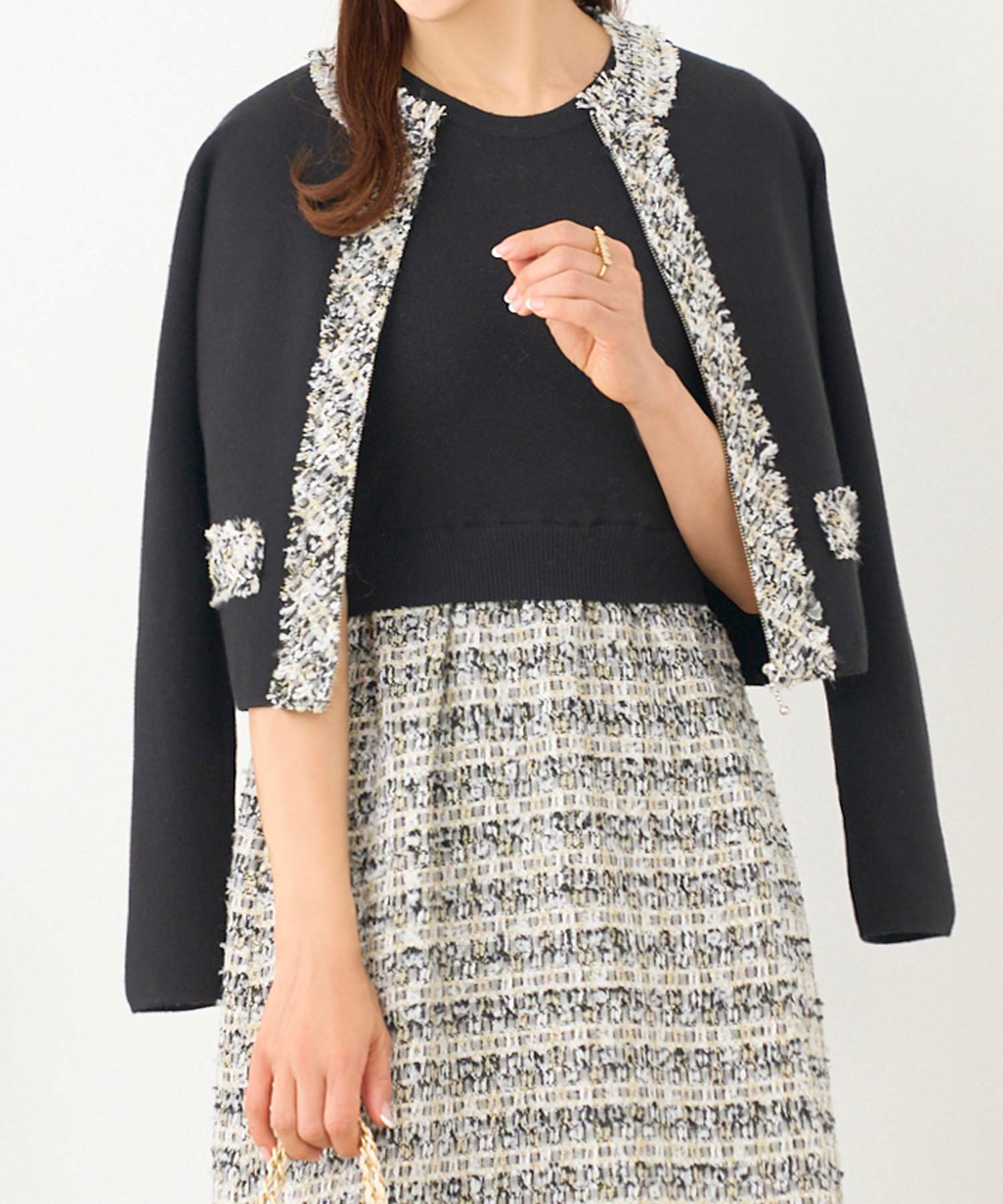 ツイードドッキング ニット ジャケット風 カーディガン(Prima Scherrer)¥14,080(税込)