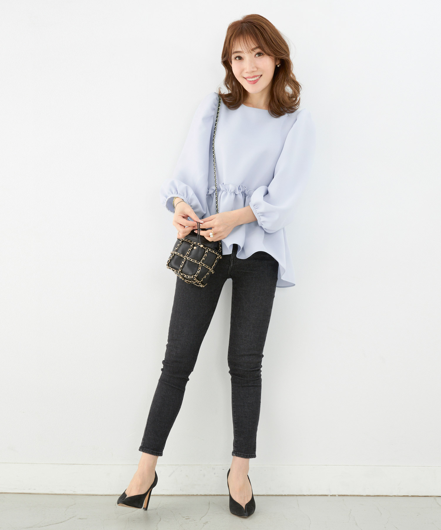 大人カジュアルを格上げ! パステルブルーの美シルエットパンツ