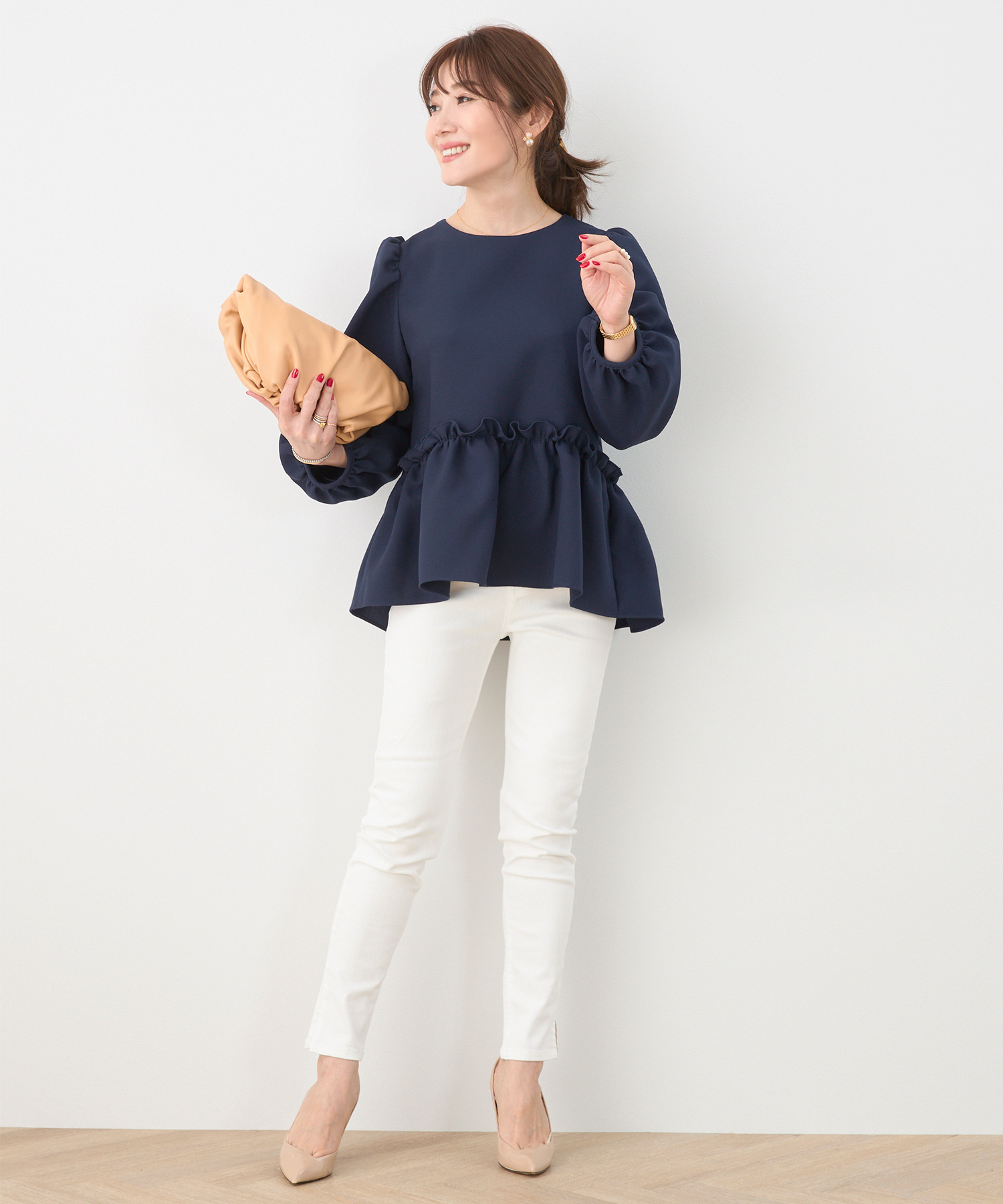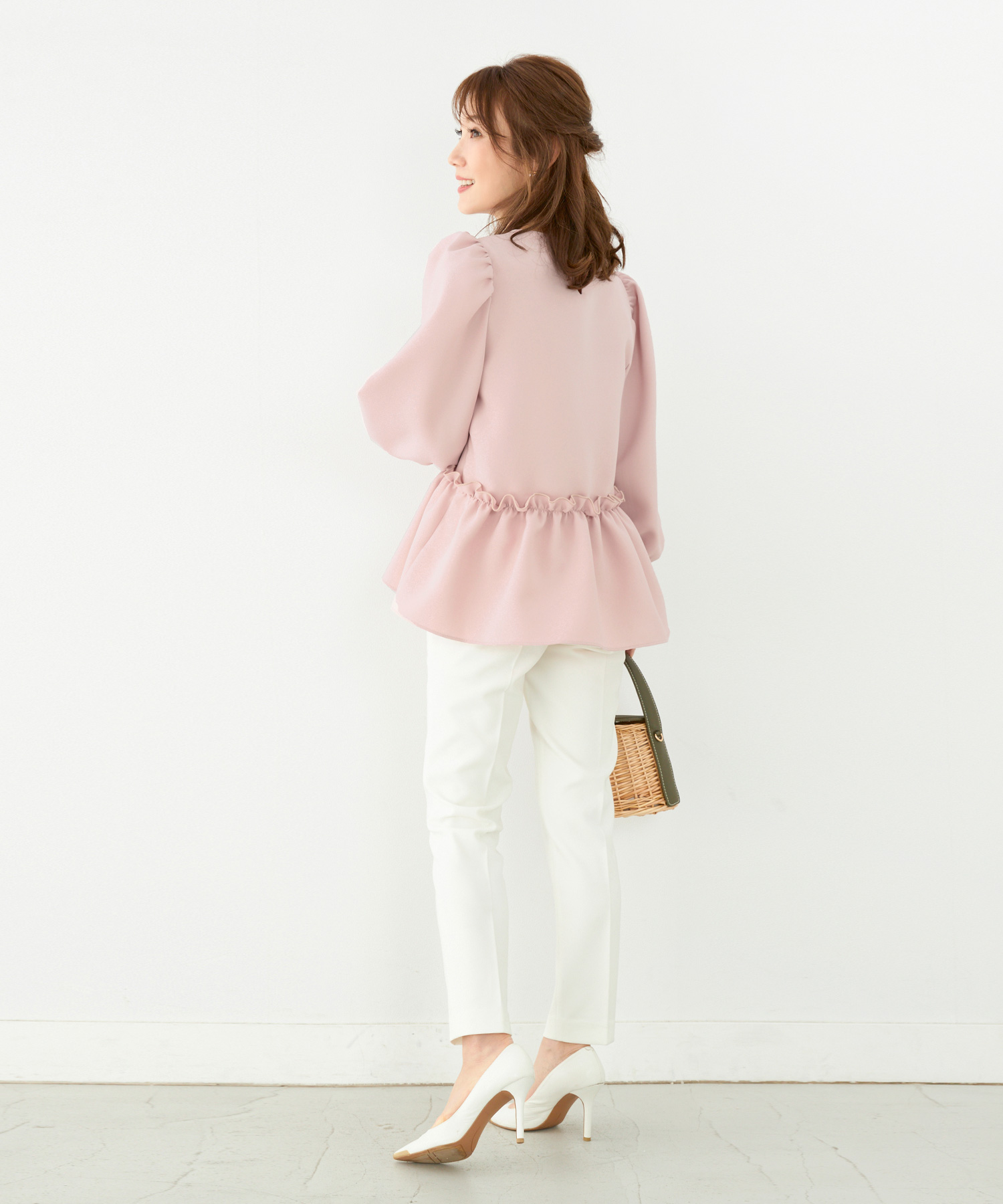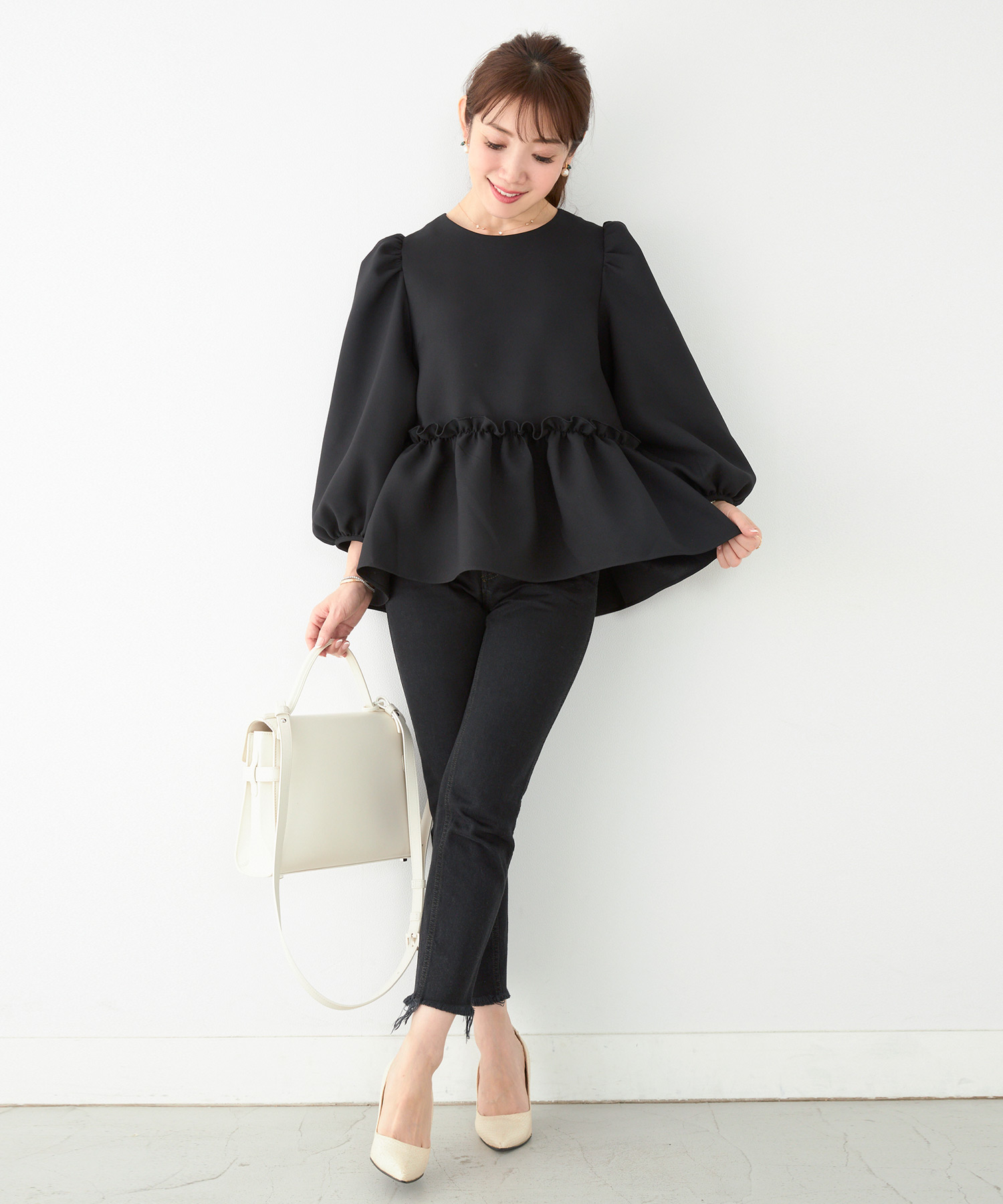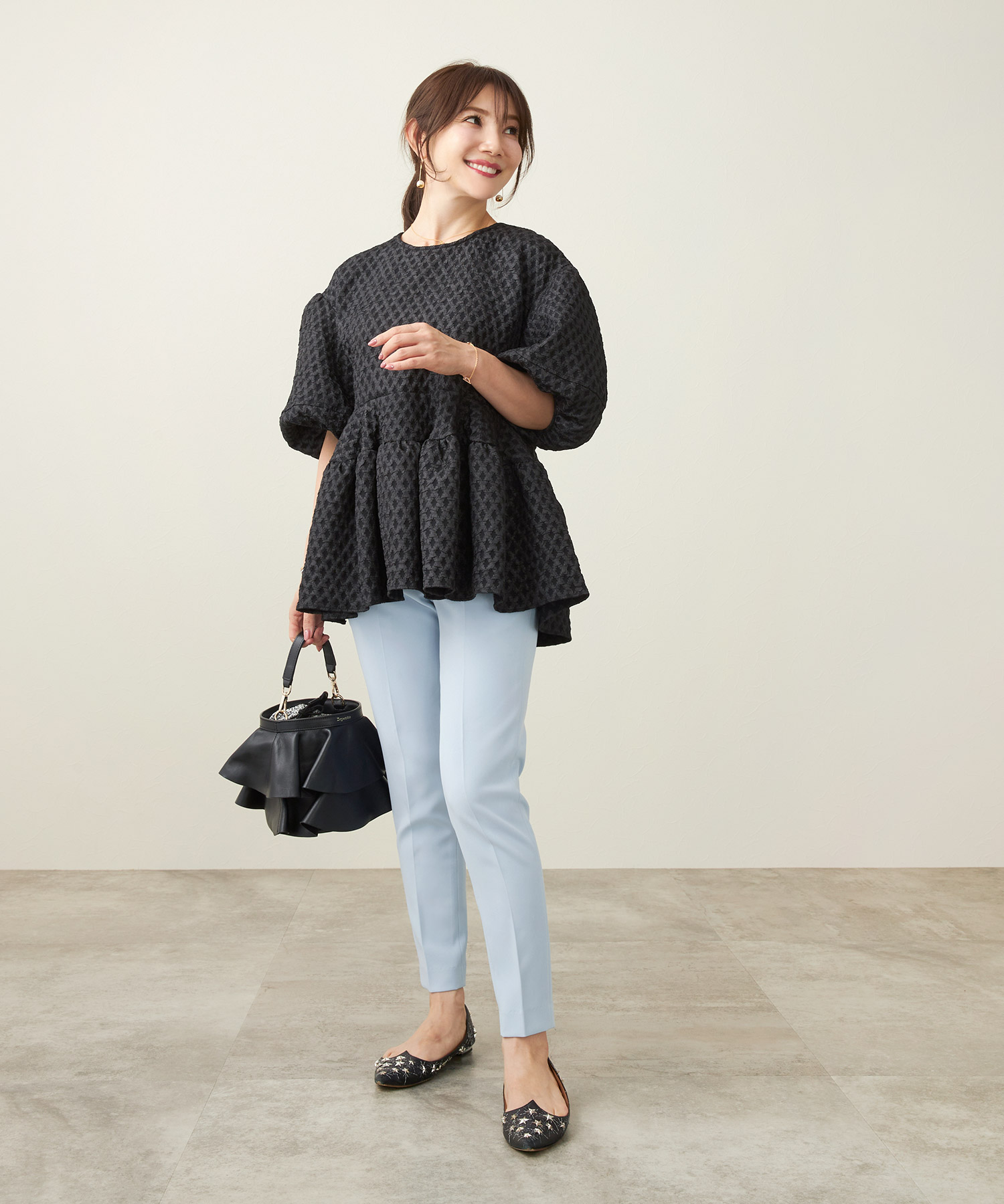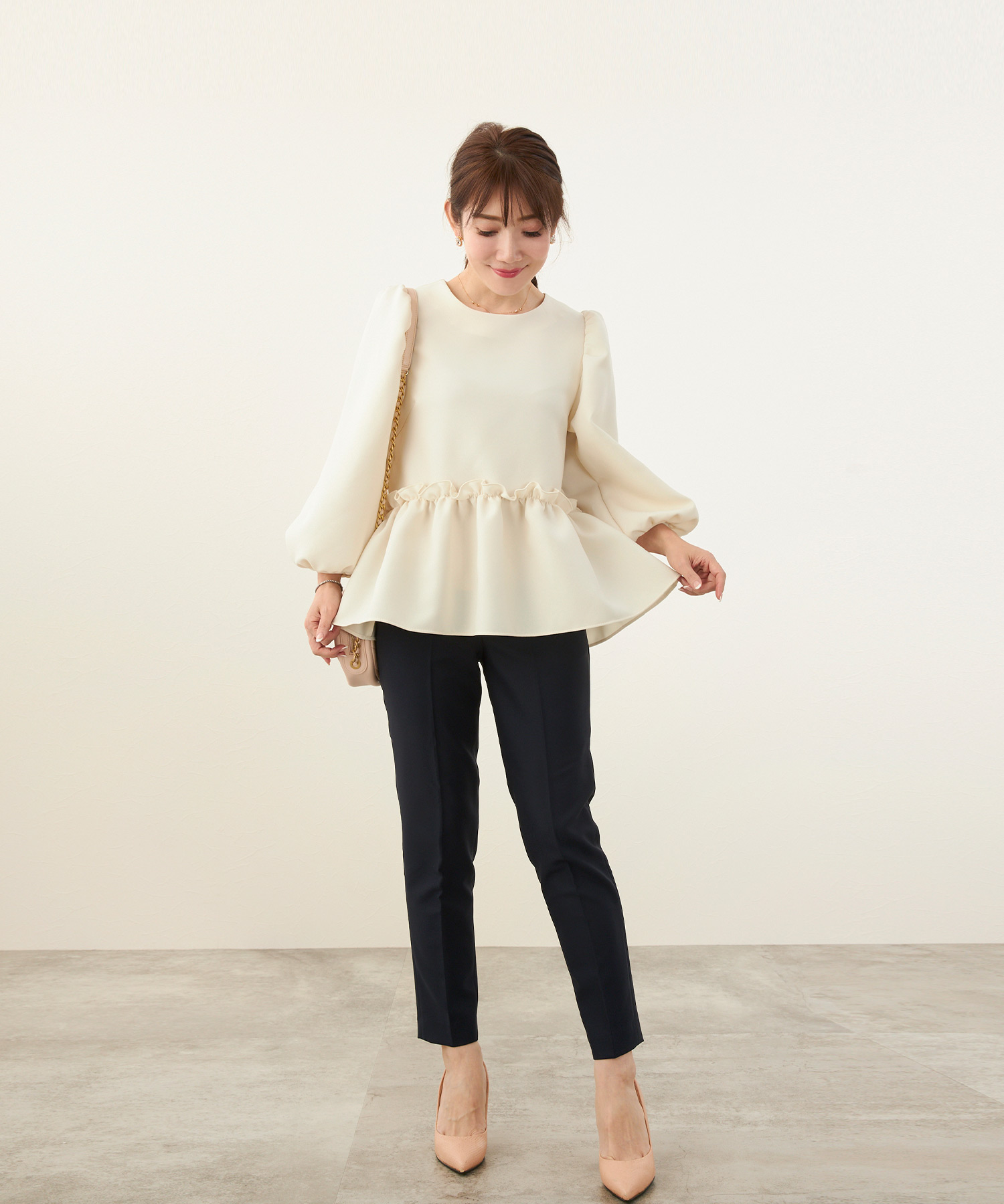 パフスリーブ 8分袖 ペプラム ブラウス(Liala×PG)¥6,490(税込)