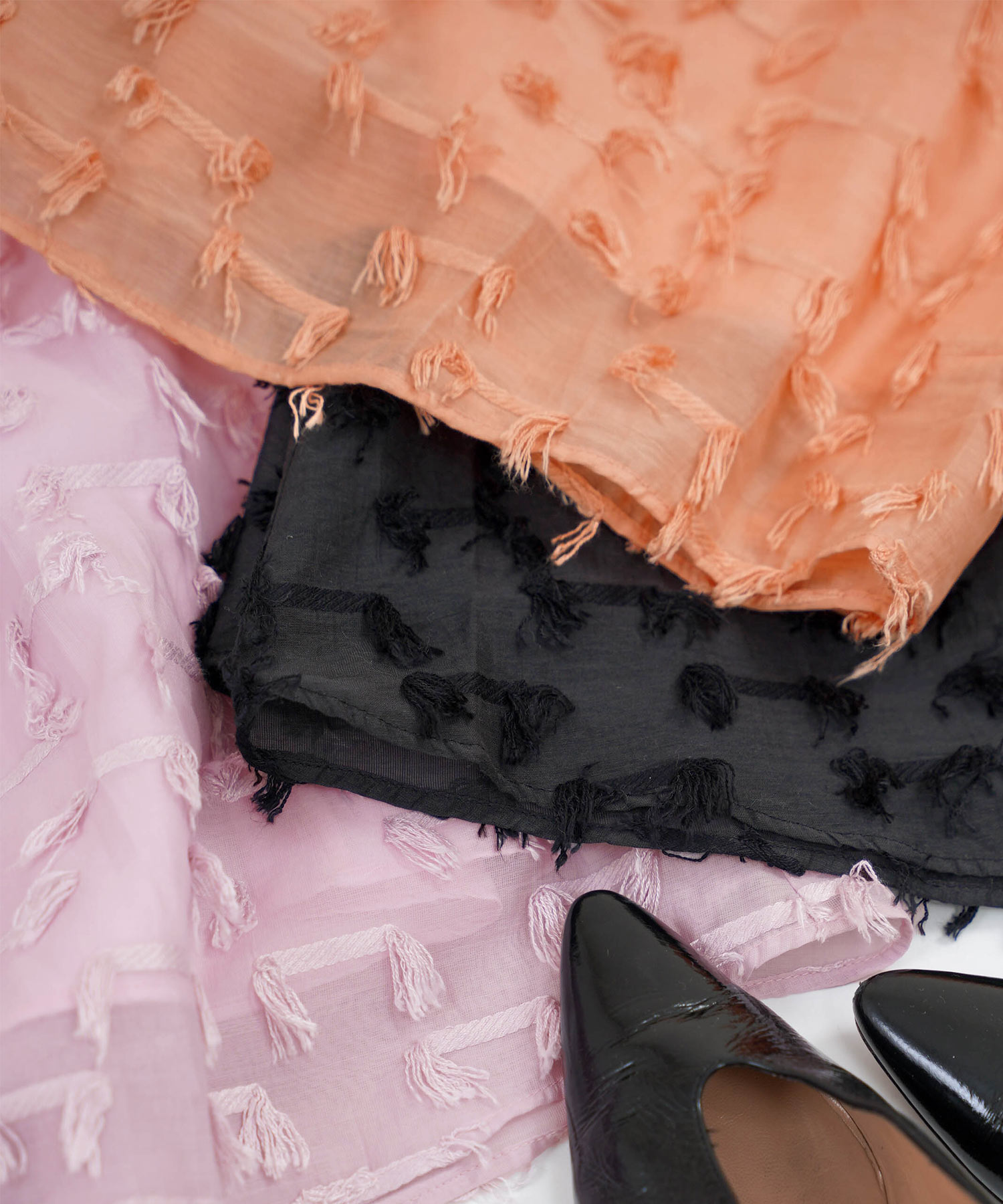 フリンジジャガード オーガンジー スカート(Liala×PG)¥11,990(税込)
