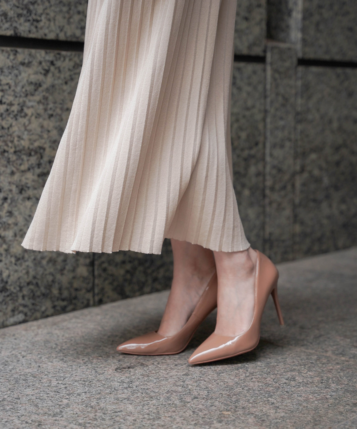 女性らしさを引き立てるピンクのニットプリーツスカート