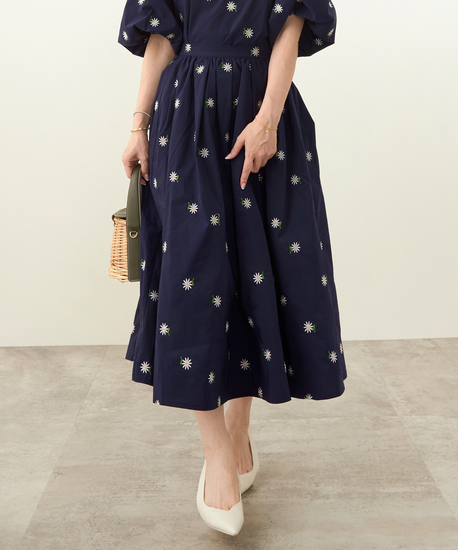 マーガレット 花刺繍 ふんわり スカート(Liala×PG)¥11,000(税込)