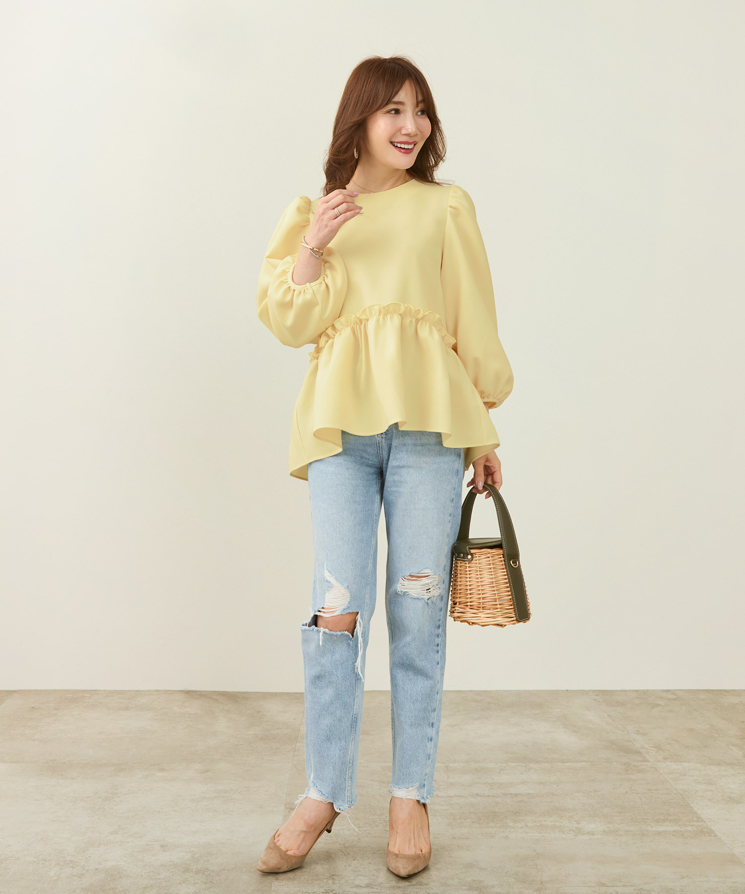 ふんわりパフスリーブ&マイルドイエローで春らしい着映えブラウス