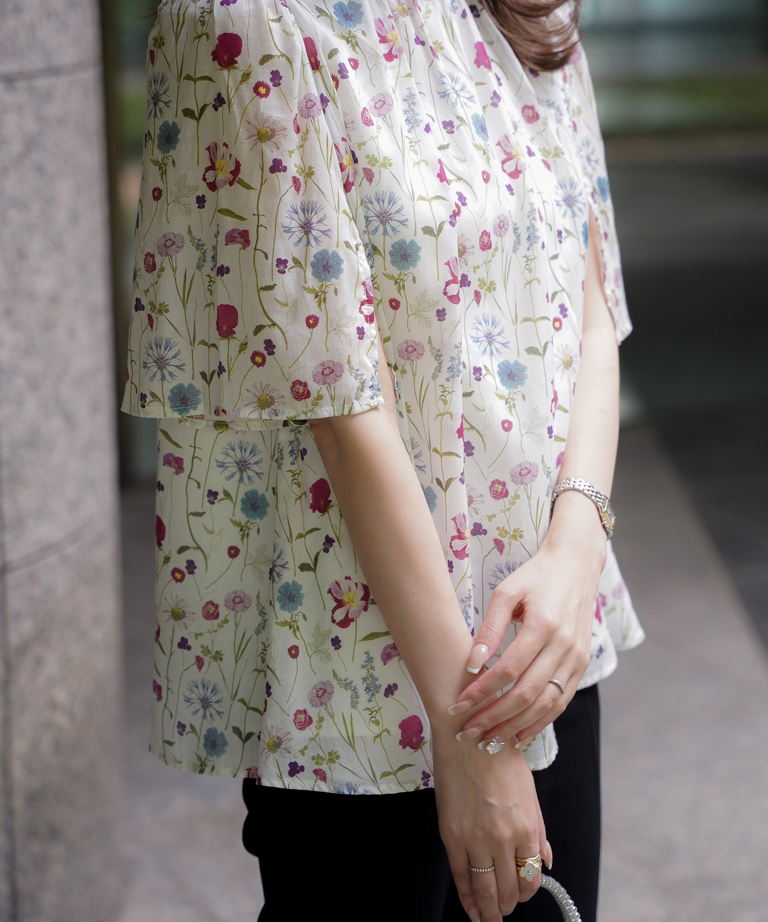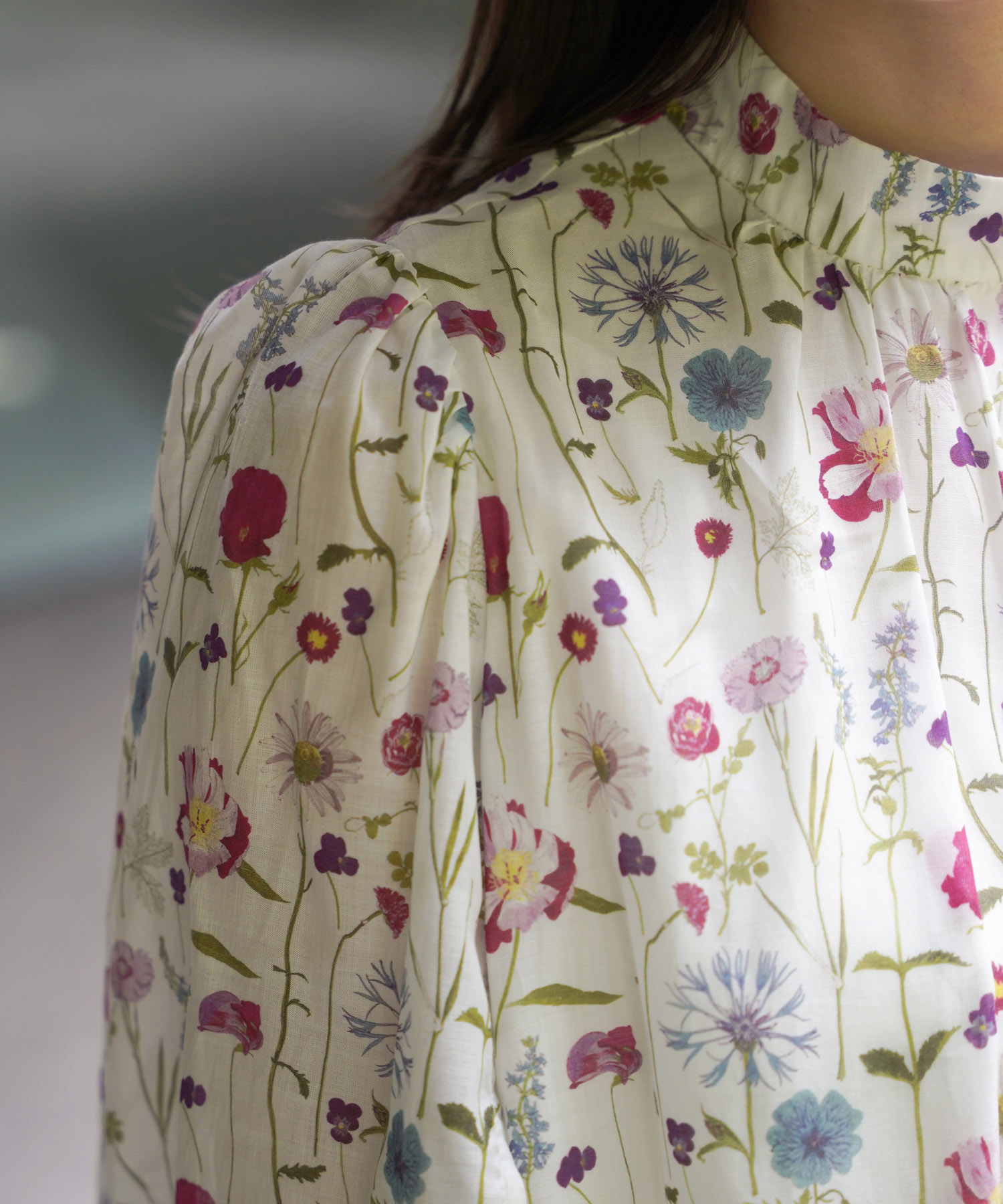 気分を上げるカラフルなリバティのボタニカル柄ブラウス。
