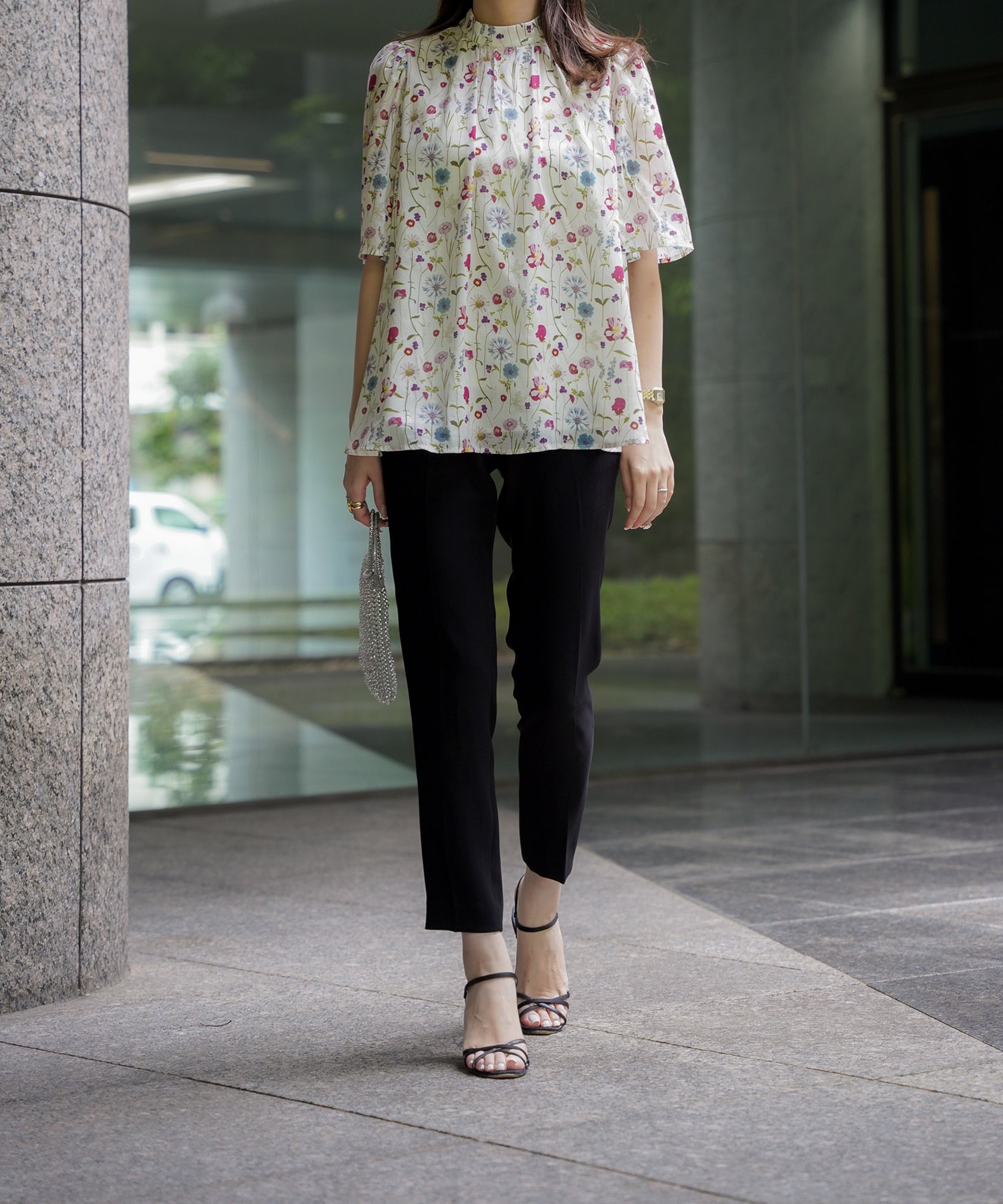 華やかなリバティ花柄ブラウスで夏の装いに彩りを
