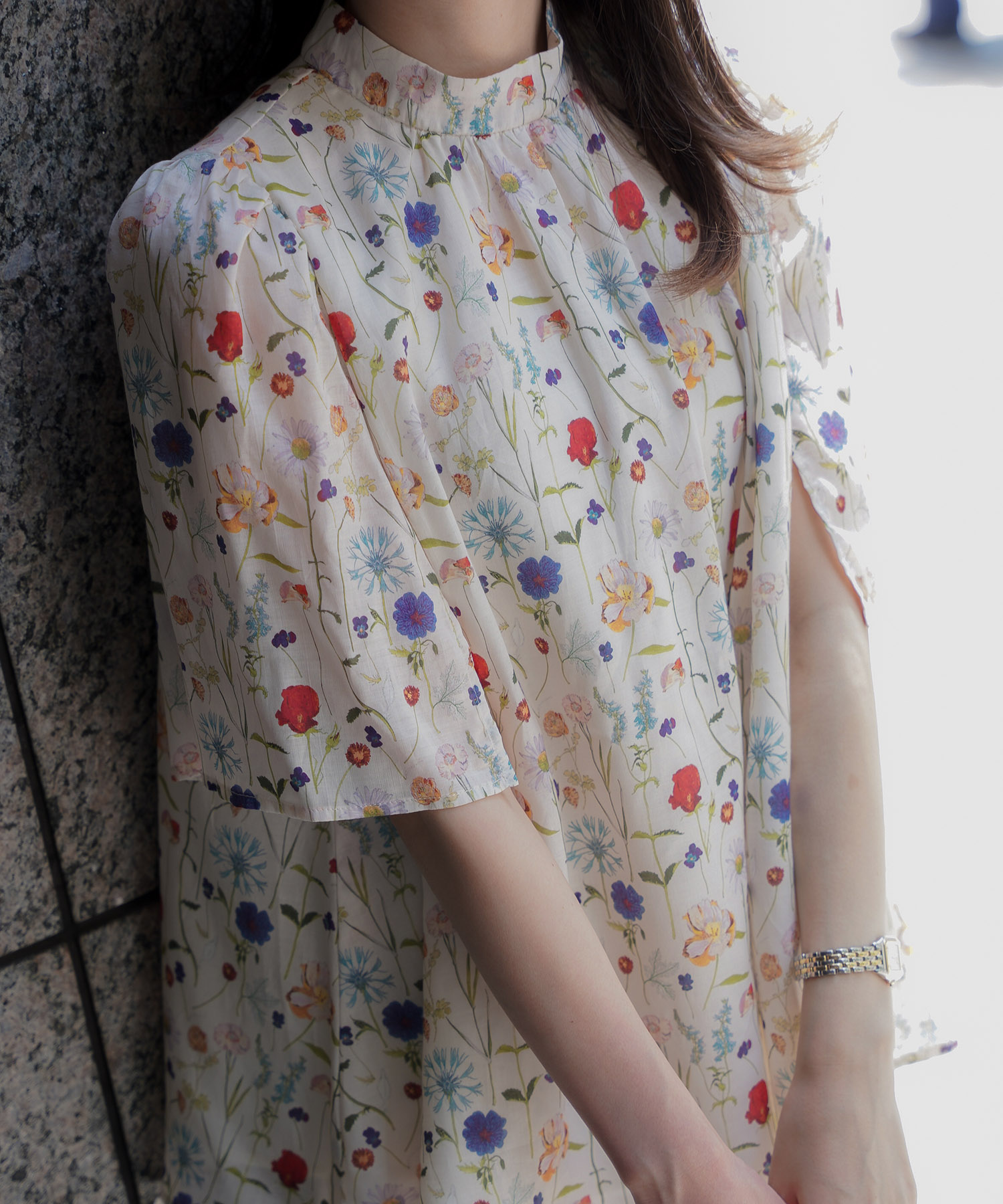 フラワープリント リングレース スタンドネック ワンピース(Prima Scherrer)¥16,830(税込)