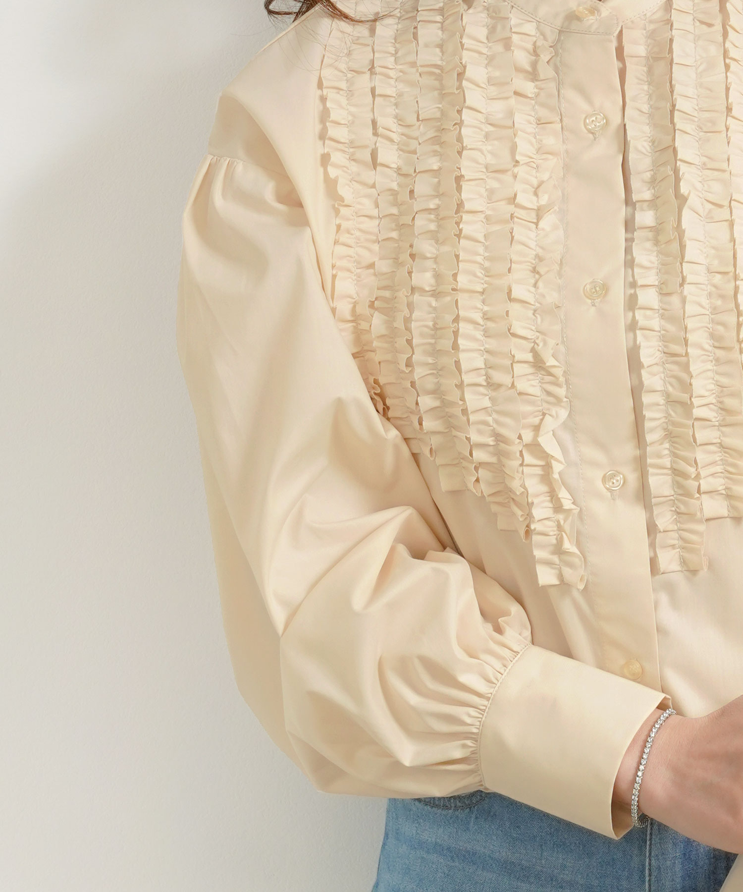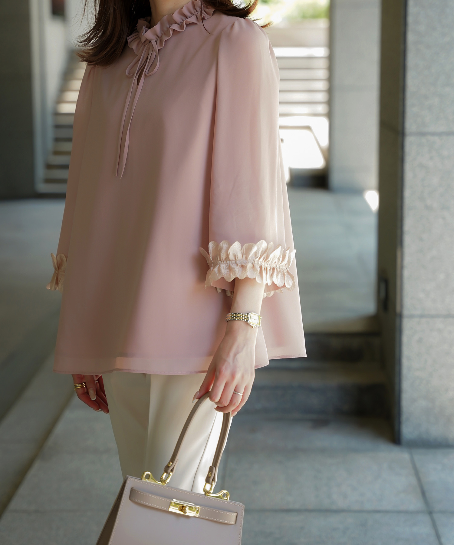 バンドカラー フリル ブラウス 長袖(Liala×PG)¥8,800(税込)