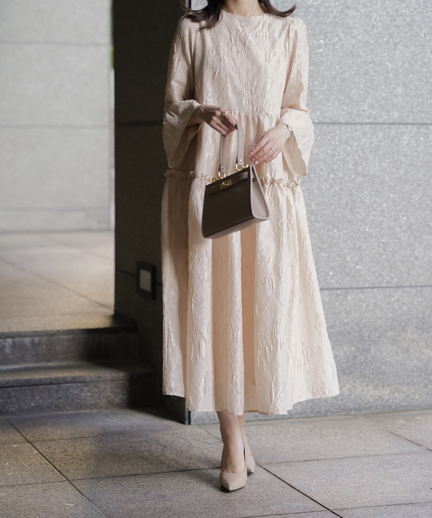 ベルスリーブ ジャガード ボリューム ワンピース(HUIT)¥15,950(税込)