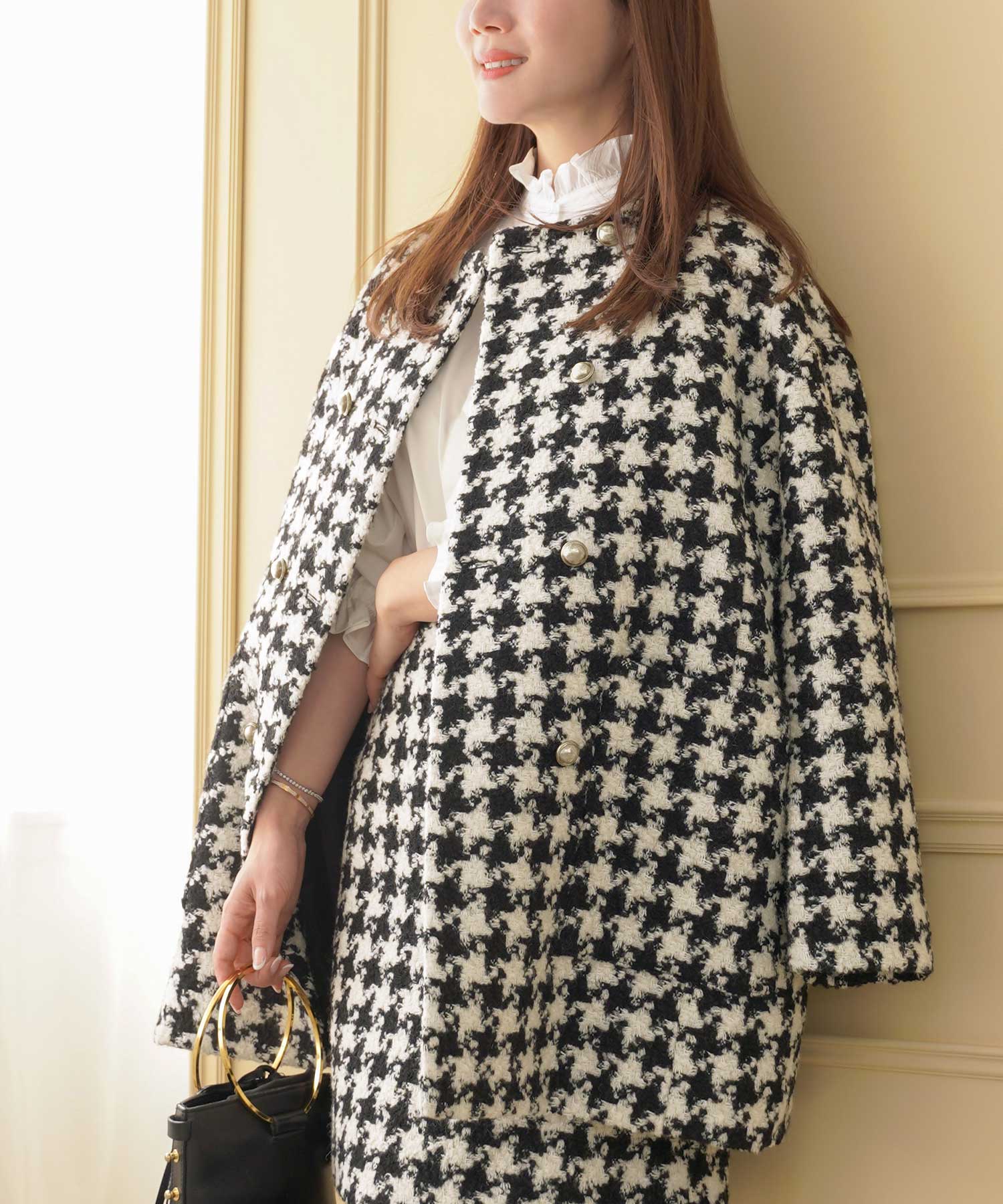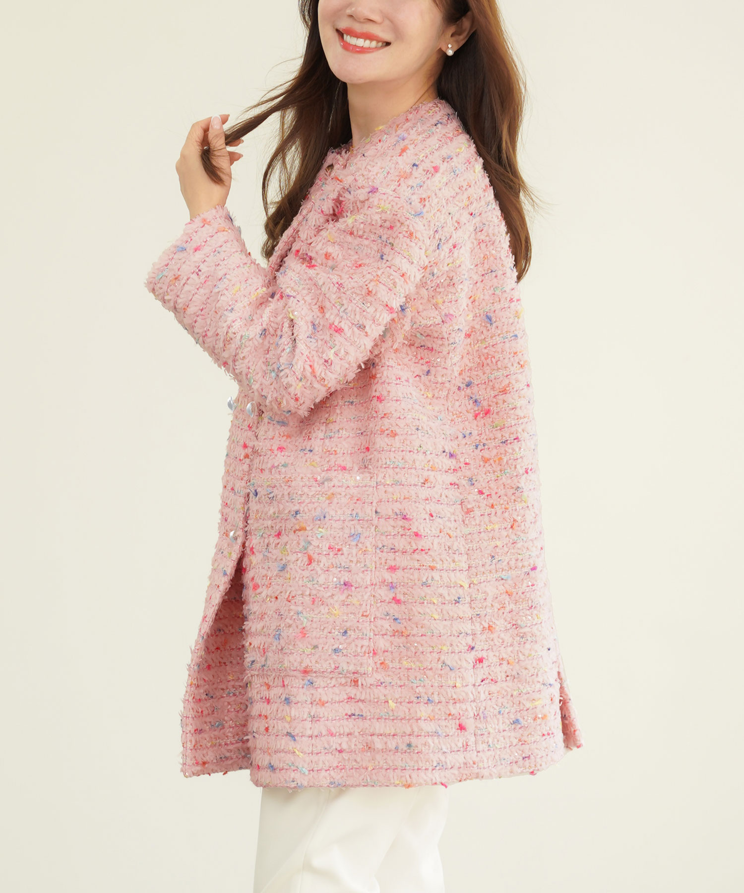 ノーカラー カラフルツイード ダブルボタン コート(Liala×PG)¥23,100(税込)