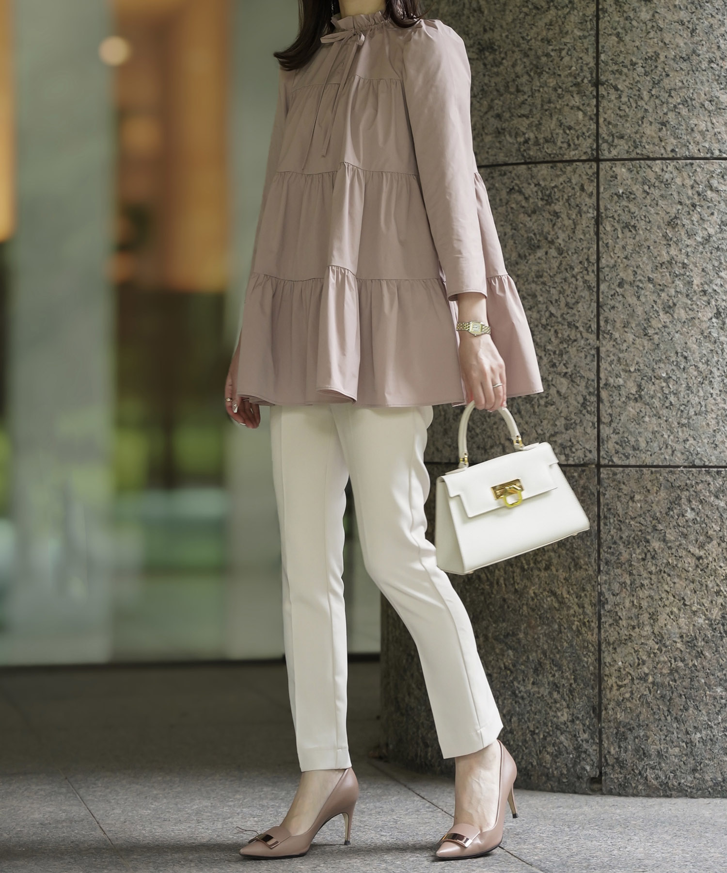 ティアードブラウスで魅せる!大人の甘コーデはブラウンで品よく仕上げる