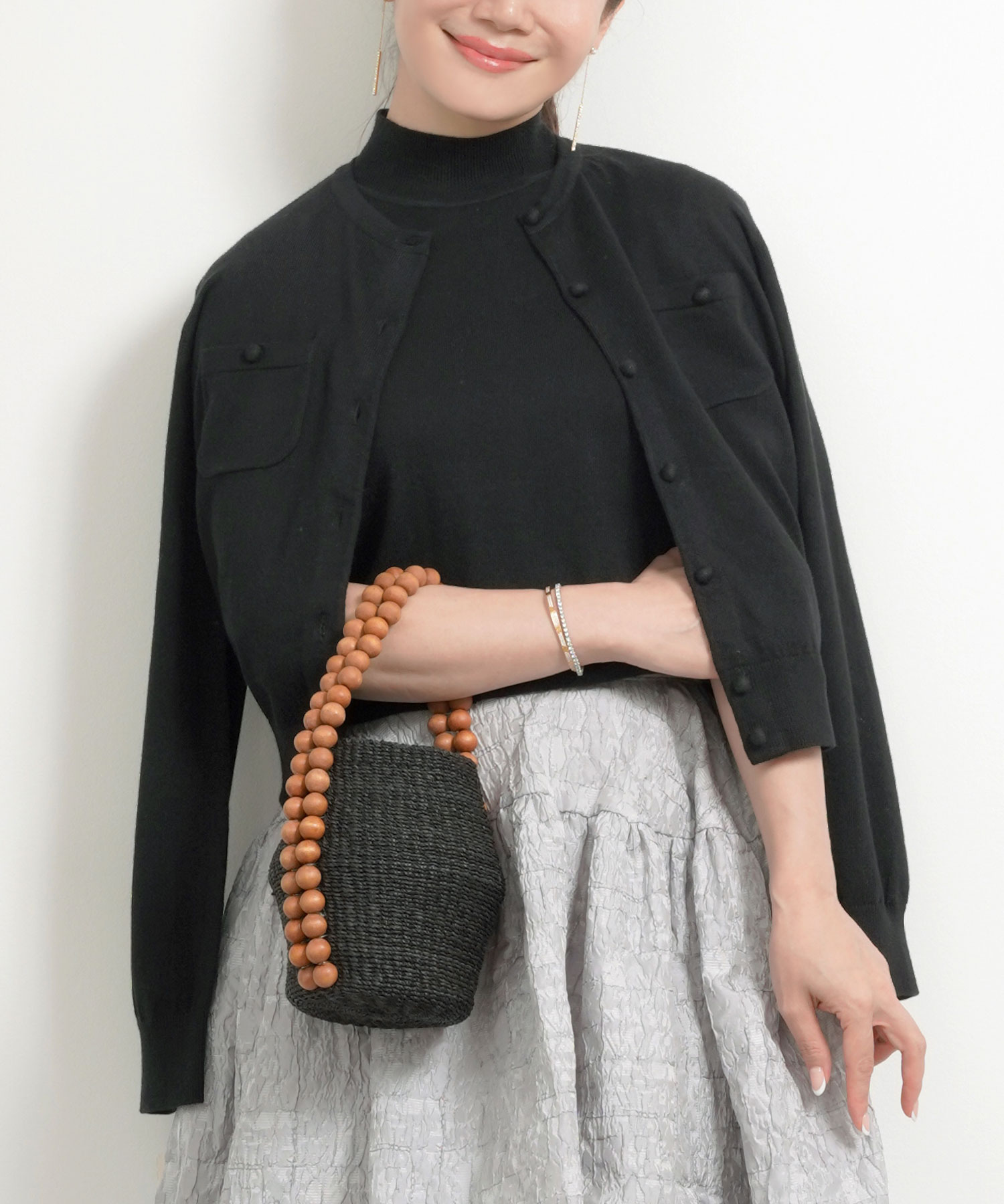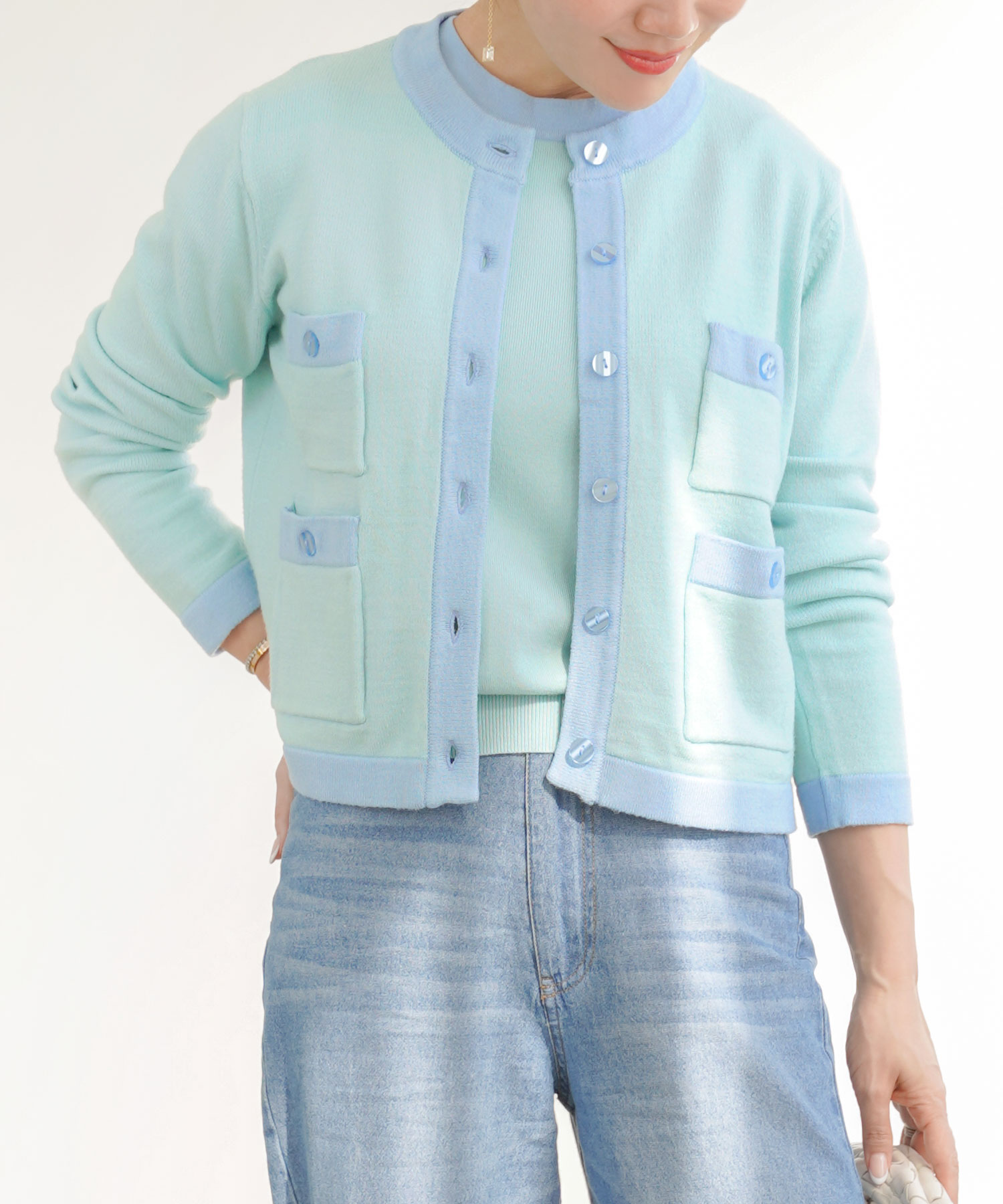 4つポケット バイカラー カーディガン 5分袖インナー アンサンブル ニット(Liala×PG)¥13,200(税込)