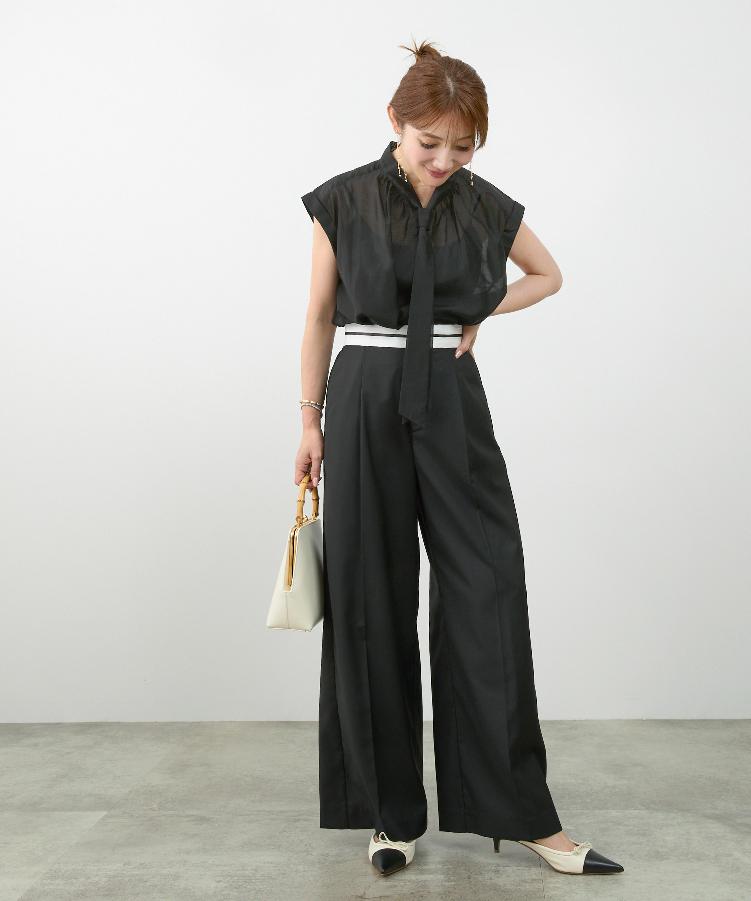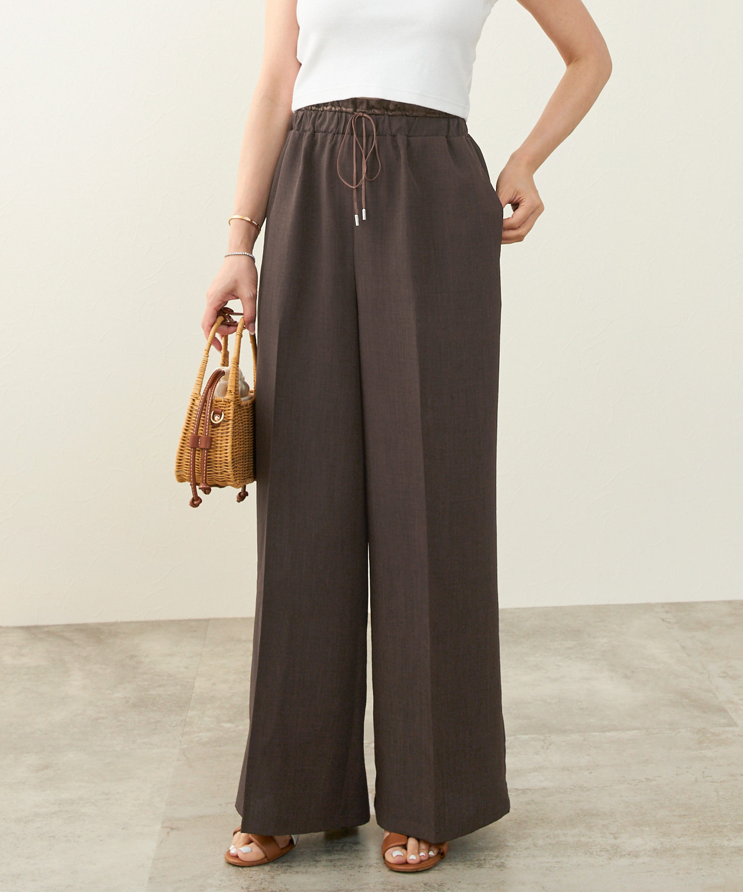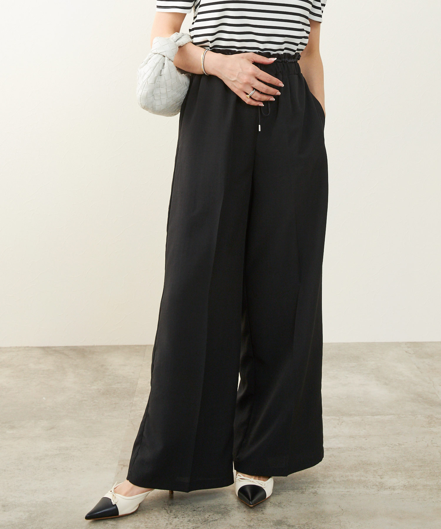 サテン切り替え ウエストゴム&ドロスト ワイド パンツ(Liala×PG)¥9,350(税込)
