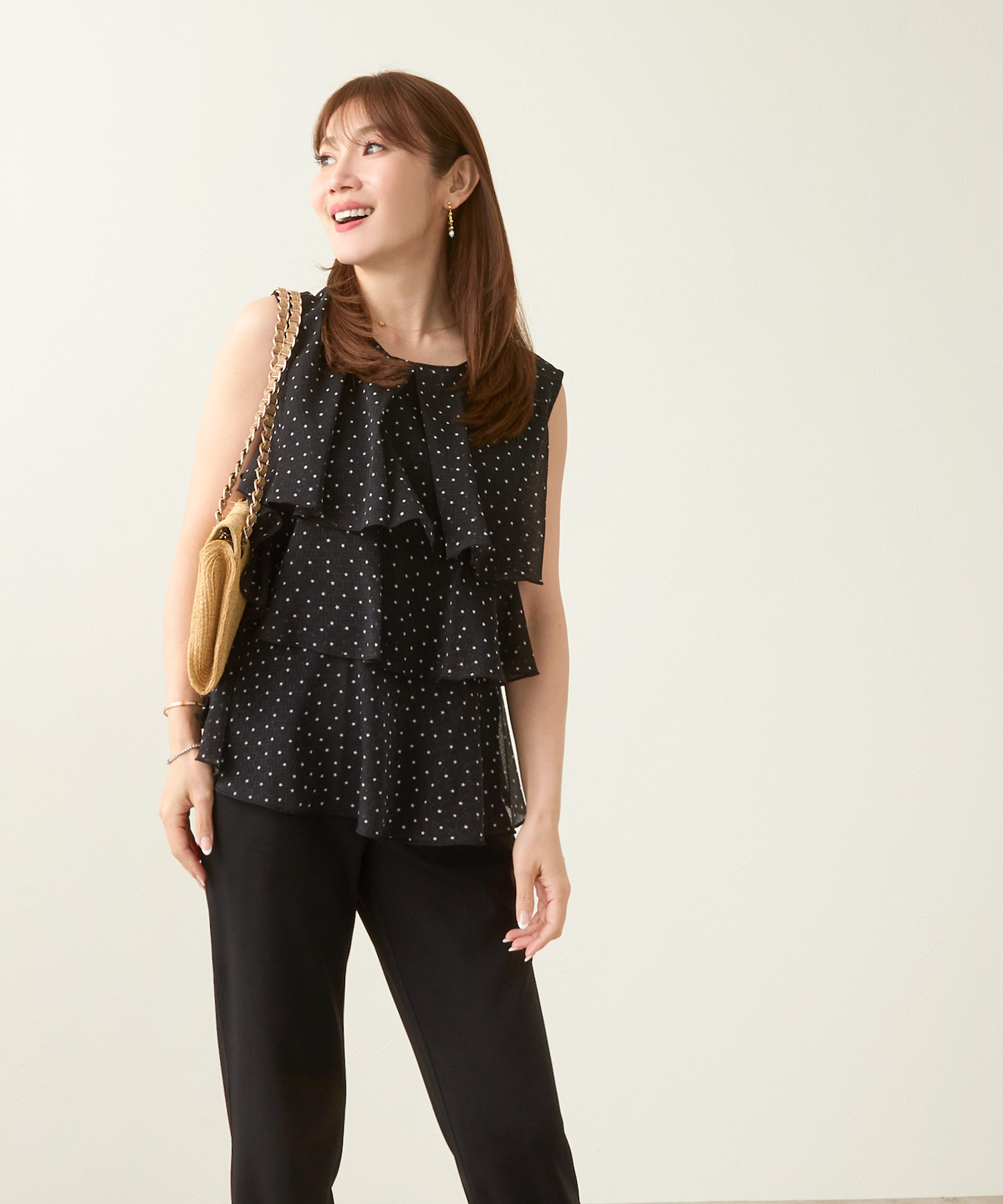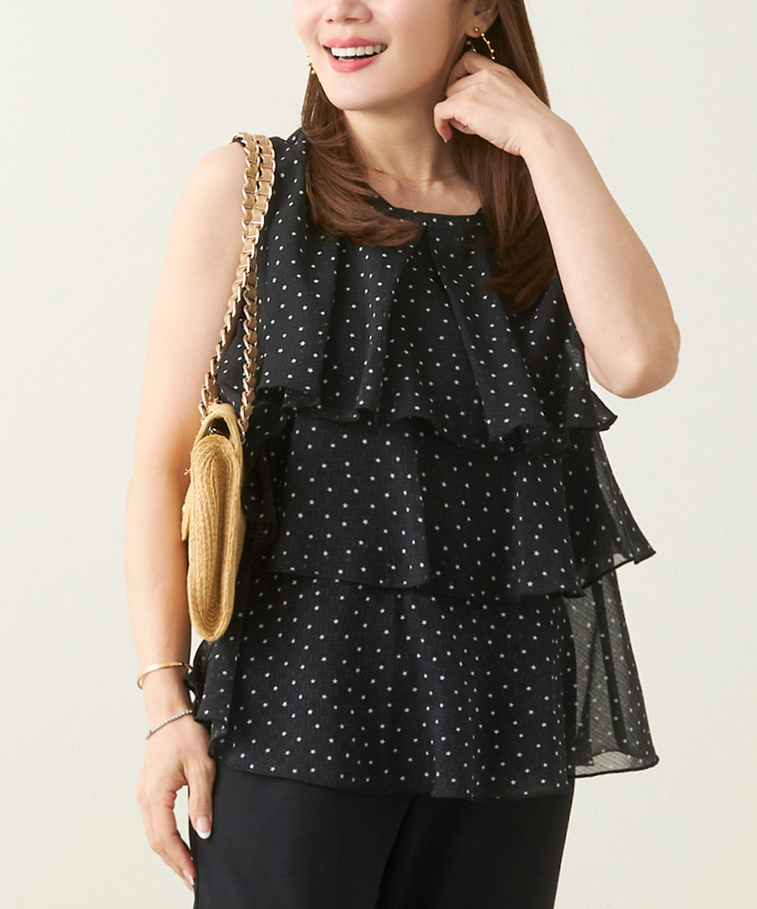 シアー星プリント ティアード ブラウス ノースリーブ(Liala×PG)¥8,250(税込)