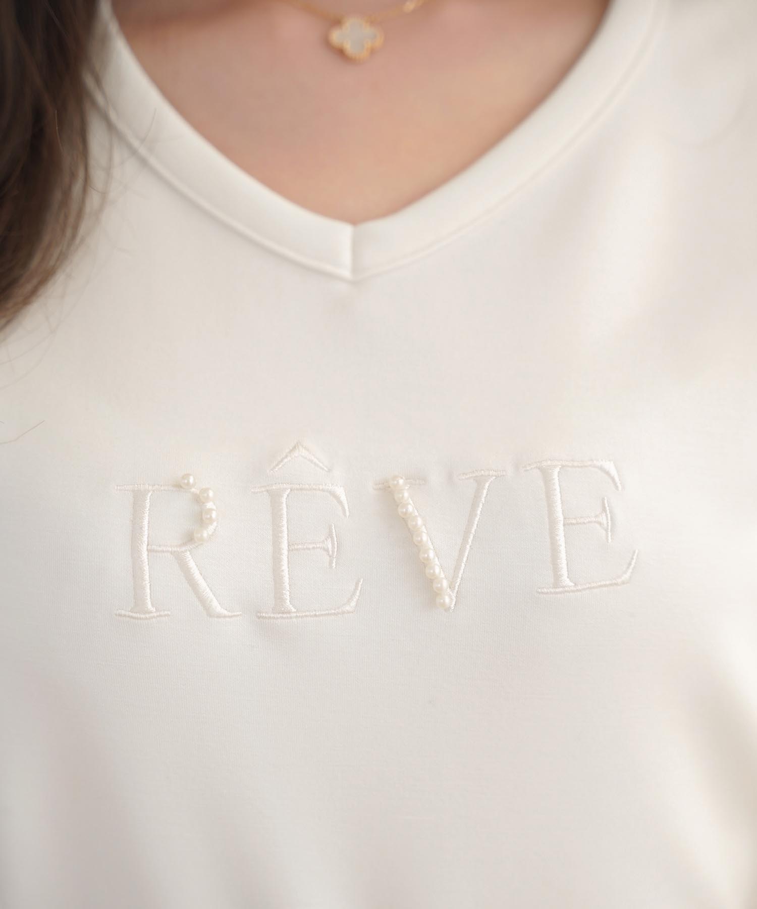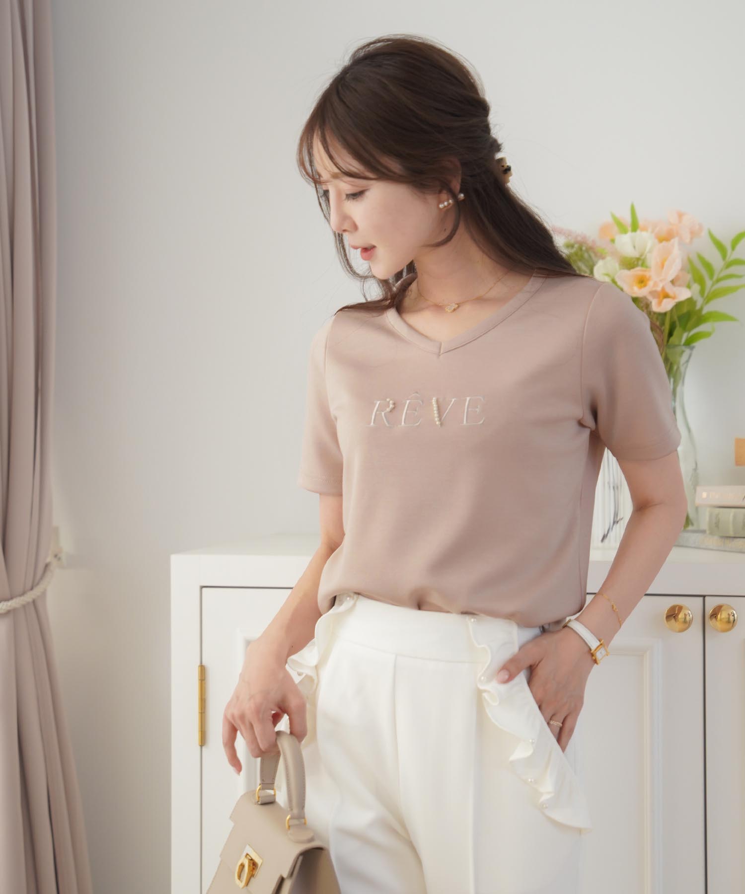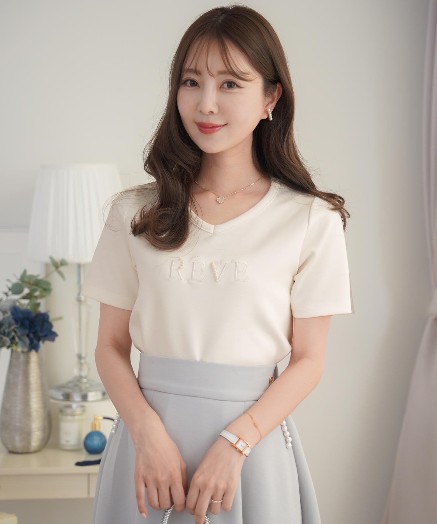 刺繍 & パール Vネック Tシャツ(le reve vaniller)¥5,980(税込)