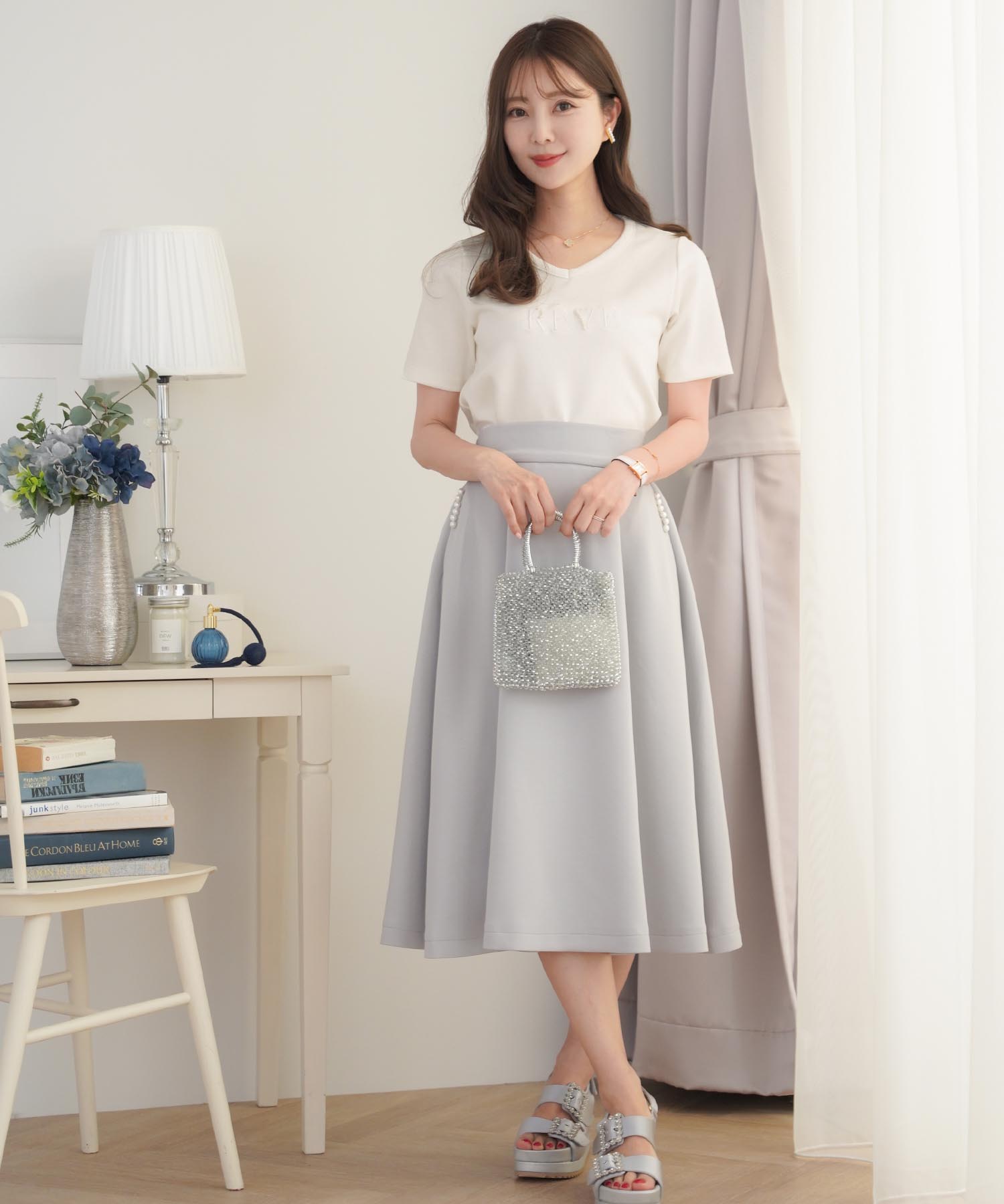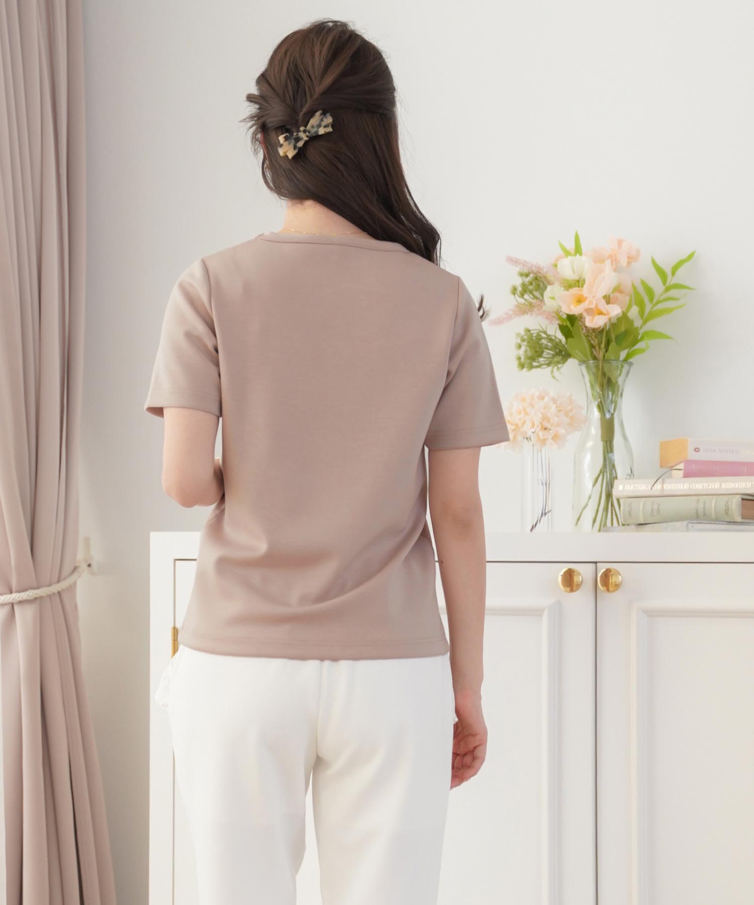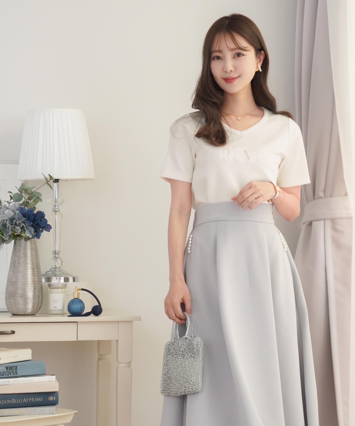 刺繍 & パール Vネック Tシャツ(le reve vaniller)¥5,980(税込)