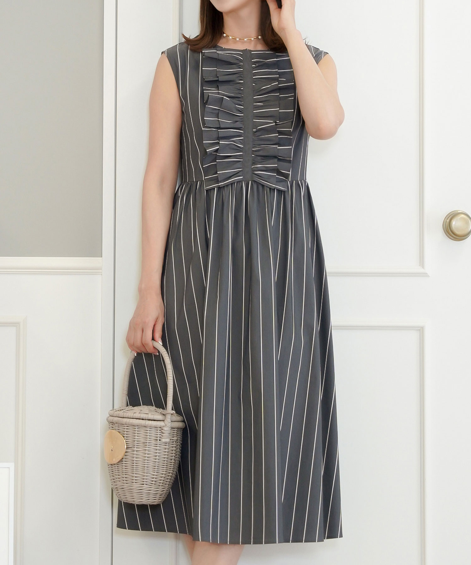 フロントフリル リラックス ノースリーブ ワンピース(Prima Scherrer)¥12,980(税込)