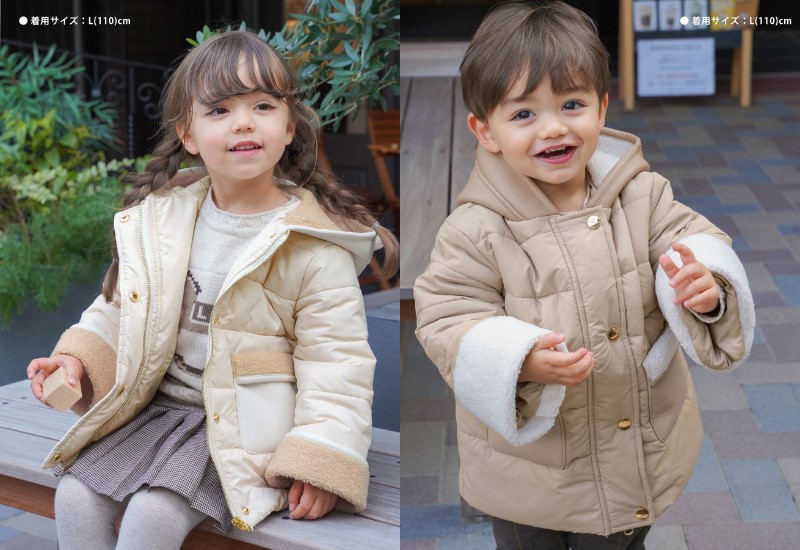 ダウンコートは子供バージョンもあり。親子でおそろいコーデを楽しめます♡