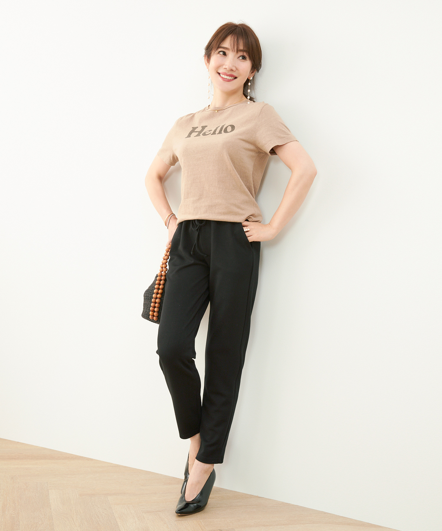 ・カットソー素材のドロストパンツでカジュアルさをプラス
