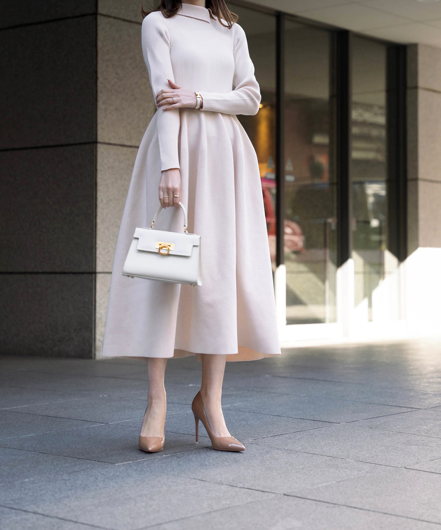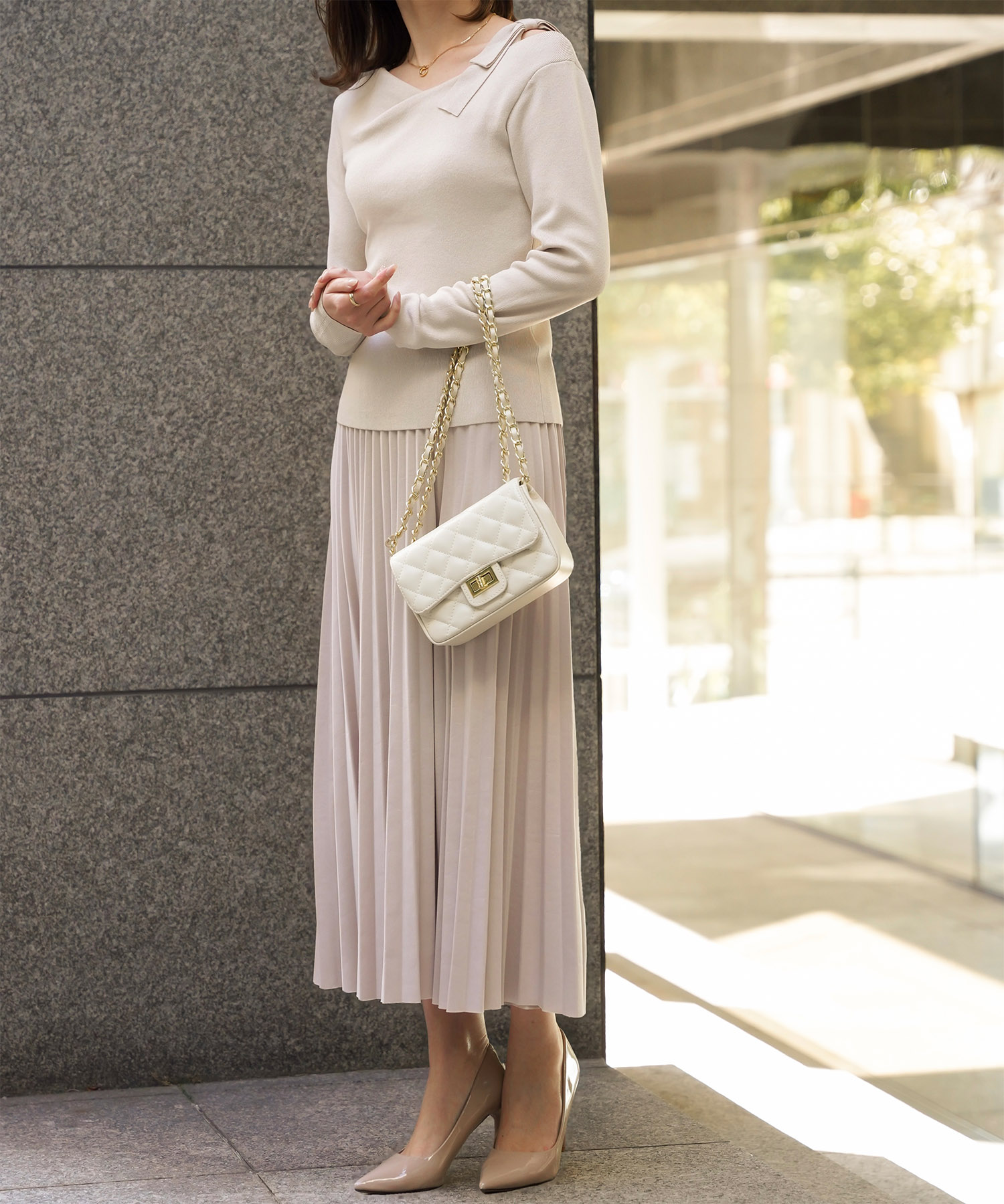 上品で華やか!クリアラメ入りプリーツスカートで冬の授業参観をエレガントに