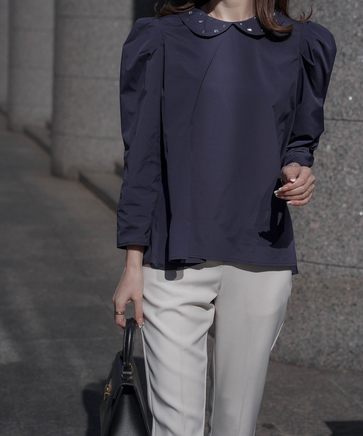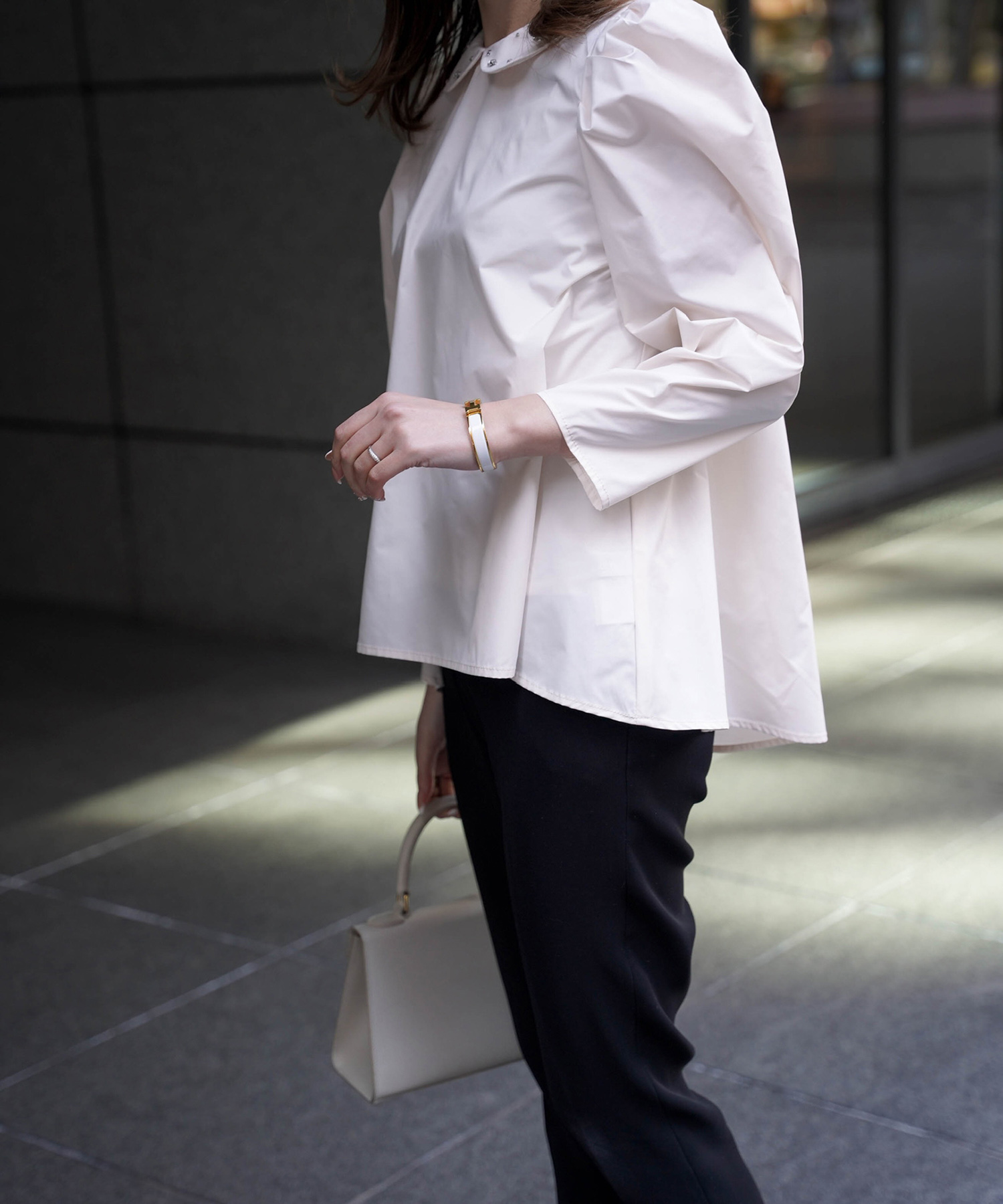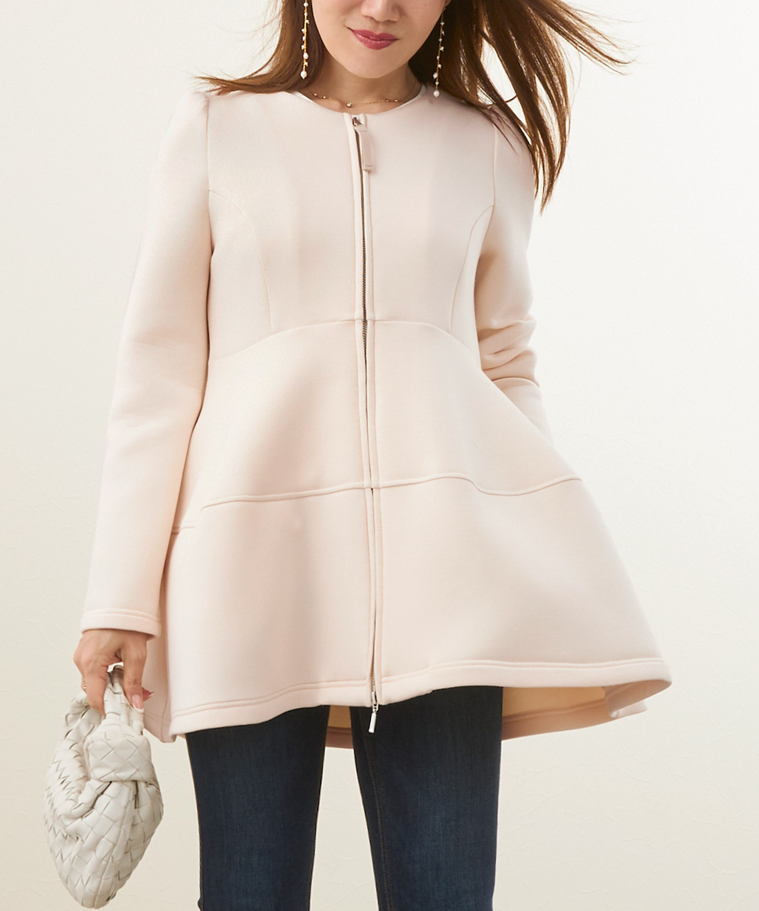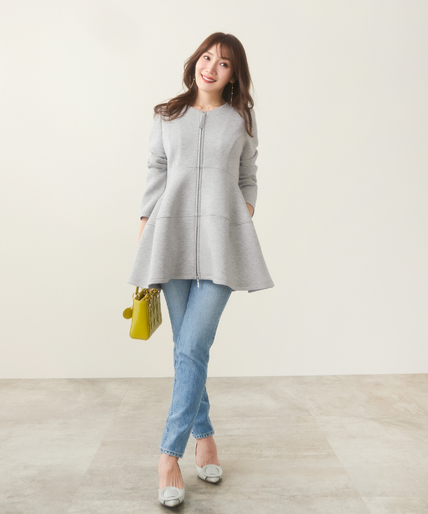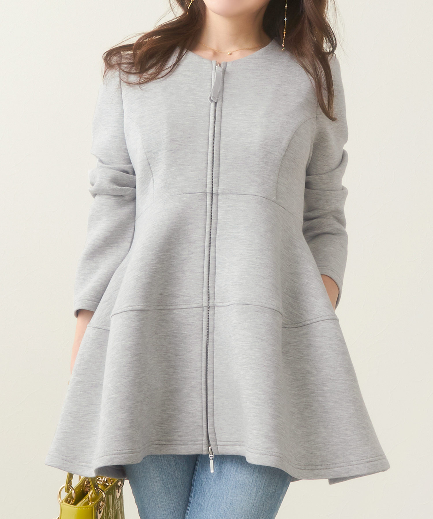 襟付き ボンディング フレア トップス 長袖(HUIT)¥9,900(税込)