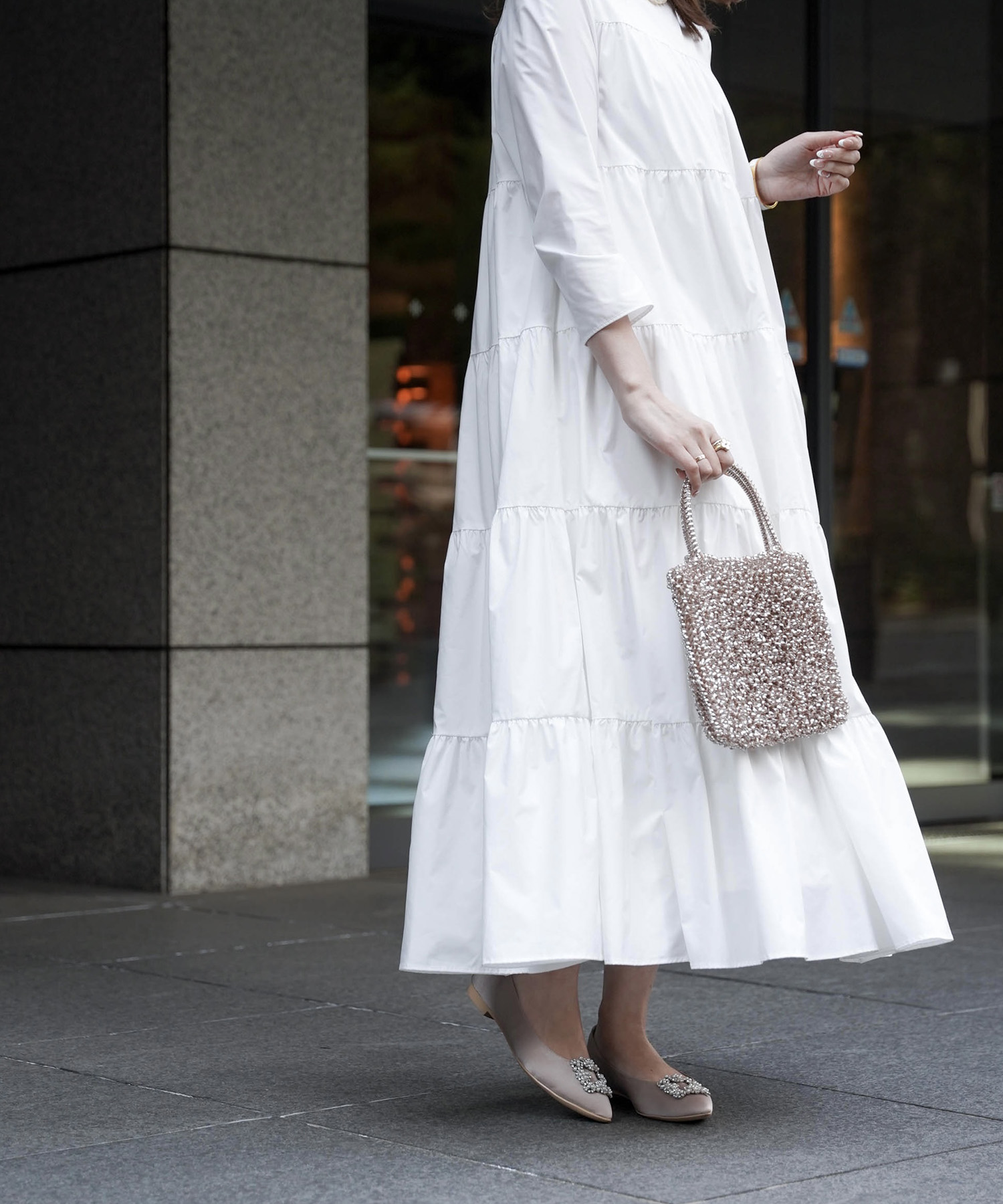Tシャツにさらっと羽織るだけで、きちんと感が加わる軽やかジレ。暑い日も涼やかに過ごせる素材で、夏の授業参観に最適です。白Tや白ボトムと合わせれば、爽やかな初夏の装いに。ワンピース風にも着られる2WAY仕様で、着回し力も抜群。