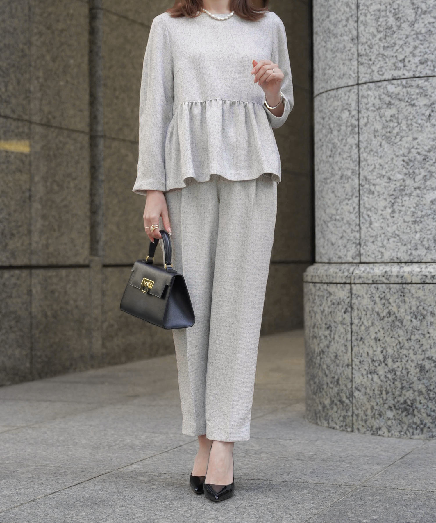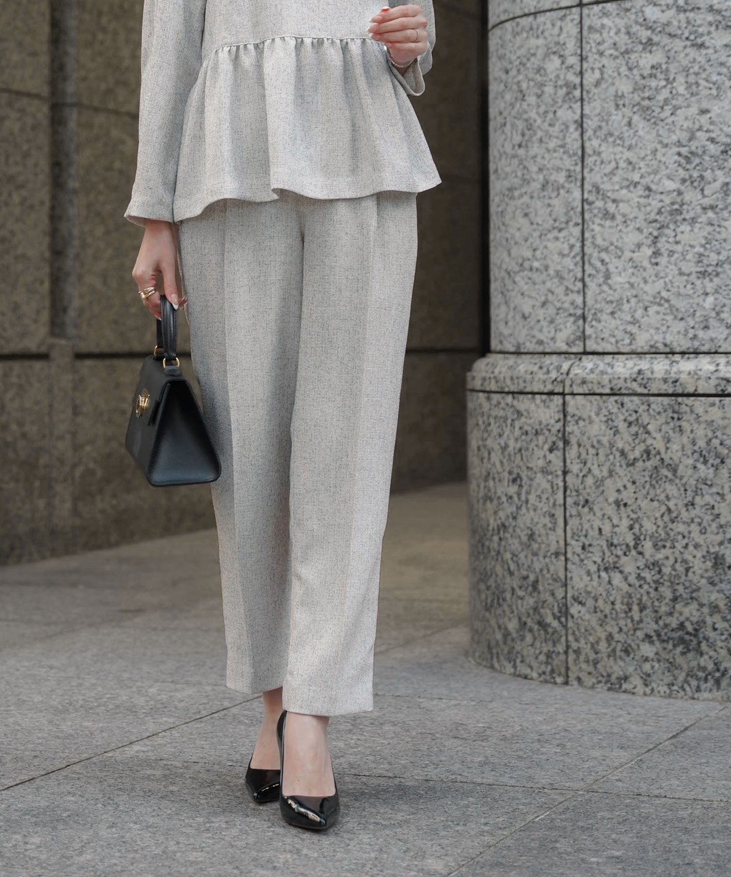 ダンボールニットを使用したこのパンツは、リラックス感のあるテーパードシルエットで快適さを追求しつつ、ウエストゴム仕様でストレスフリーな着心地を実現。柔らかな肌触りと軽さで、長時間の着用にも最適です。きれいなラインを保ちつつ、動きやすさも兼ね備えたデザインで、冬の授業参観にふさわしい一着です。柔らかな素材感と上品な光沢が、授業参観にぴったりの上品なスタイルを完成させます。