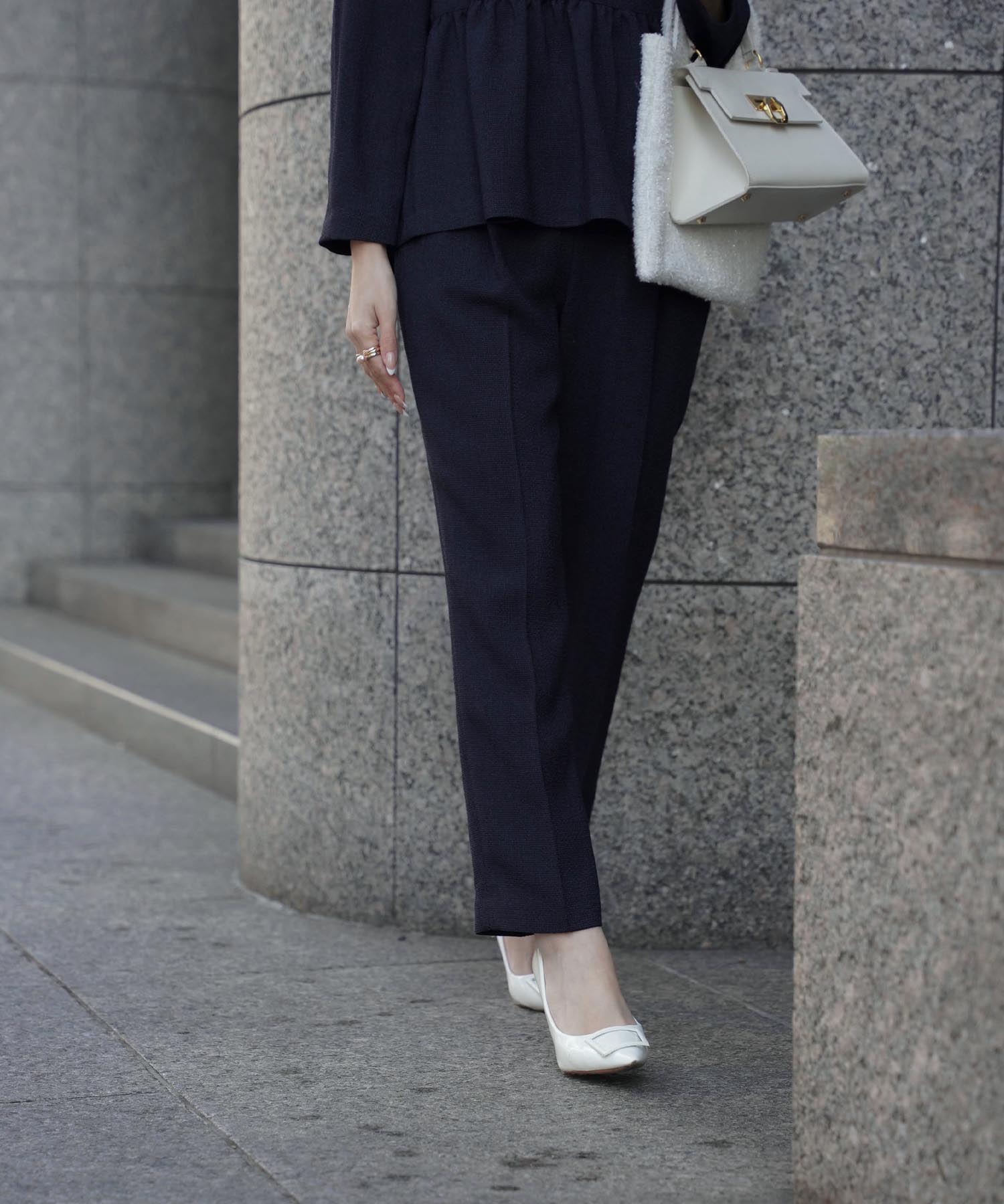 きれいめにもカジュアルにも使える、定番人気のドロストパンツ。ウエストはドローストリング仕様で調整がしやすく、動きやすさと美しいシルエットを両立。マットな光沢感がほどよく品を添え、授業参観のようなきちんと感が求められるシーンにも頼れる一本。ゆったりトップスとも相性がよく、季節を問わず着まわせるのも嬉しいポイントです。