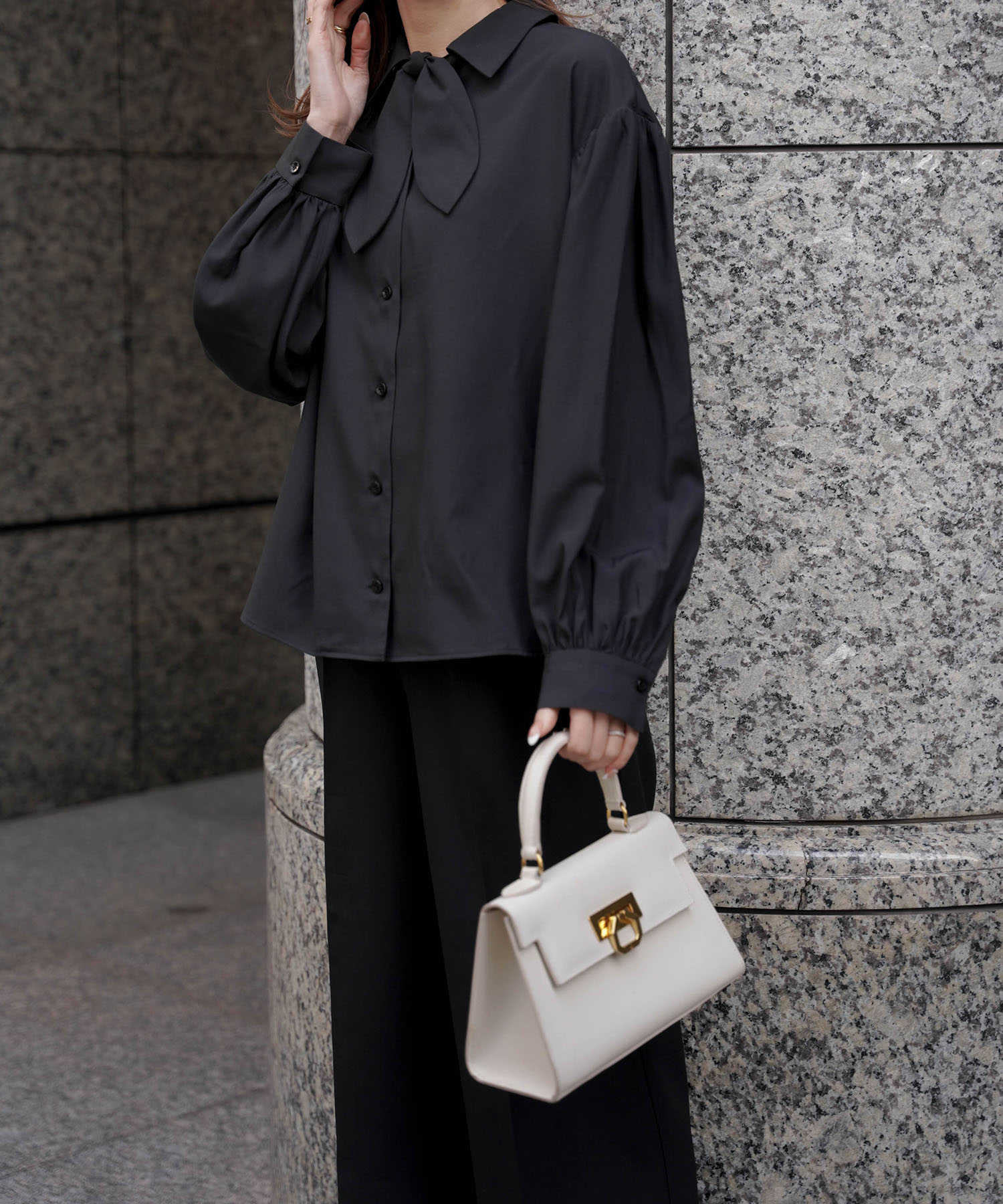 ウール見えで季節感UP。上品仕上げのボウタイトップス