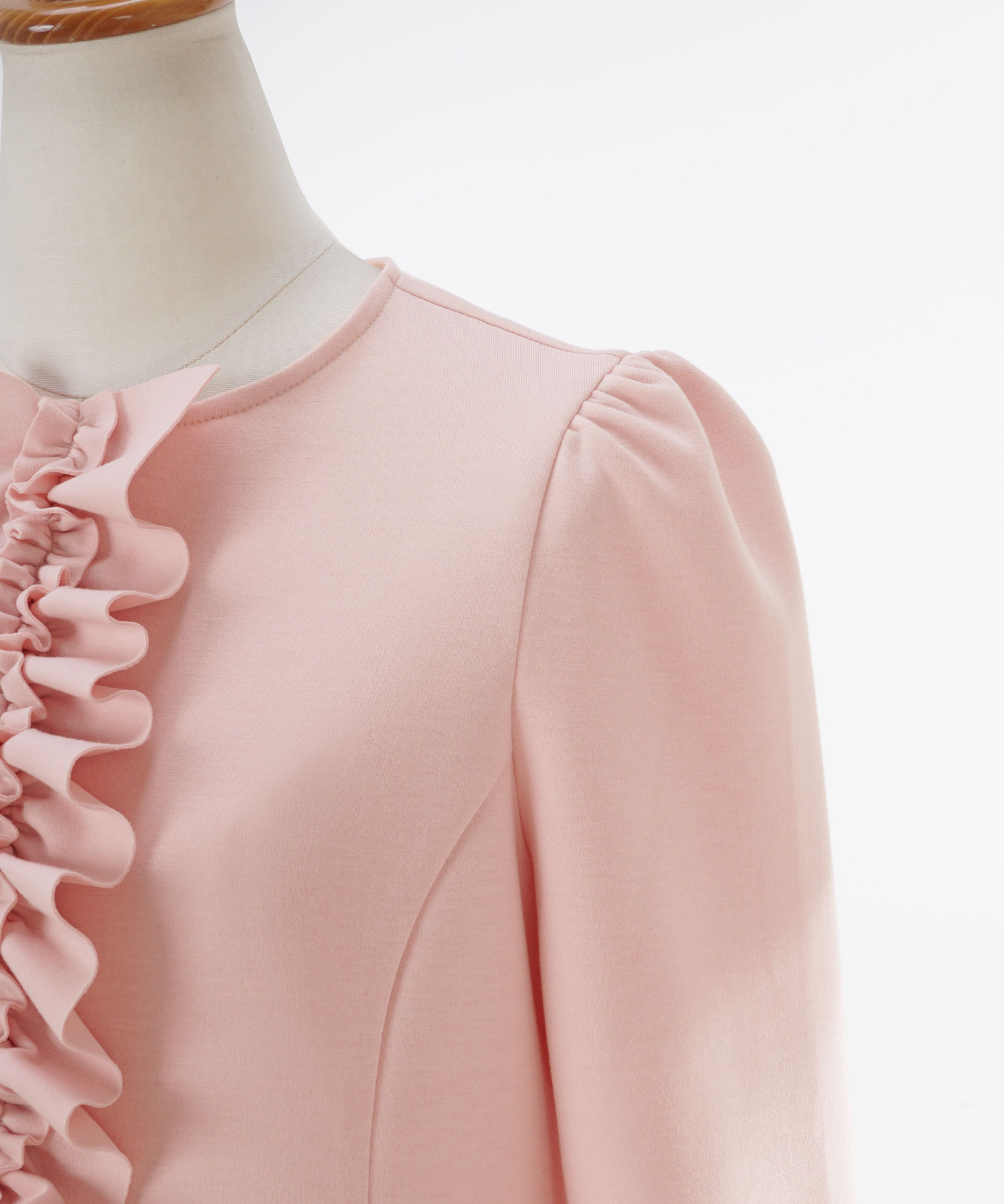 フロントファスナー スカラップ チューリップ袖 ワンピース(le reve vaniller)¥15,290(税込)