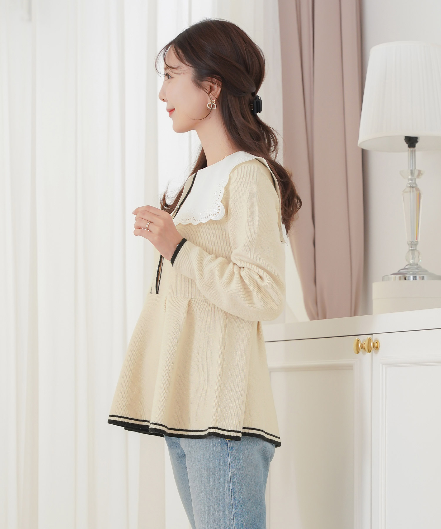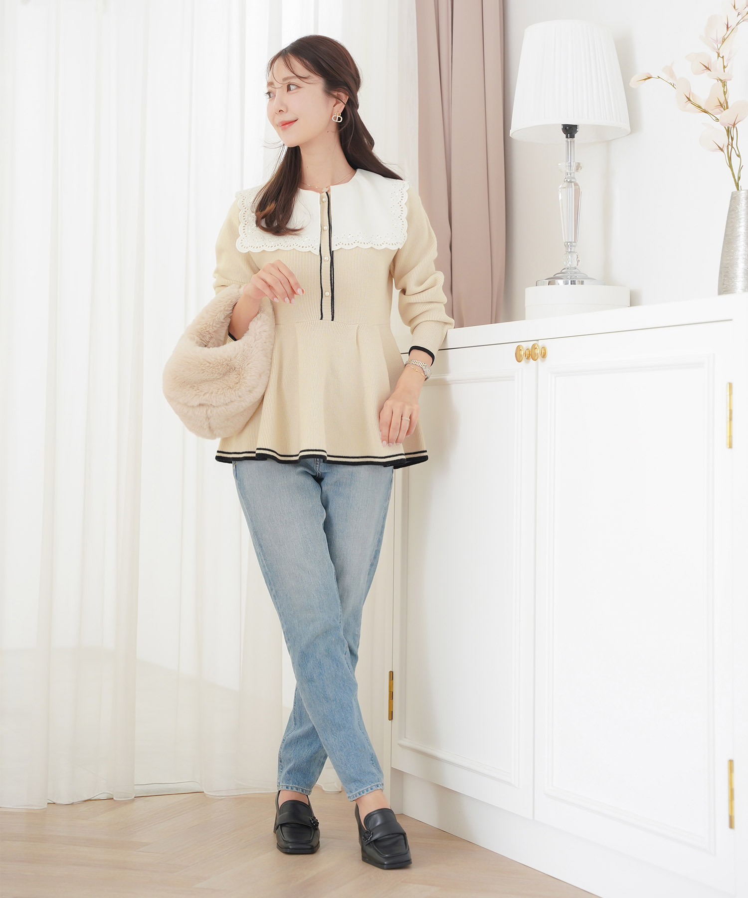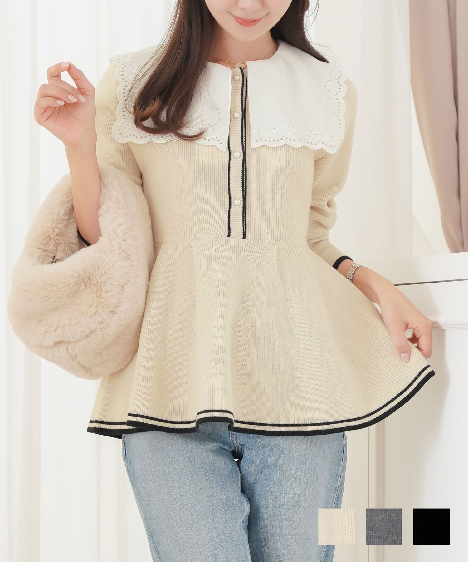 刺繍入り セーラーカラー ペプラム ニット(le reve vaniller)¥11,000(税込)