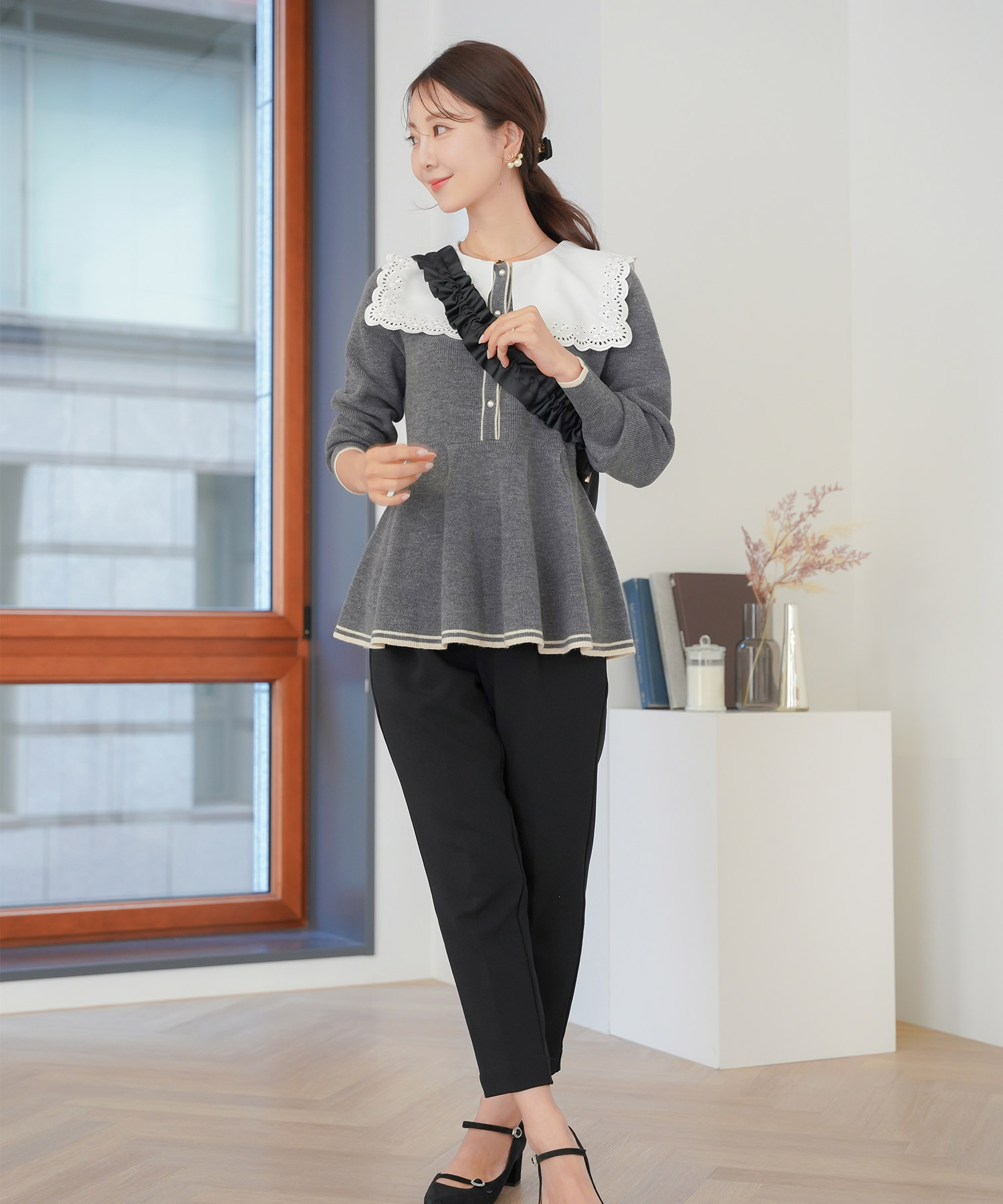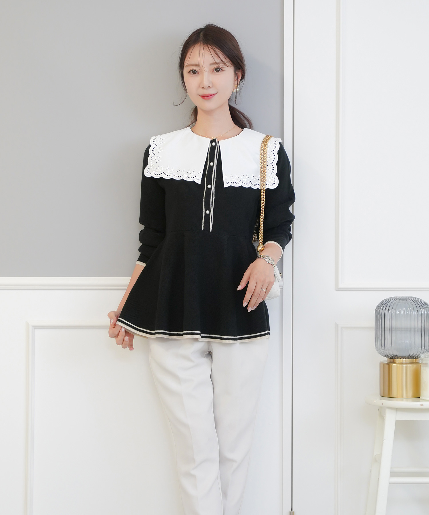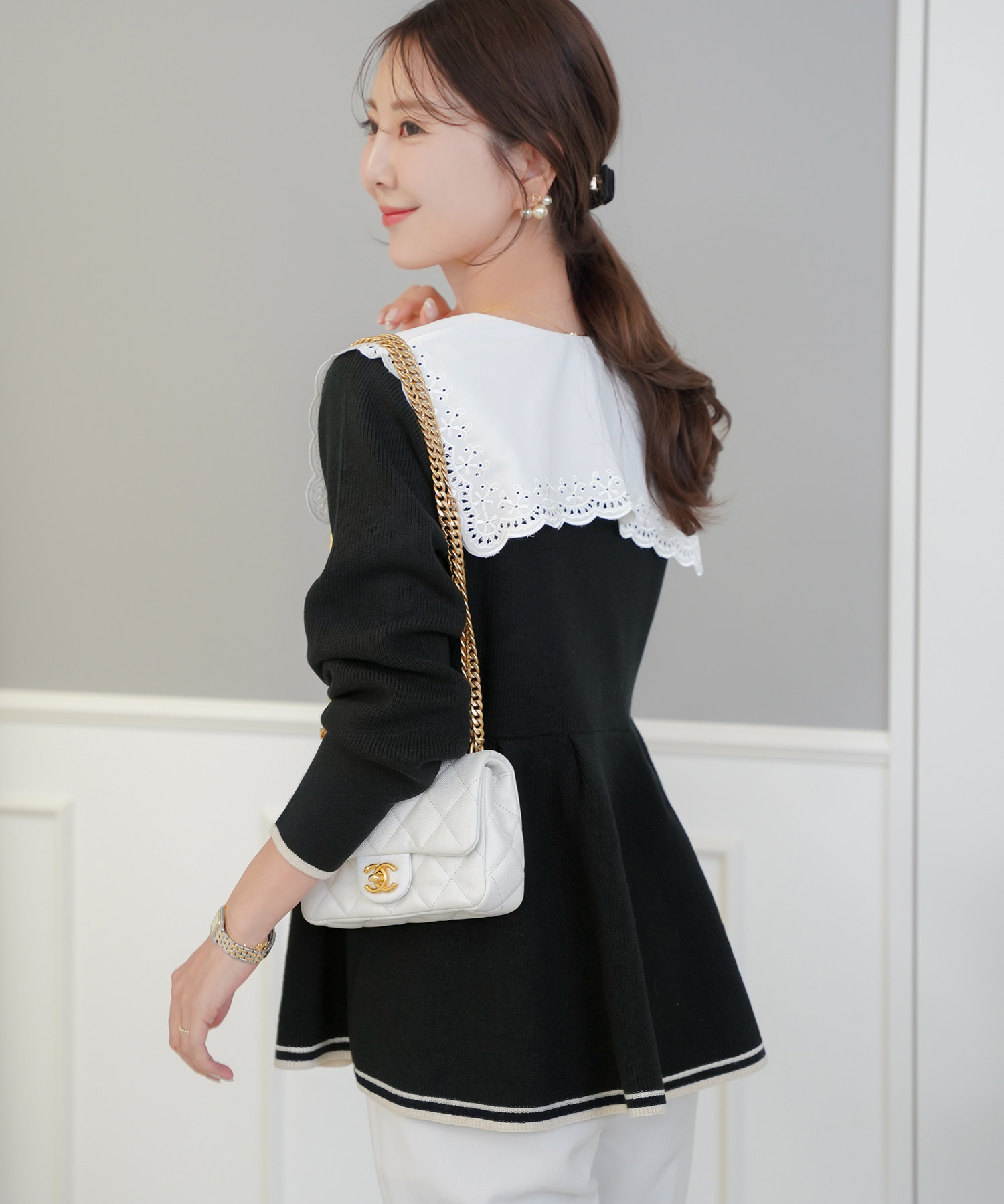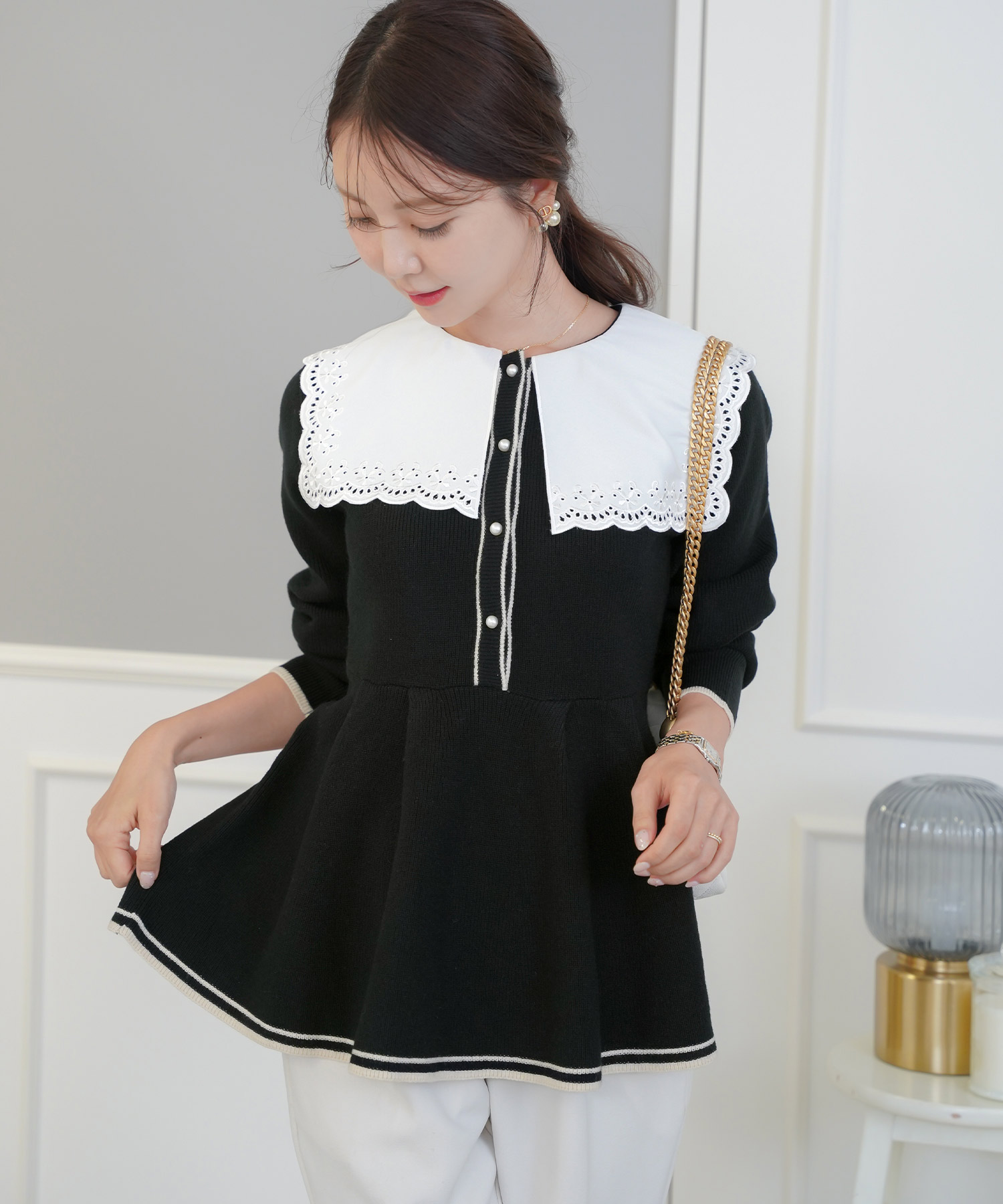 刺繍入り セーラーカラー ペプラム ニット(le reve vaniller)¥11,000(税込)