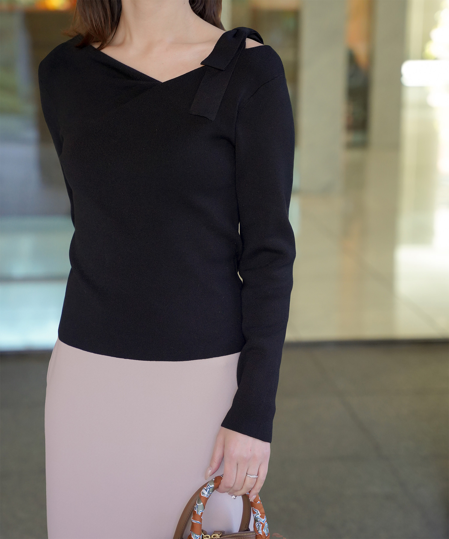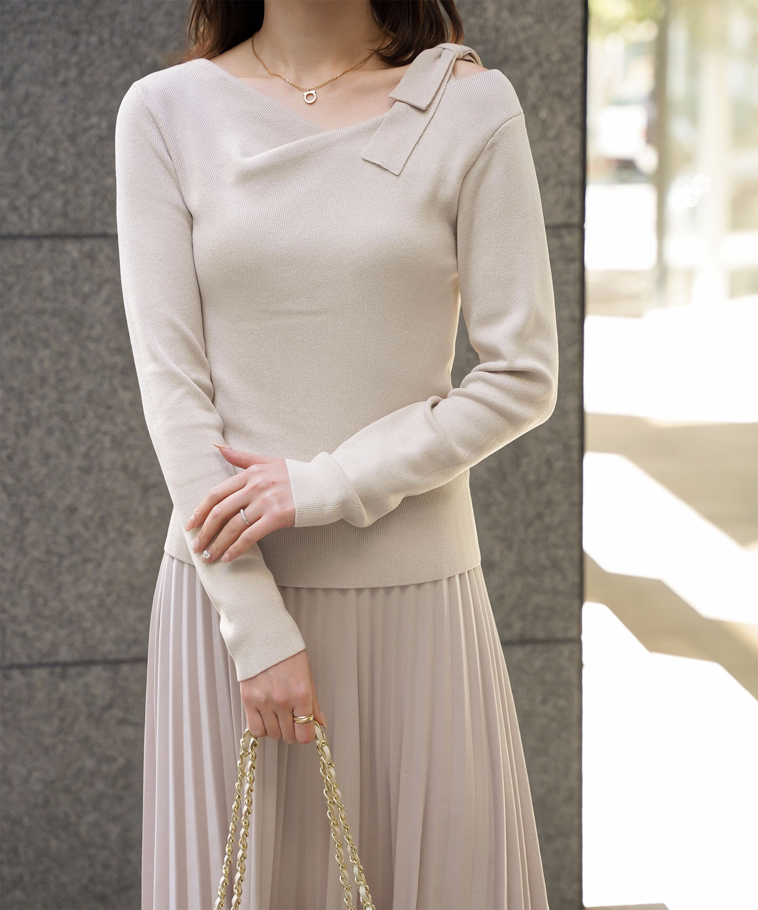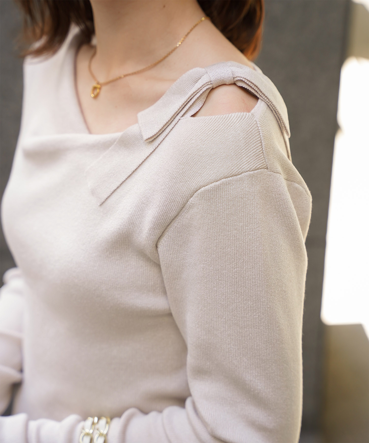 リボン ショルダー ドレープ ニット トップス(HUIT)¥9,790(税込)
